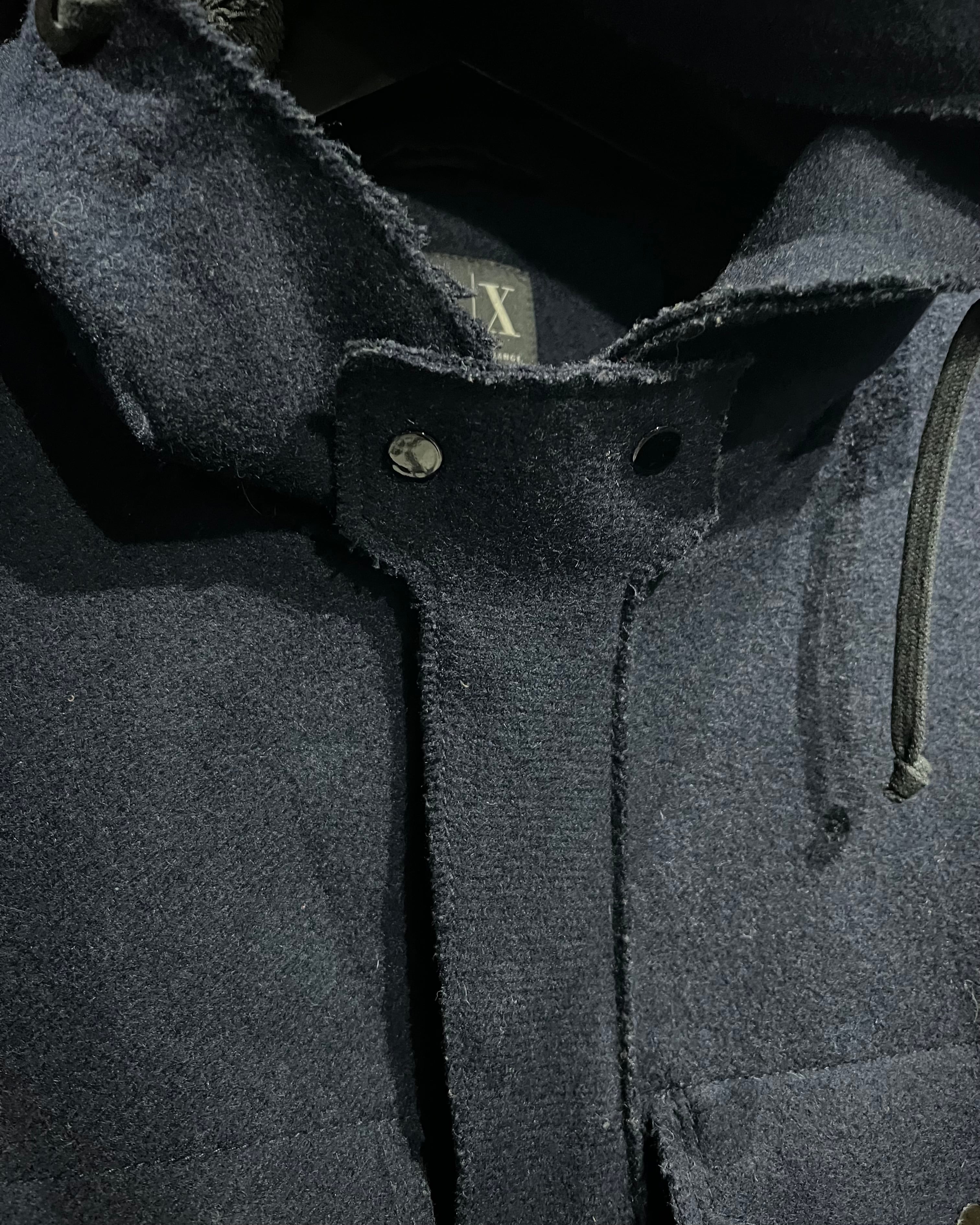 アーバンな洗練さと機能性を両立する“ARMANI EXCHANGE”より、ウール×ナイロン混のフーデッドジャケット。