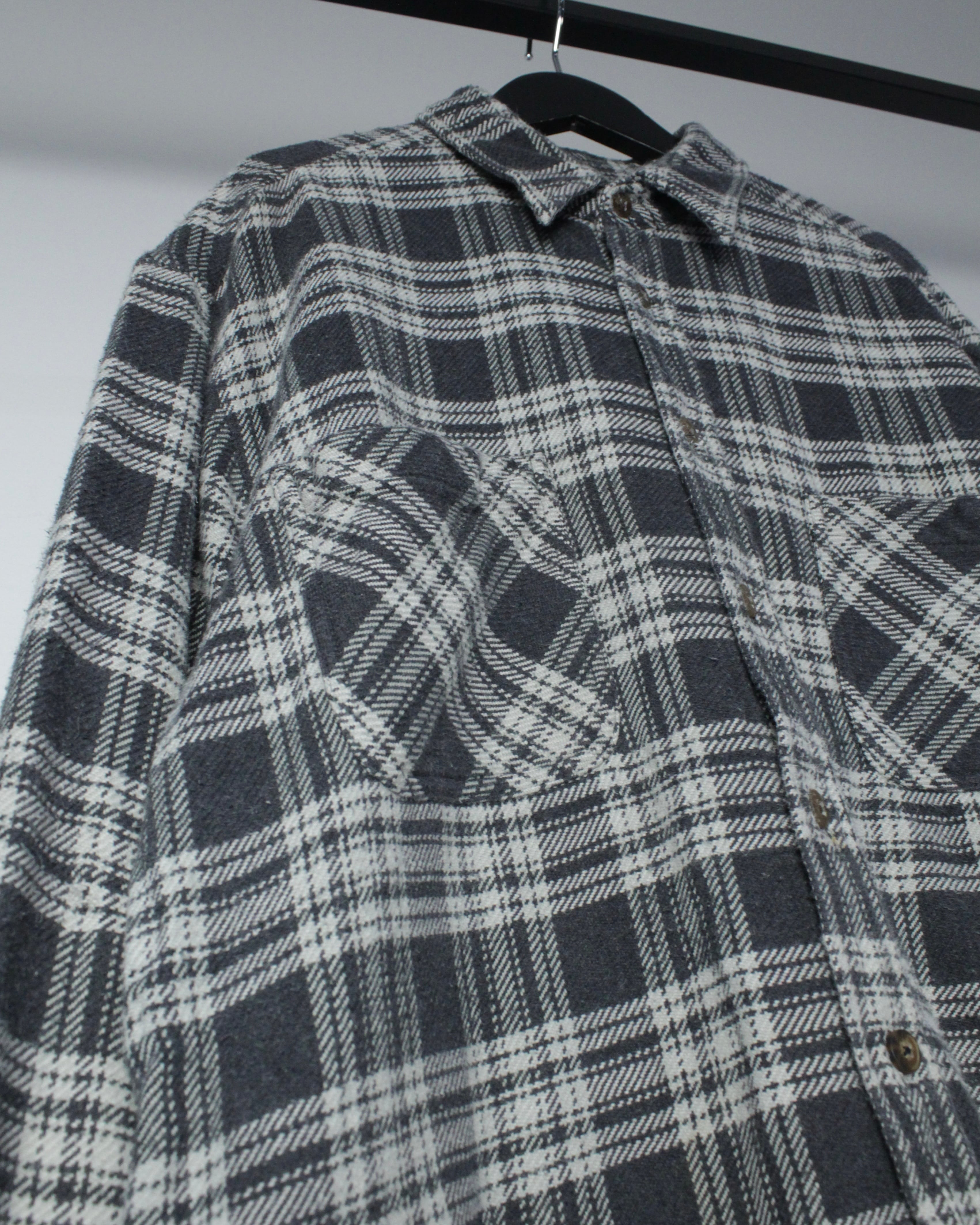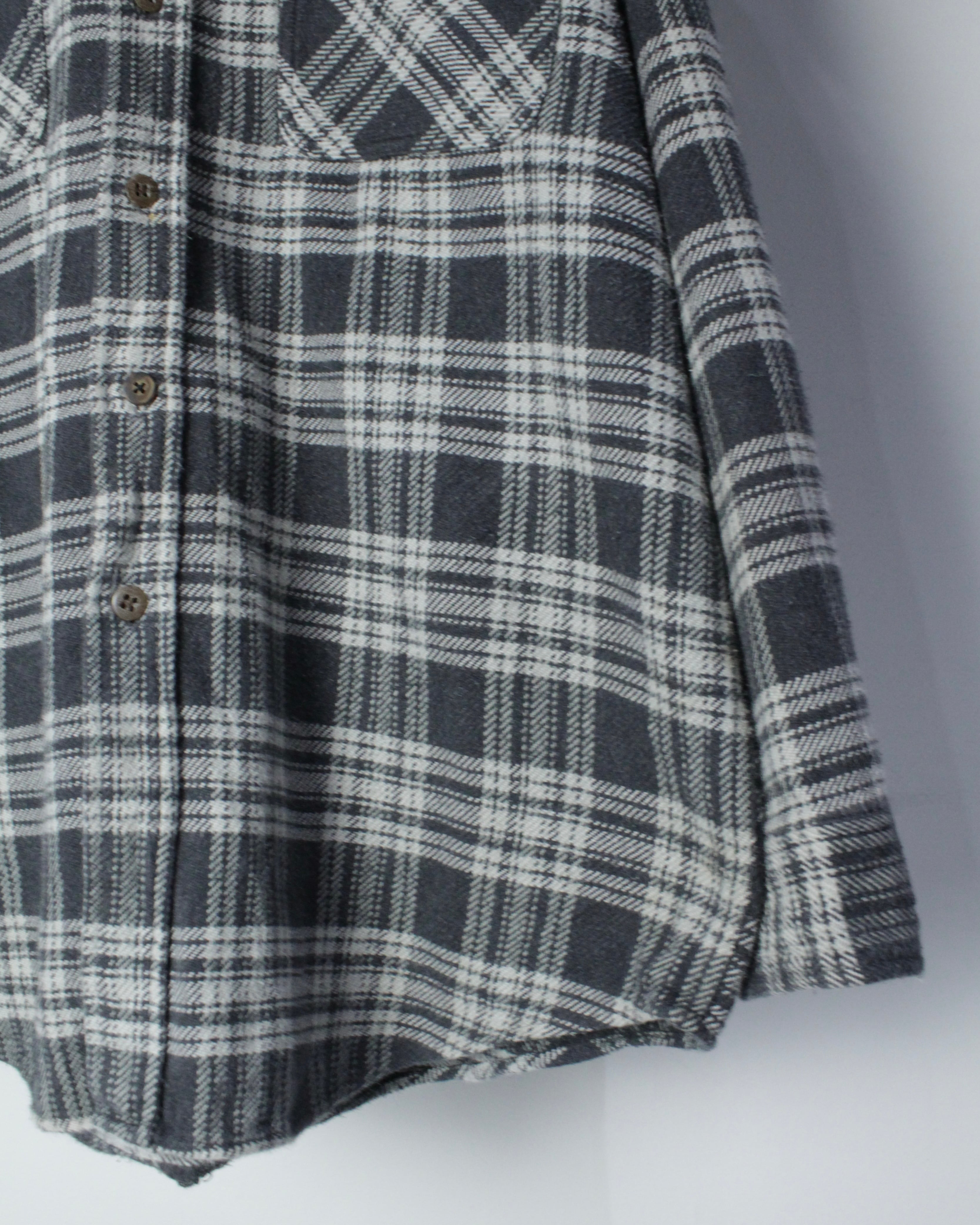 アメリカンワークやアウトドアをルーツに持ちながらも、モノトーン配色が醸す都会的なムードが特徴。ヴィンテージの風合いを纏いつつ、現代的なスタイリングにもすんなり溶け込むネルシャツの逸品です。