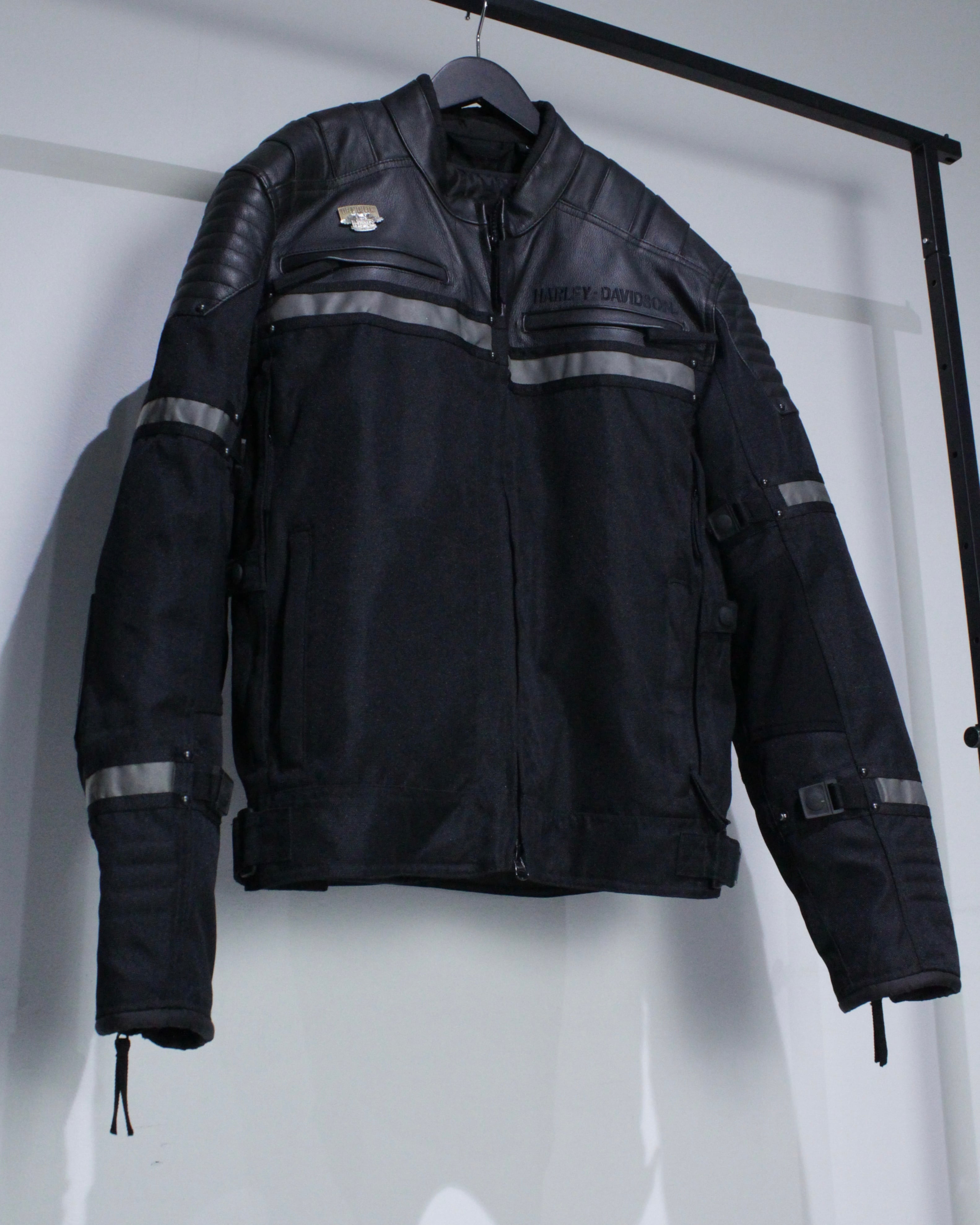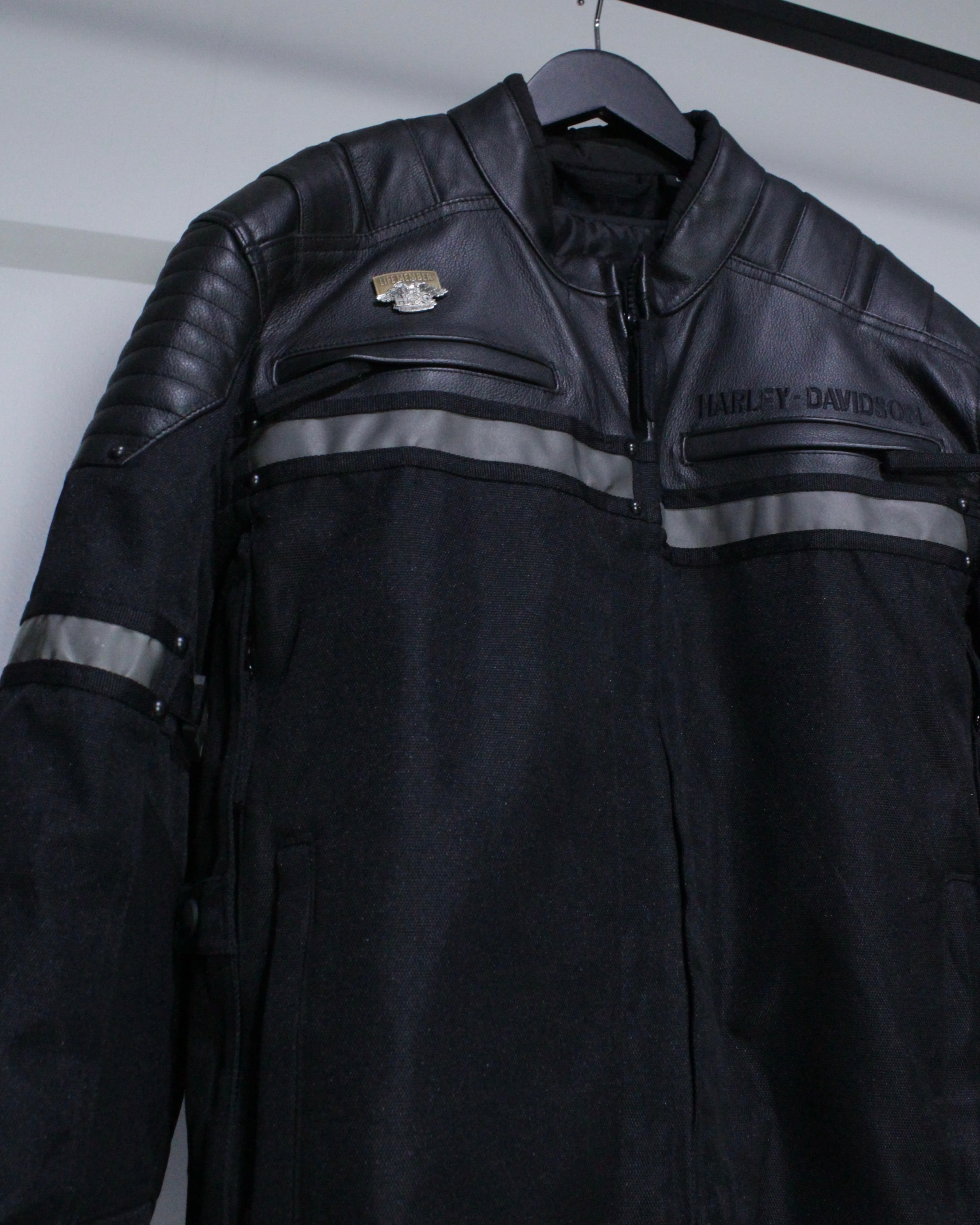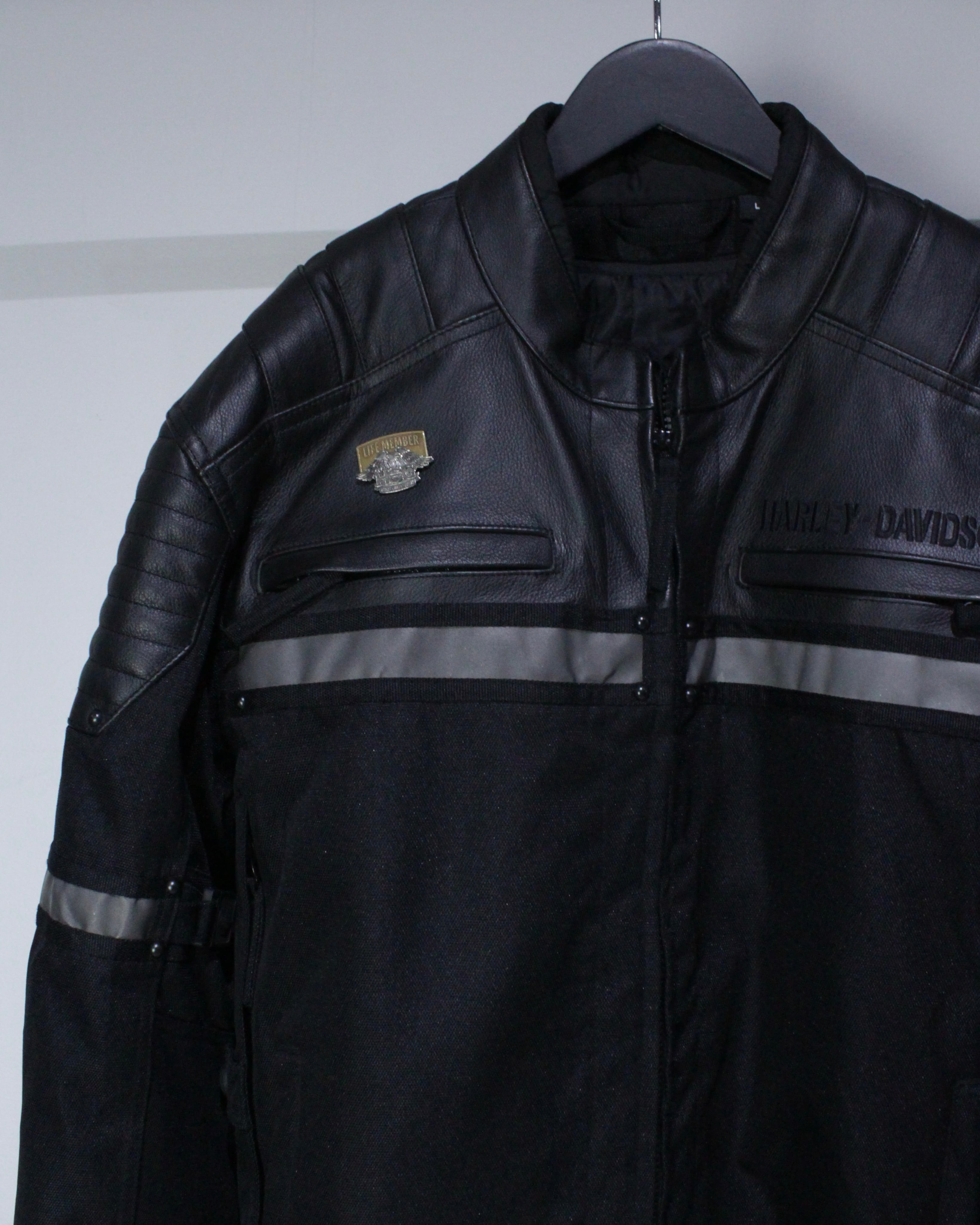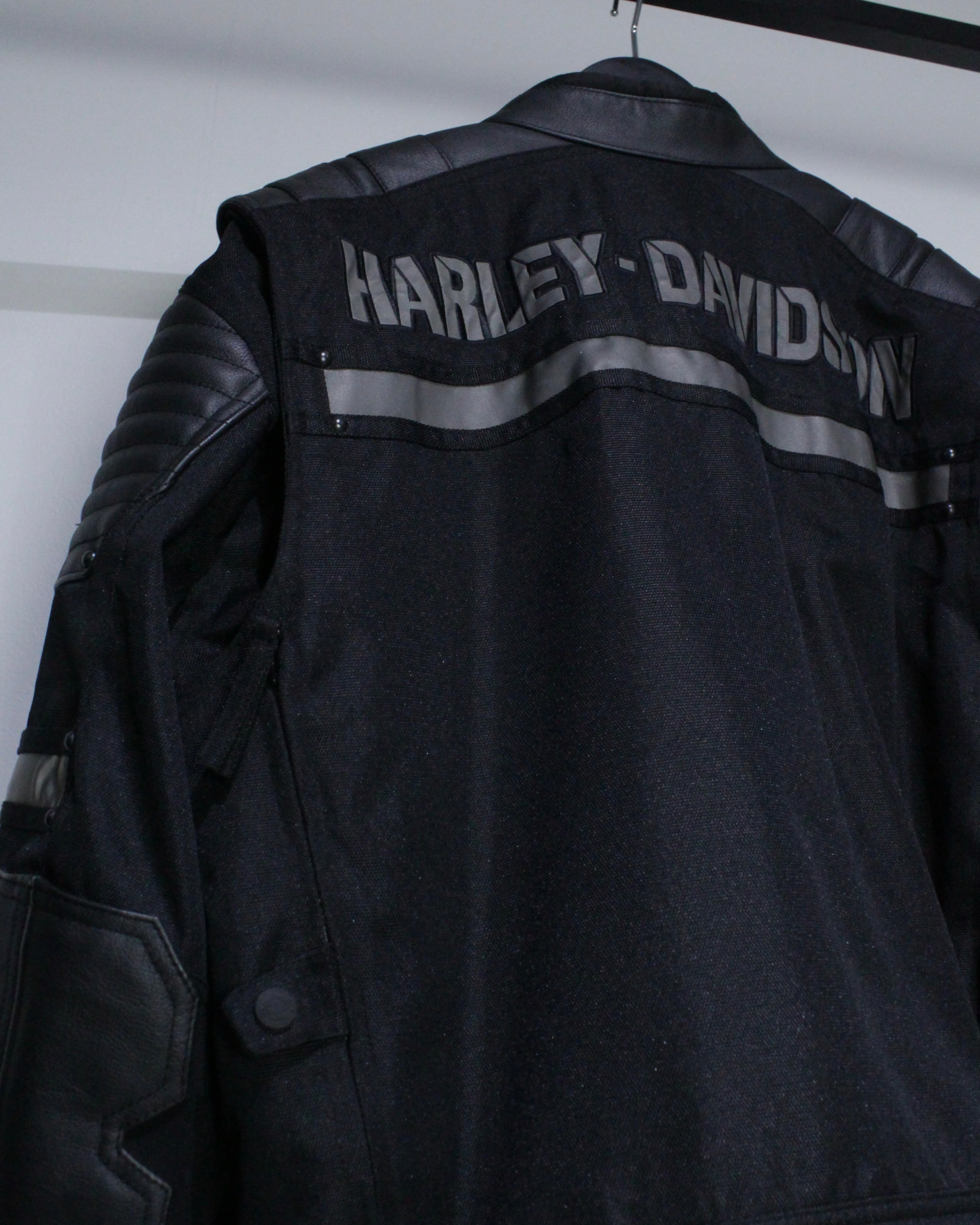 アメリカンモーターカルチャーを象徴するブランド、“HARLEY-DAVIDSON”より、レザーとナイロンを切り替えた、圧倒的な存在感を放つ重厚かつ機能的なバイカージャケット。
