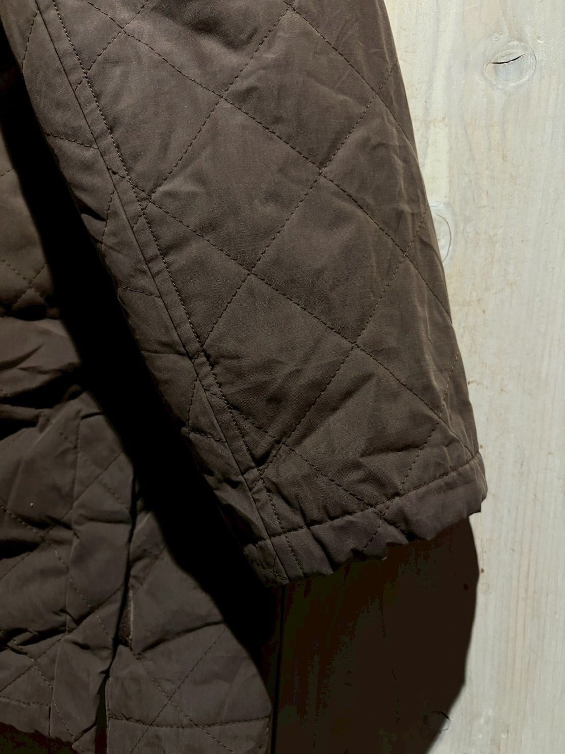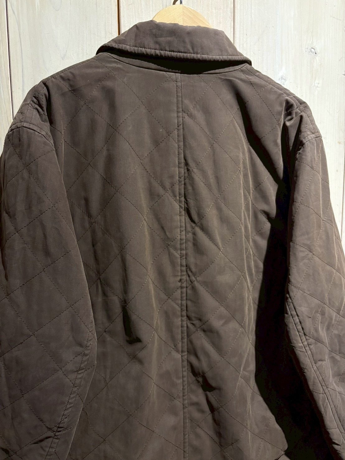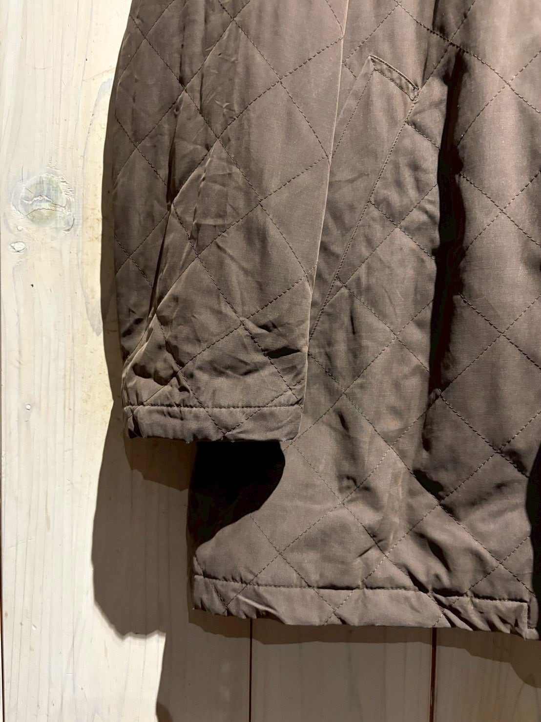 マットなブラウンのボディに、均一なダイヤ状のキルティングステッチを走らせることで、軽量ながらも保温性に優れ、秋冬のアウターとして非常に扱いやすい仕様に。
