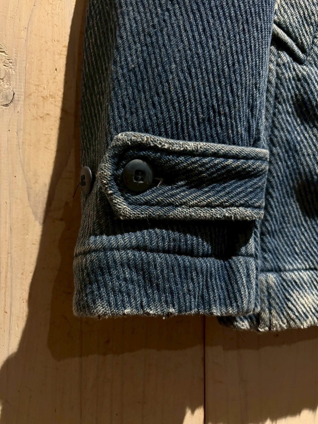 全体に現れたナチュラルなフェードが見事で、肩や袖、ラペルにかけて浮かび上がるアタリがリアルな経年の奥行きを演出。濃淡のグラデーションがインディゴの深みを際立たせ、着るほどに味わいを増していきます。
