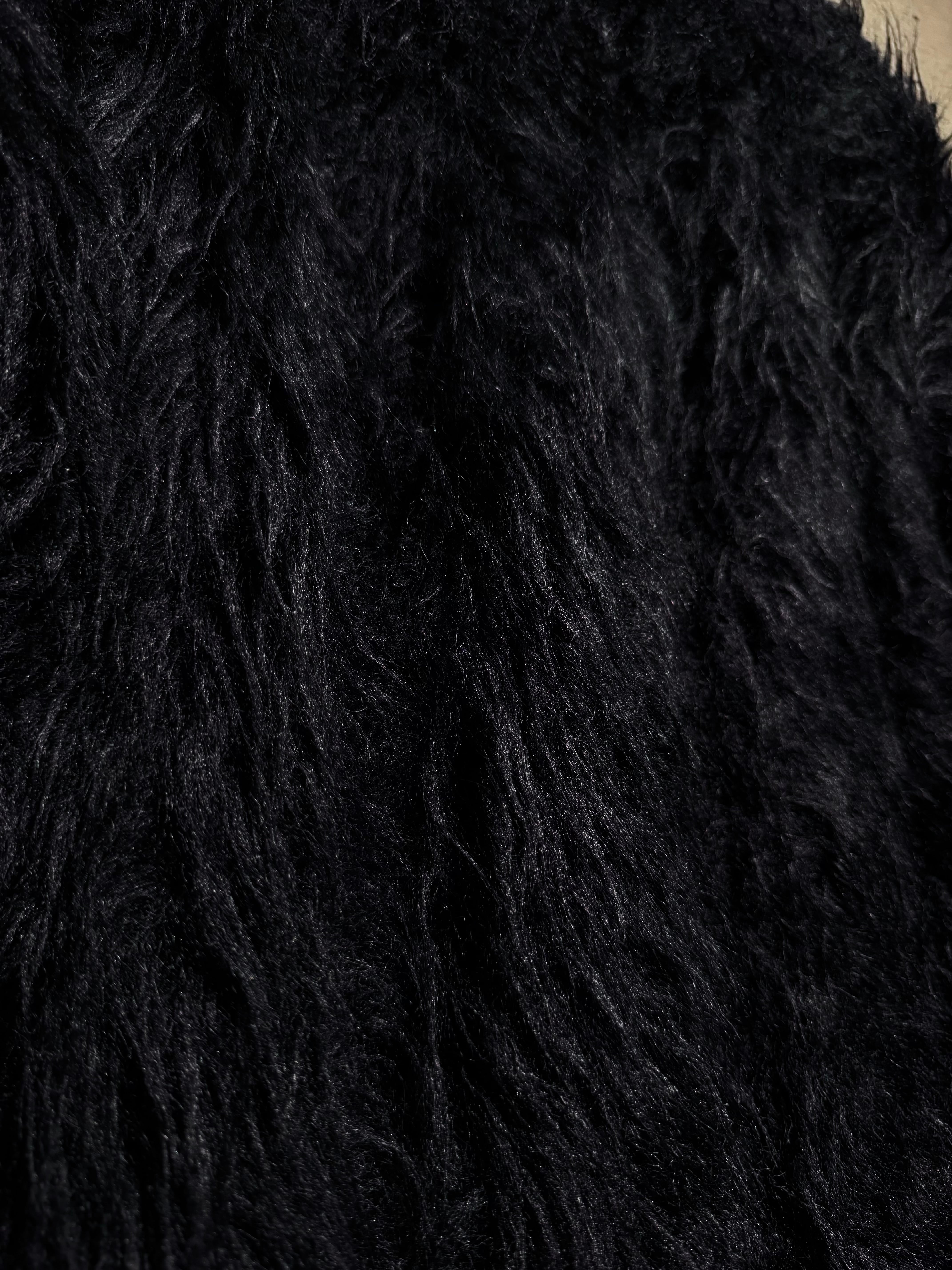 毛足は驚くほど長く、指先で撫でるとしっとりと沈み込むような柔らかさ。軽量でありながら保温性に優れ、着心地は想像以上に軽やか。縫製の精度も高く、袖から裾にかけての落ち感やシルエットのバランスが絶妙です。動きの中で光を受けるたび、艶が浮かび上がるような表情も魅力。