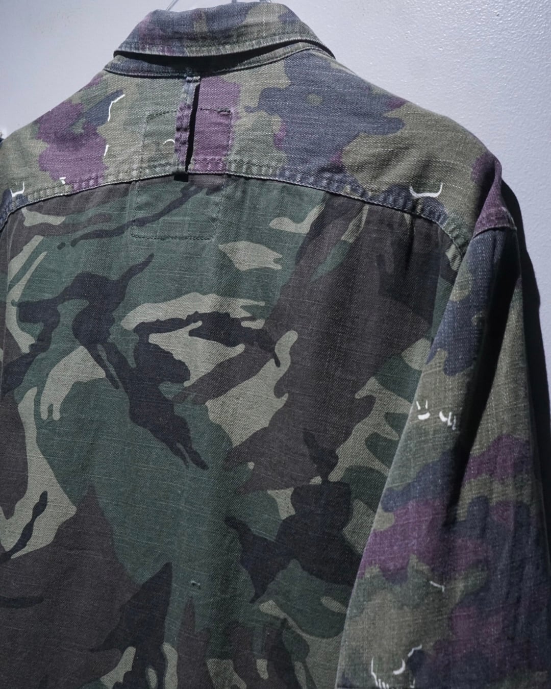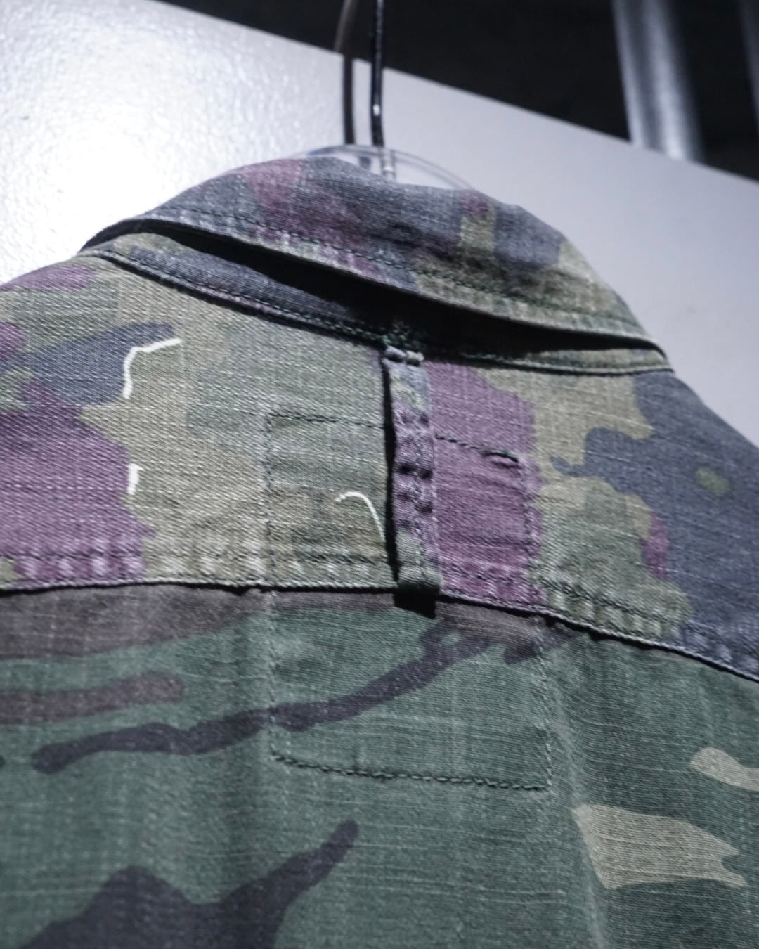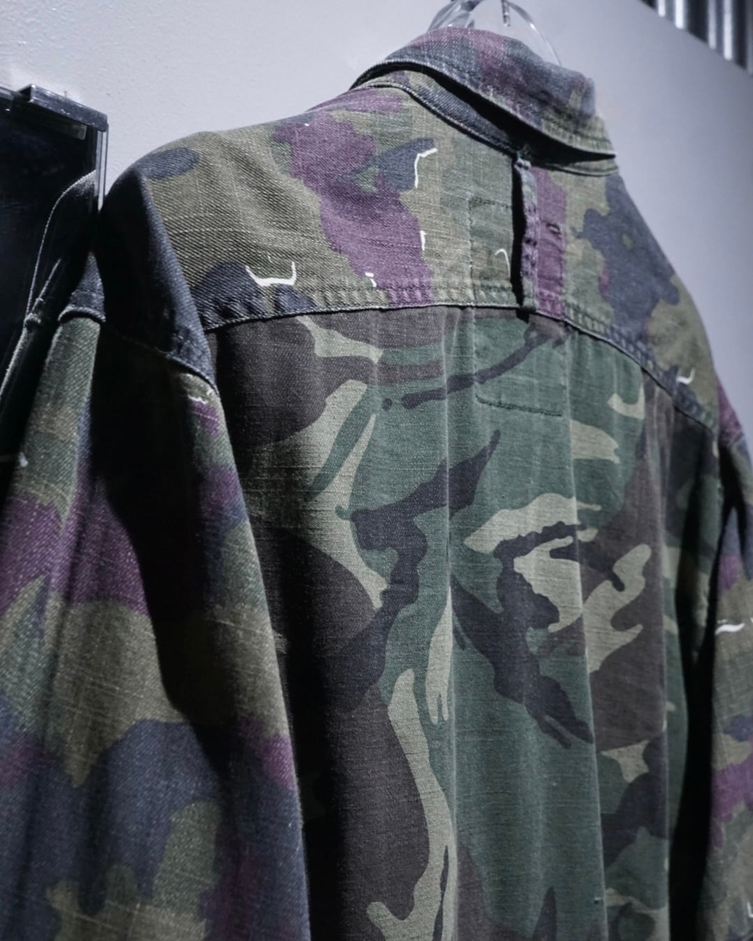 カモフラージュパターンを巧みに切り替えたスペシャルな長袖シャツ。