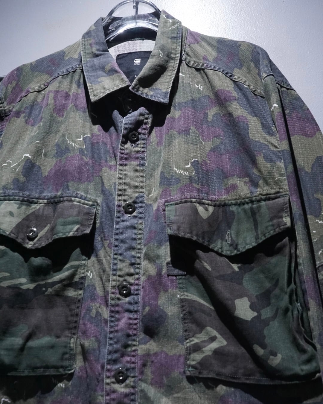 G-STARらしいタフなコットンをベースに、フラップポケットや補強のエルボーパッチなどミリタリーシャツのディテールを踏襲しつつ、モードな表情に仕上げられています。