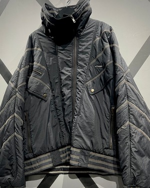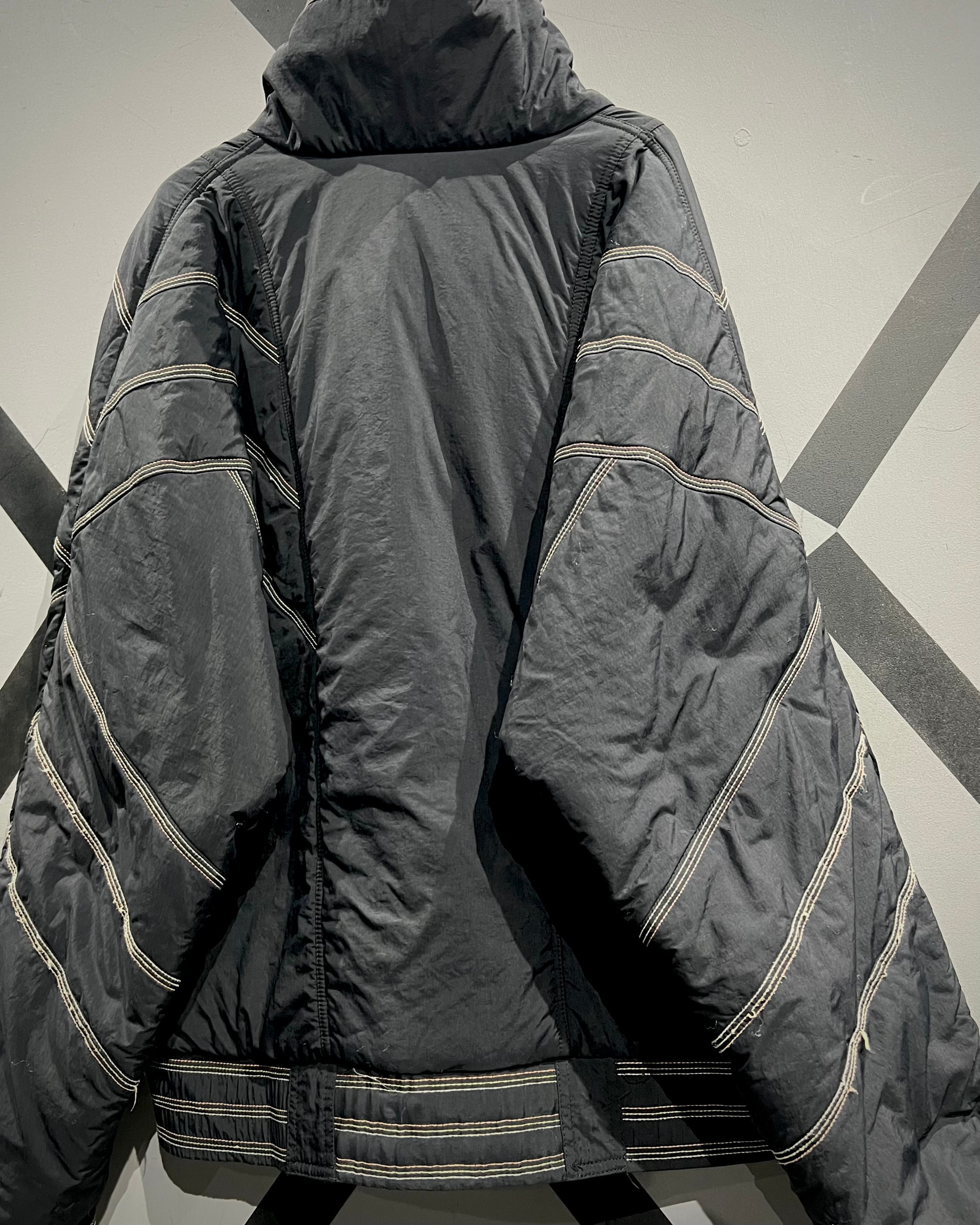 アシンメトリーに施されたジップ、高めに設定されたネックラインと立体的なスタンドカラーは、スキージャケット本来の防風性を活かしつつも、現代のストリートシーンにも通ずる仕上がり。