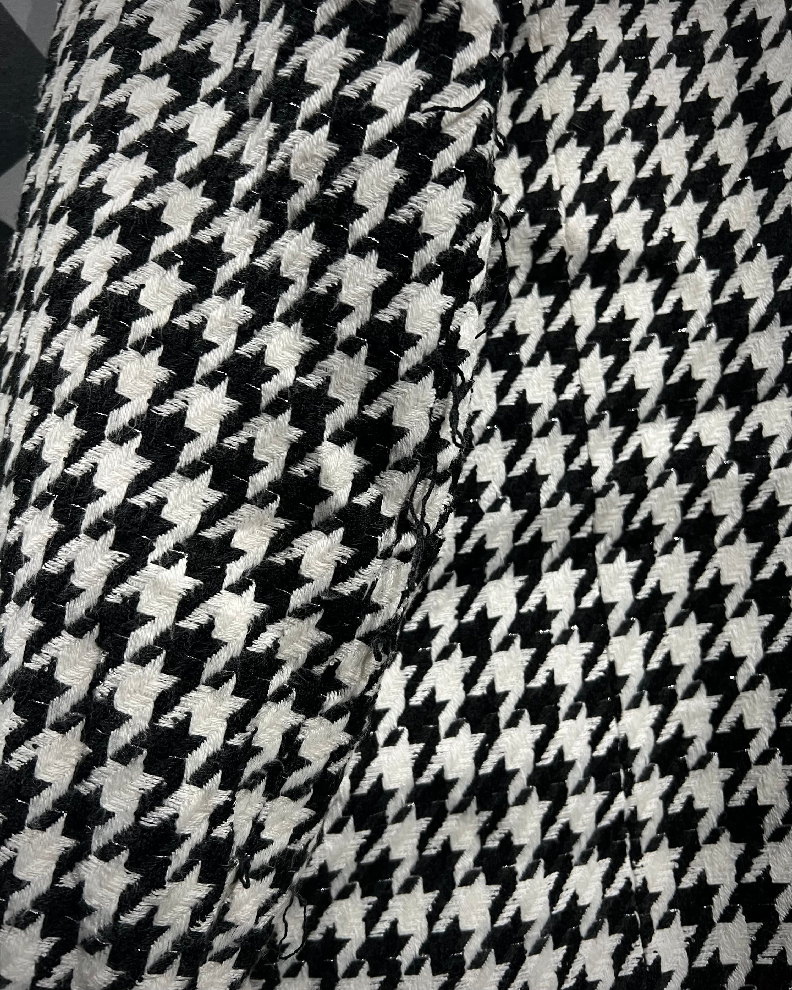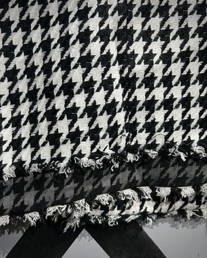 しっかりとした厚みを持ちつつ柔らかなツイード生地は、モノトーンで構成された大柄の千鳥格子が印象的。
