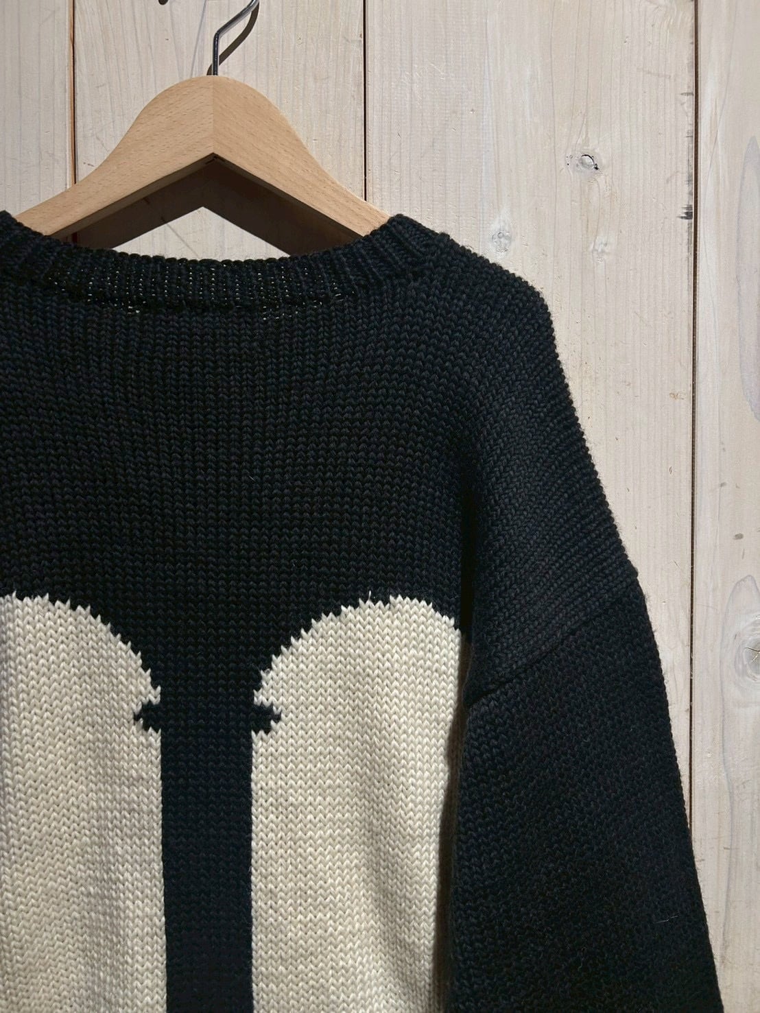 ハンドメイドらしい温かみと視覚的なインパクトが共存した、スペシャルなニットです。