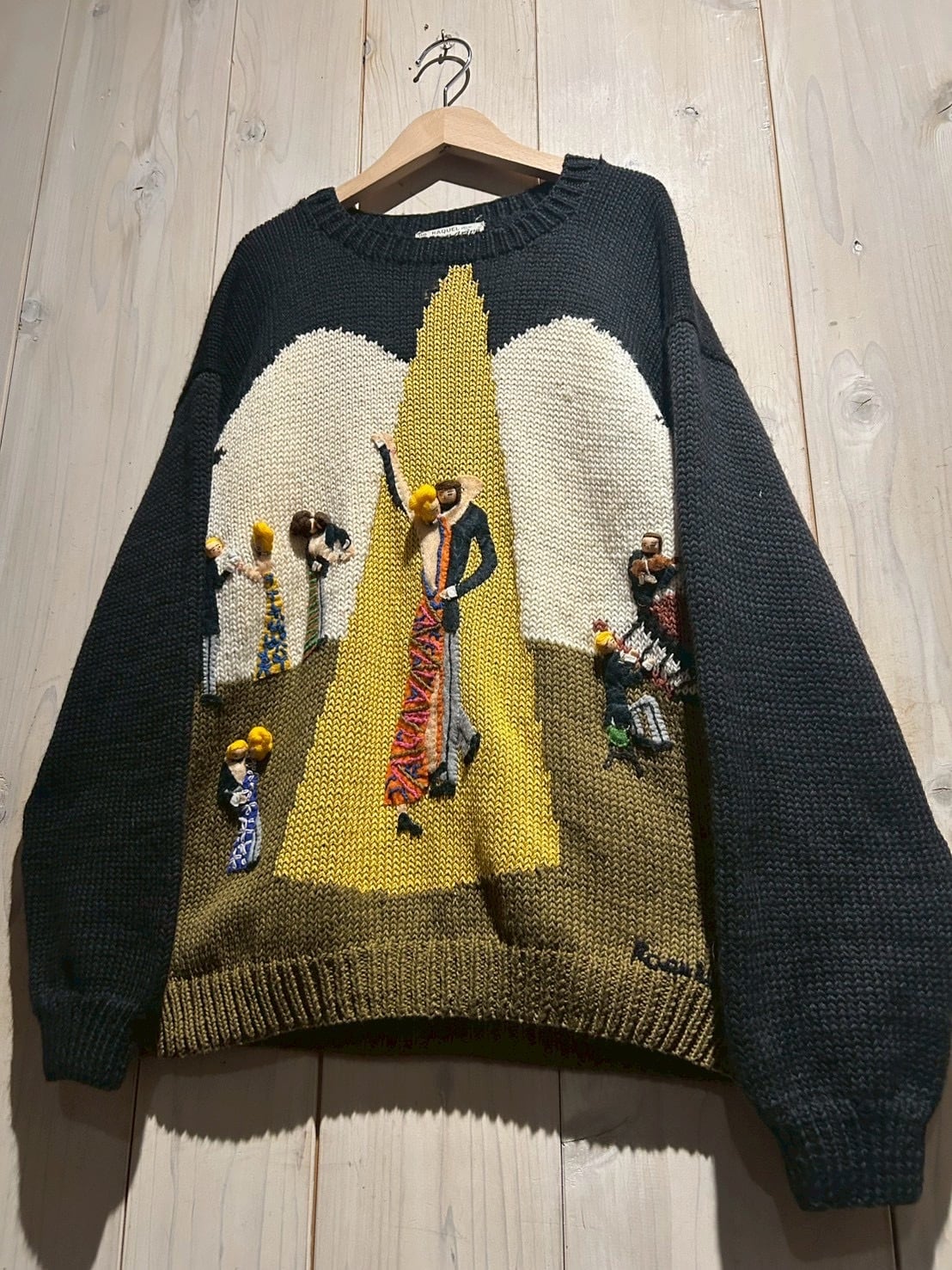 立体的な刺繍で描かれたダンサーたちが印象的なハンドニットセーター。