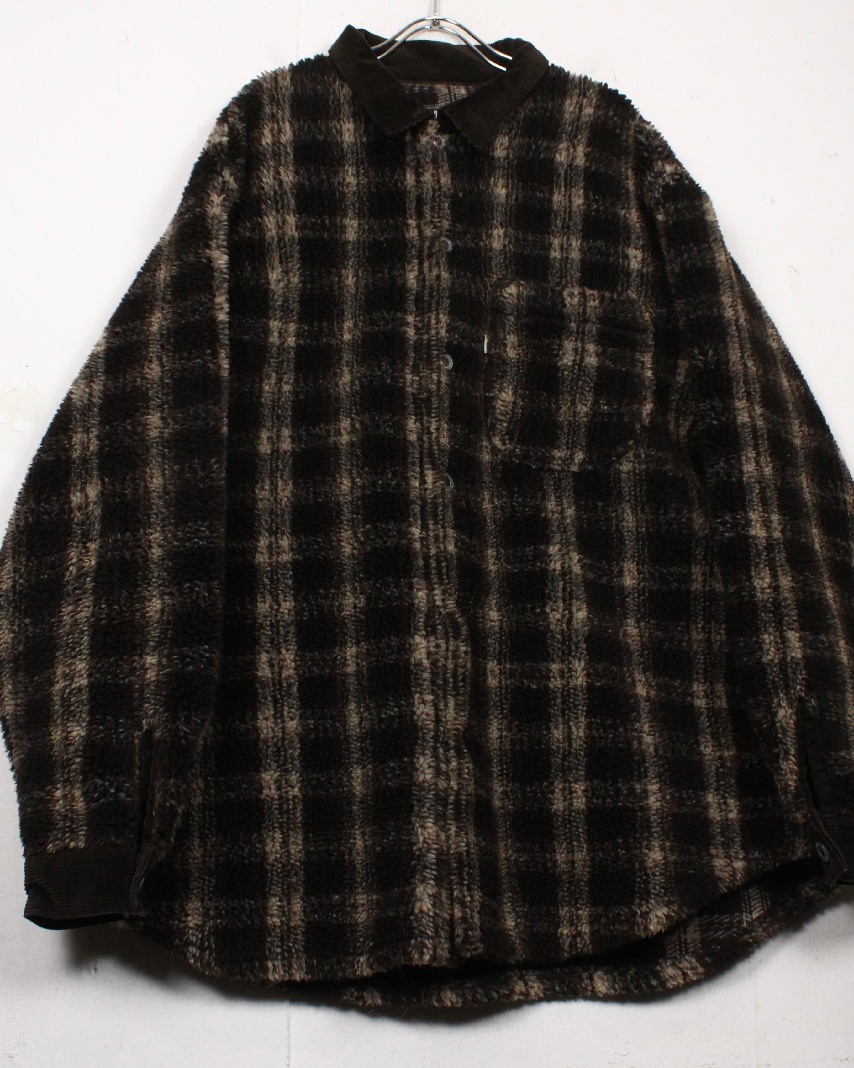 起毛感の強いシェルルパフリースを使用し、深みのあるチェックパターンを落とし込んだ逸品。