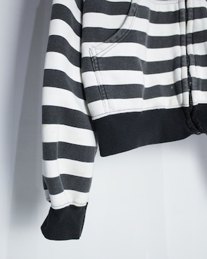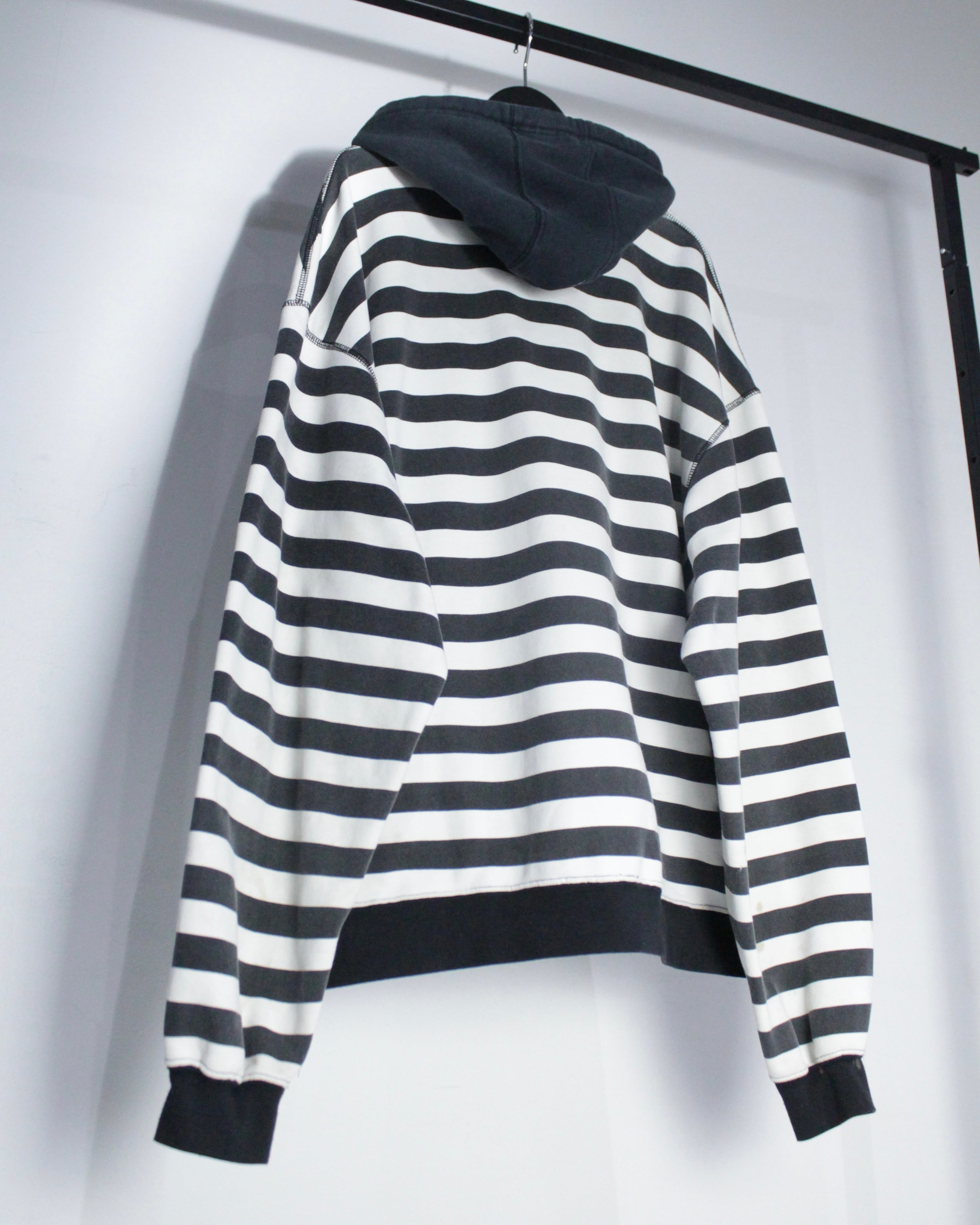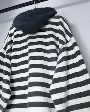 一見ベーシックなボーダージップアップフーディに見えながら、エッジィなデザインに仕上げられた逸品をご紹介いたします。