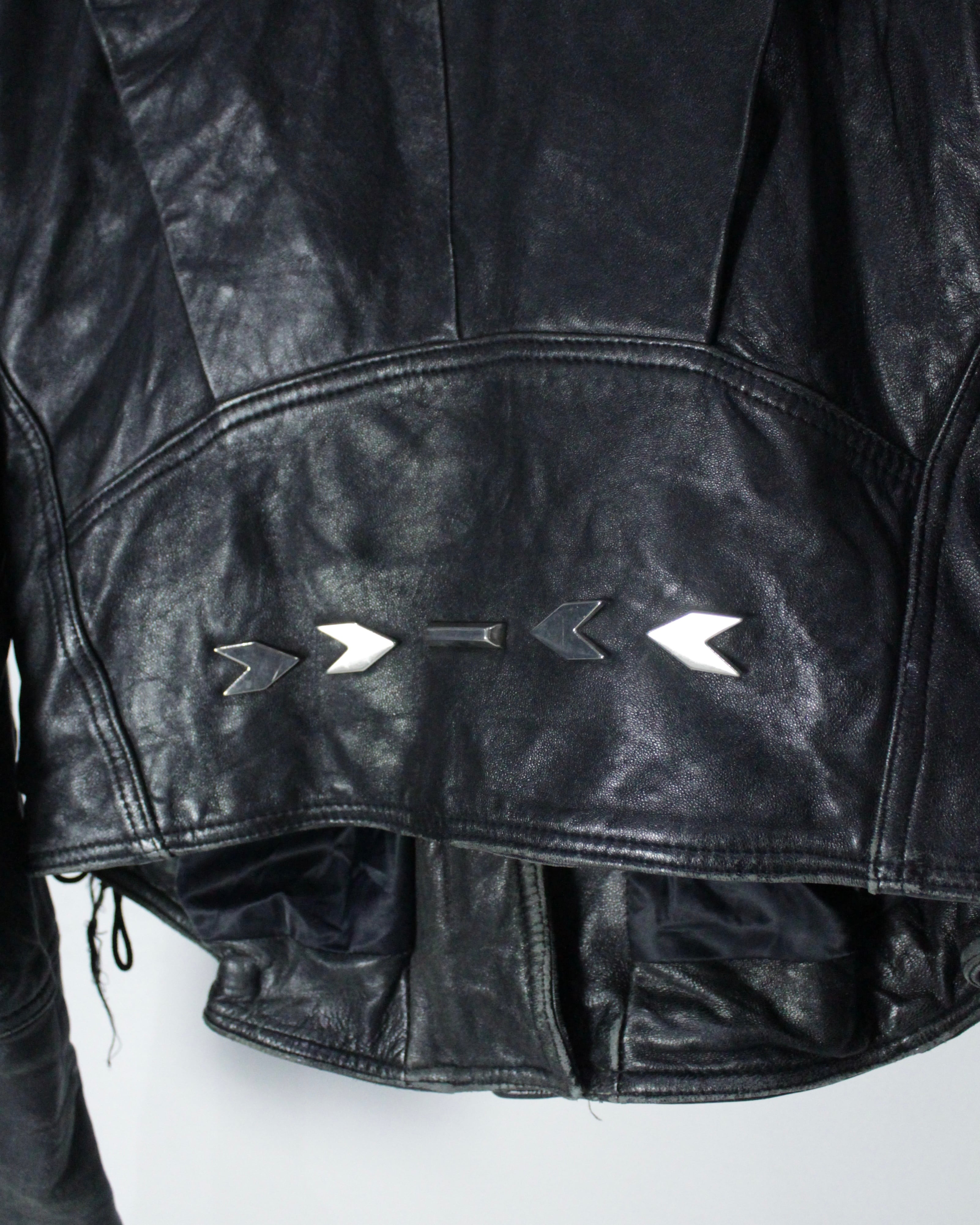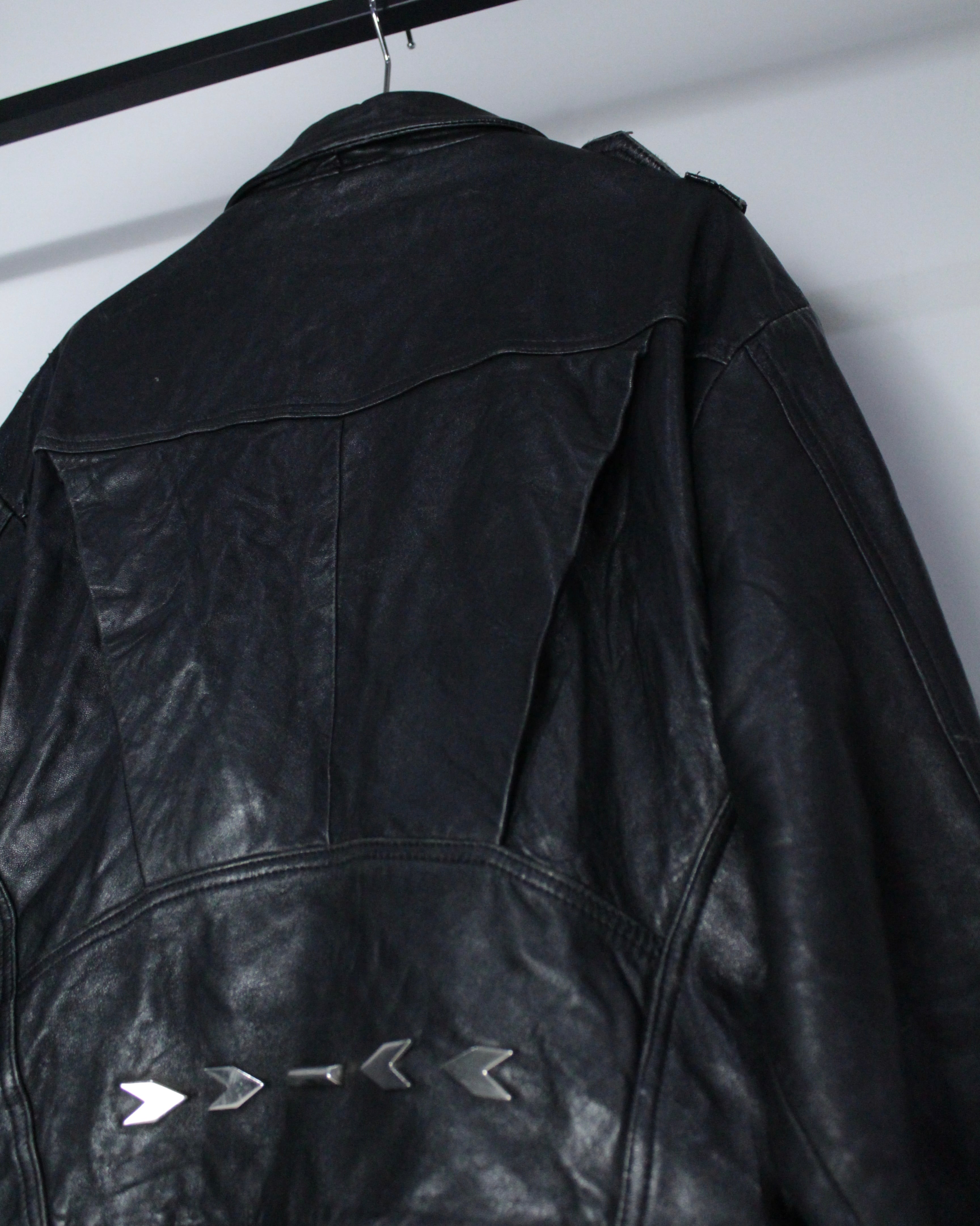 ショルダーやベルト、背面に配されたアロー型のメタルスタッズが唯一無二のアクセントとなり、前所有者のカスタムセンスをヒシヒシと感じられます。