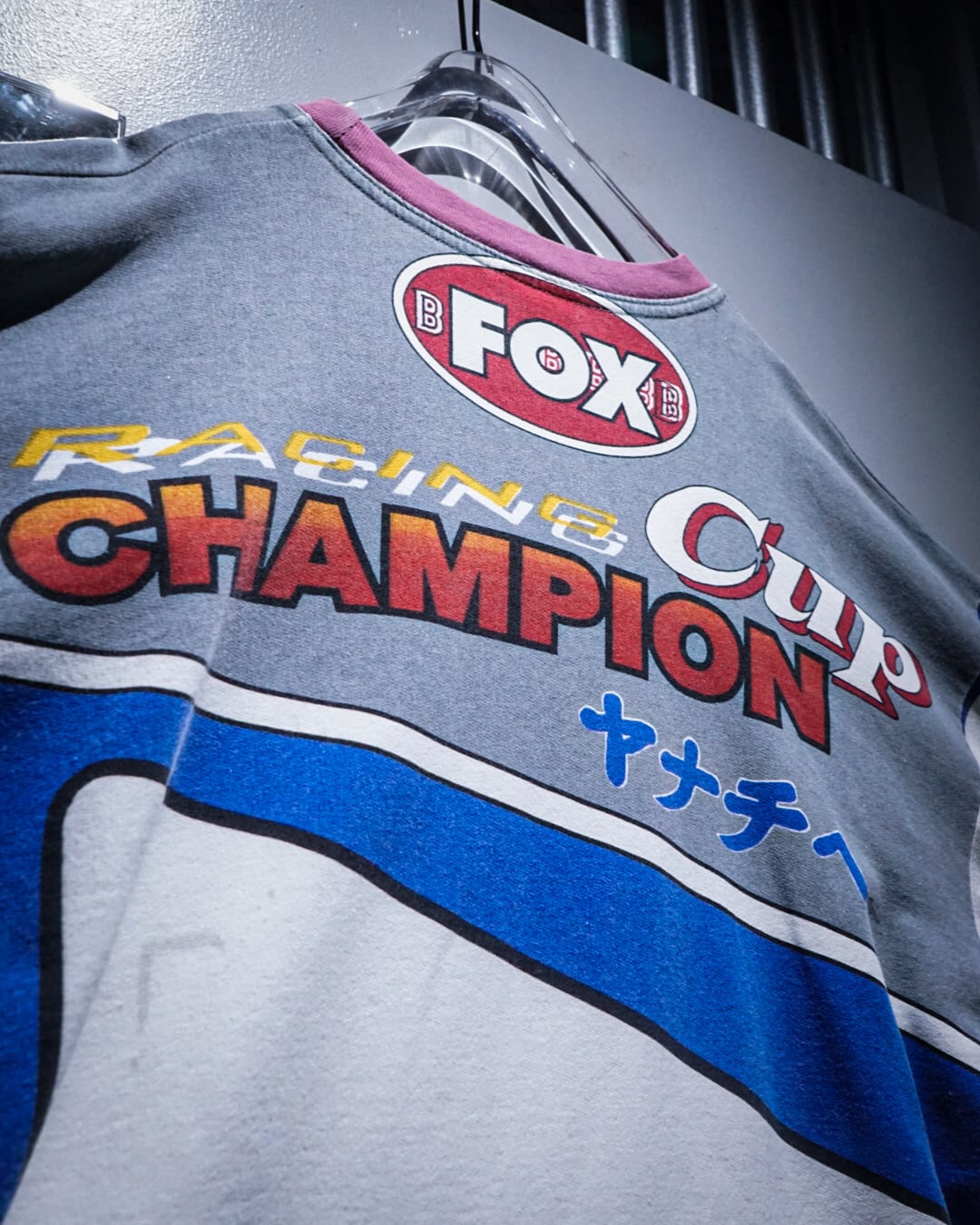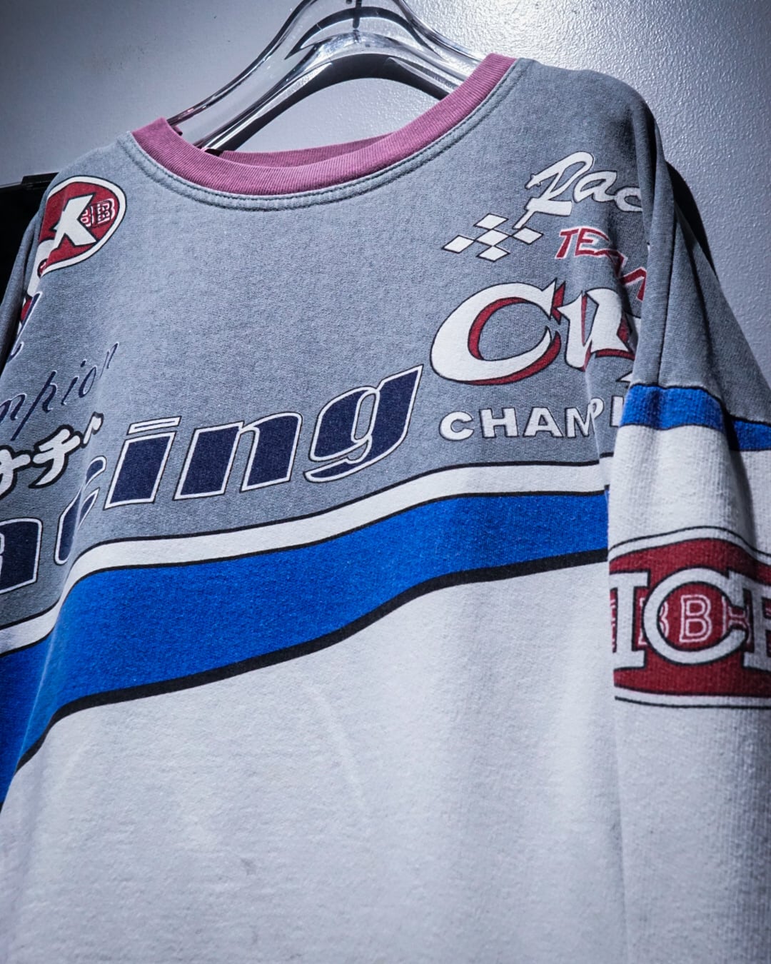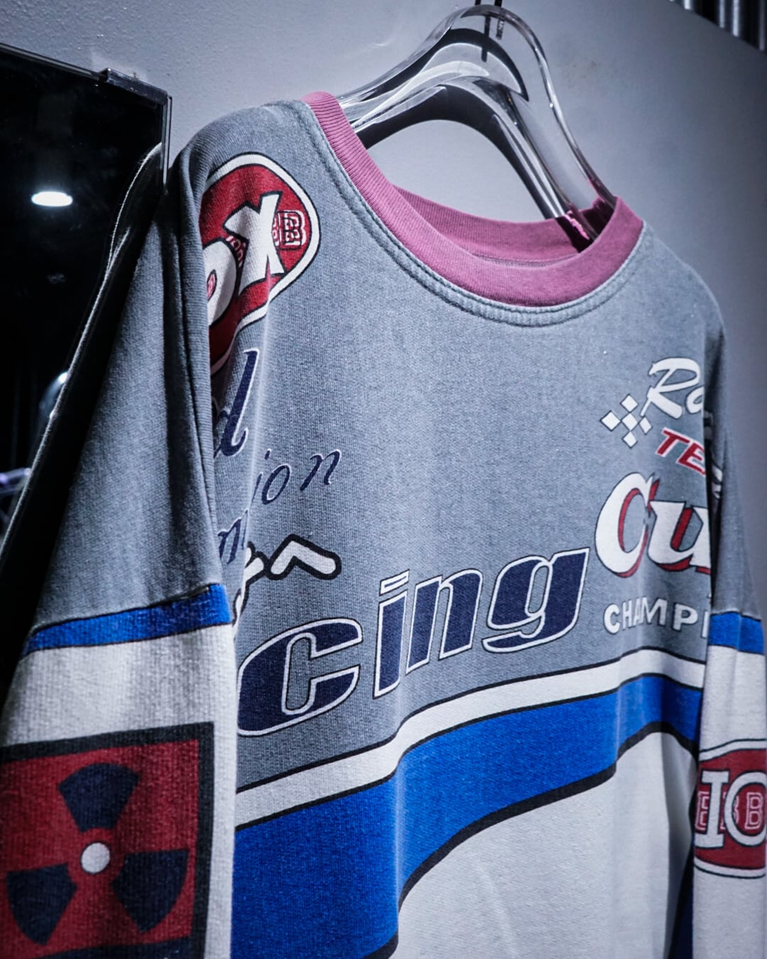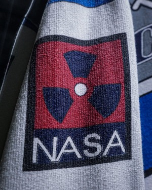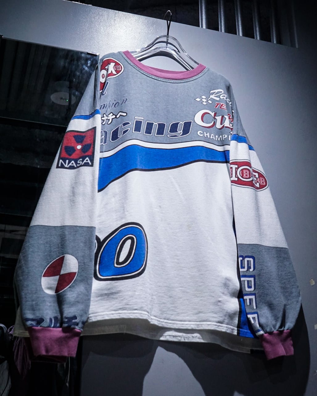 フロントからバックにかけて、チームウェアを思わせる大胆なプリントを全面に配置。スリーブには“NASA”をはじめとした架空のスポンサー風ロゴが並び、ストリートとレースカルチャーが交錯するような世界観を表現しています。
