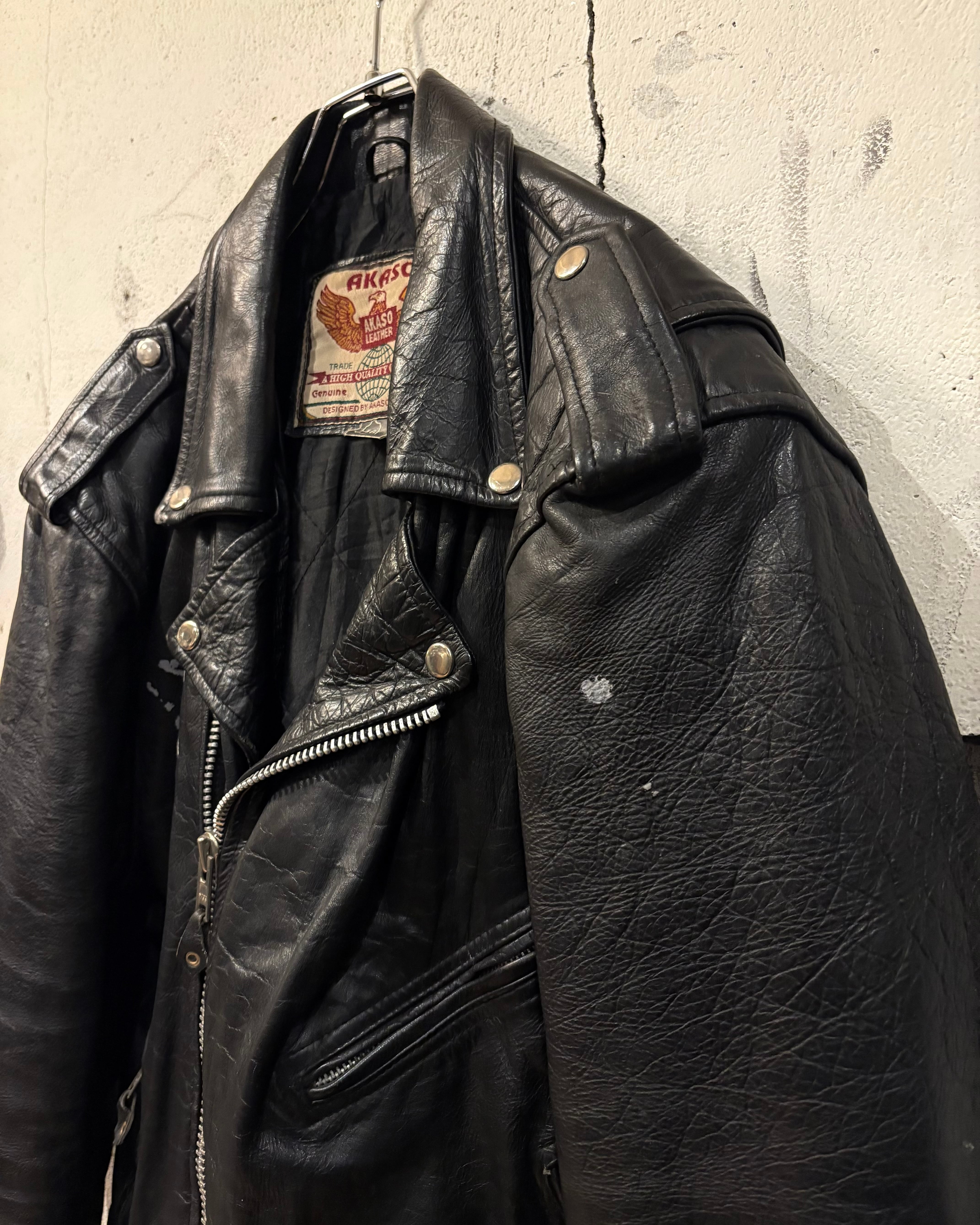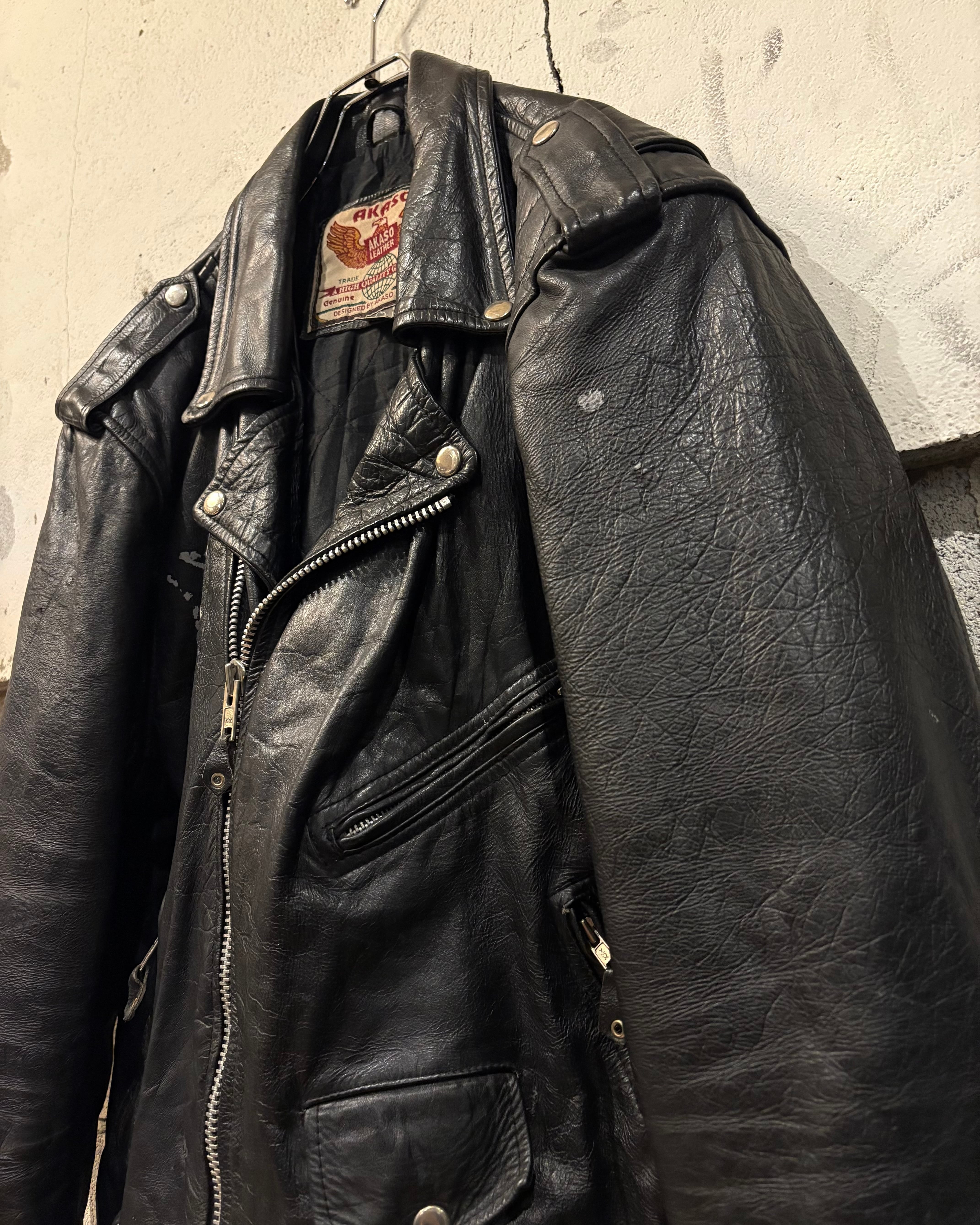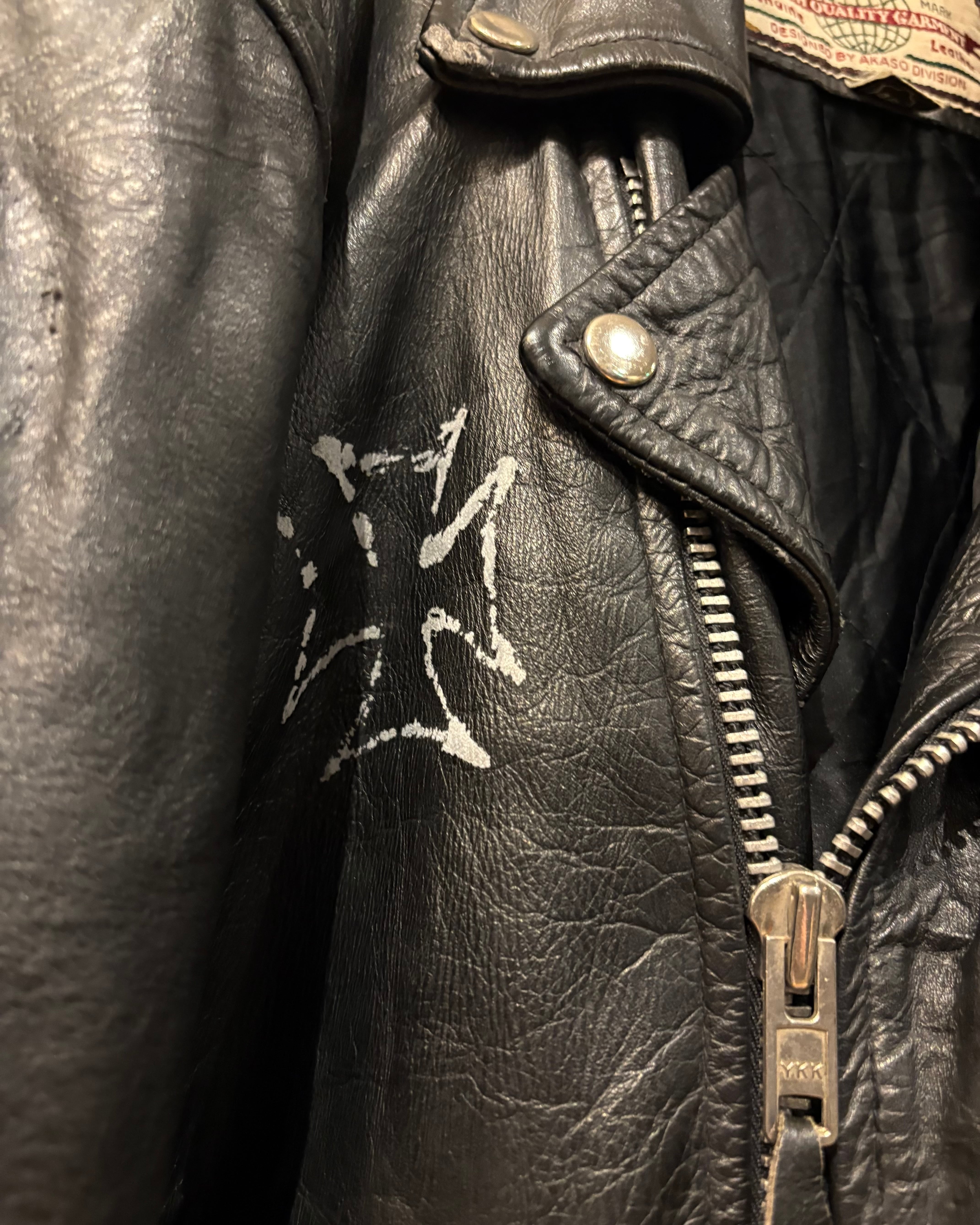 無骨なレザーの質感とカスタムペイントが放つ存在感が圧倒的な、ヴィンテージダブルライダースジャケット。