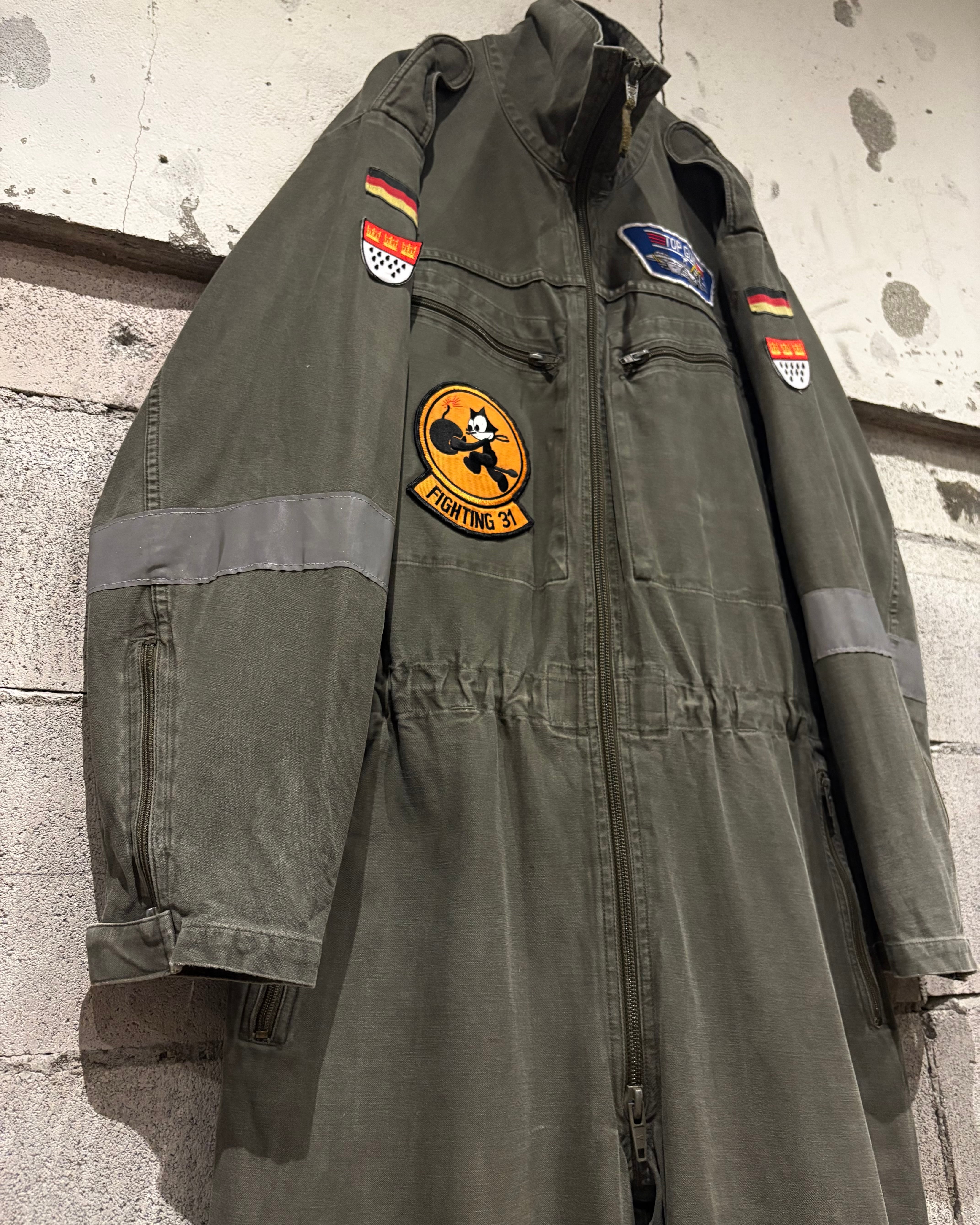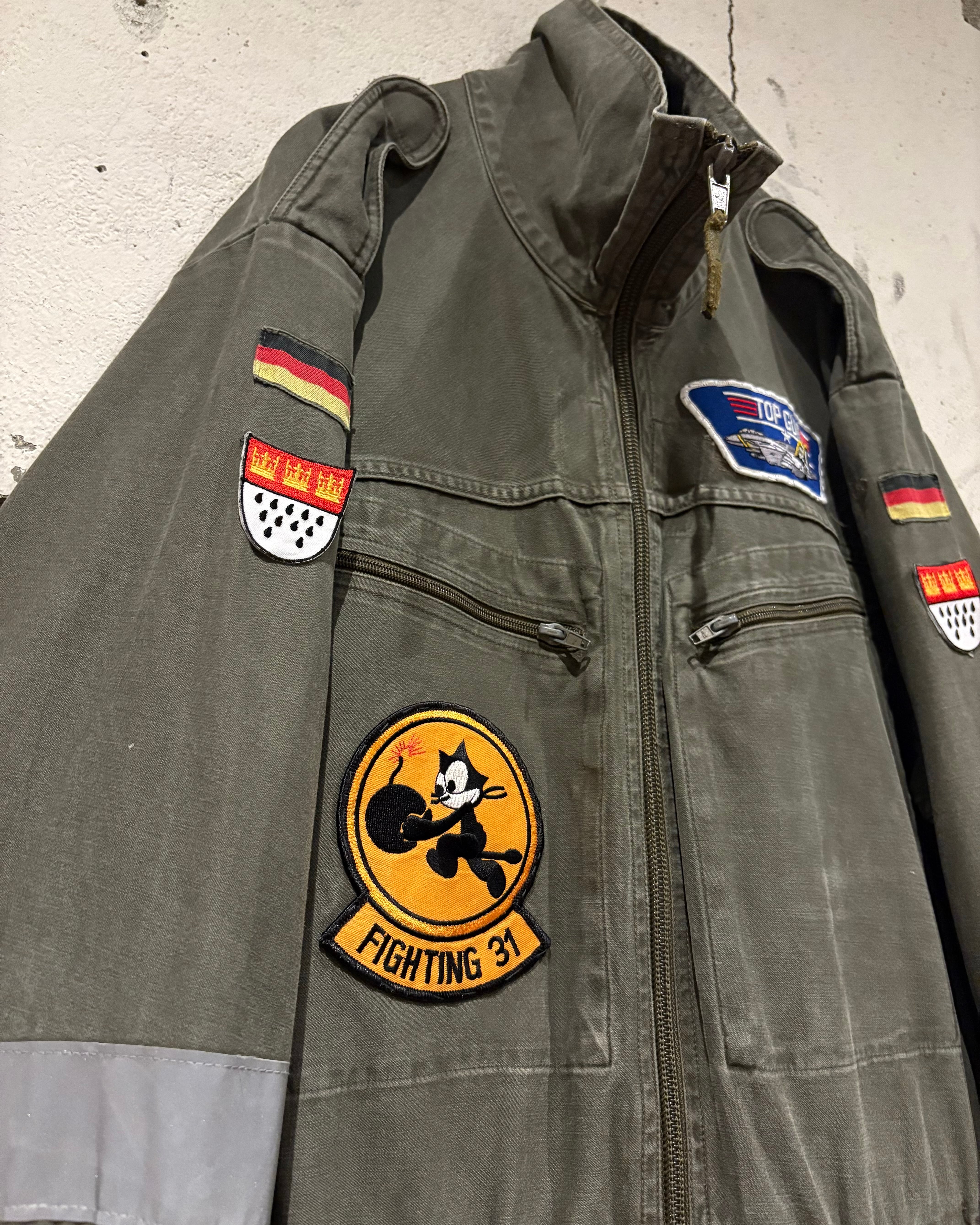 ヴィンテージミリタリーの重厚なムードと、ワッペンのカスタムセンスを感じられるスペシャルなフライトスーツの逸品です。