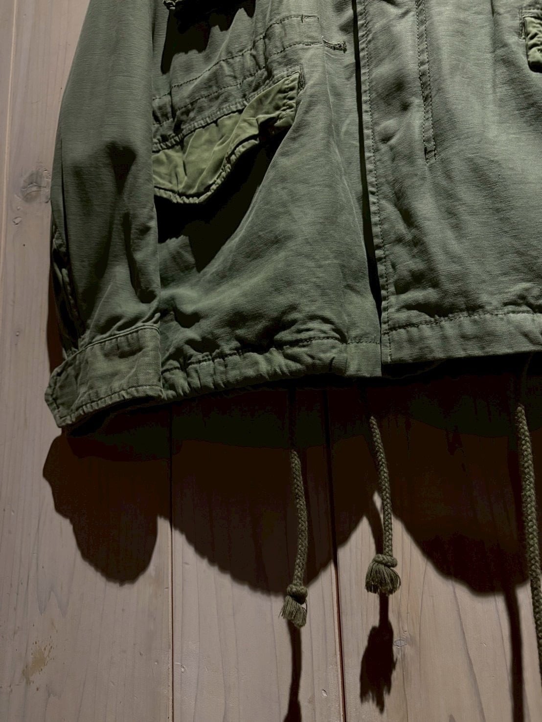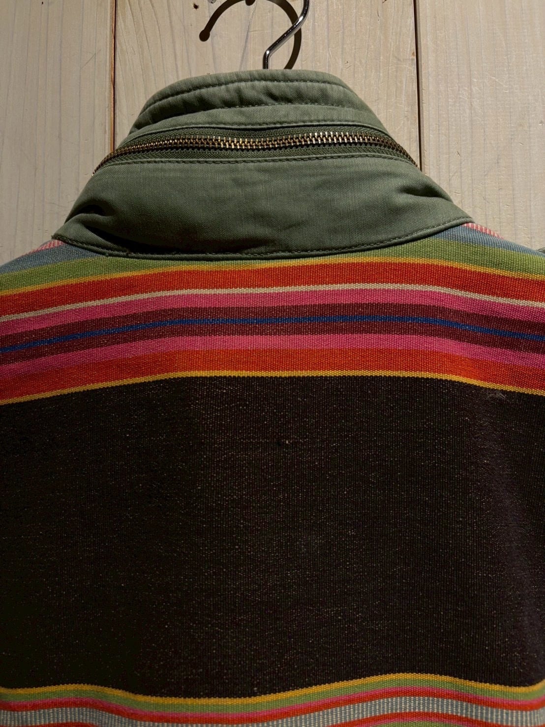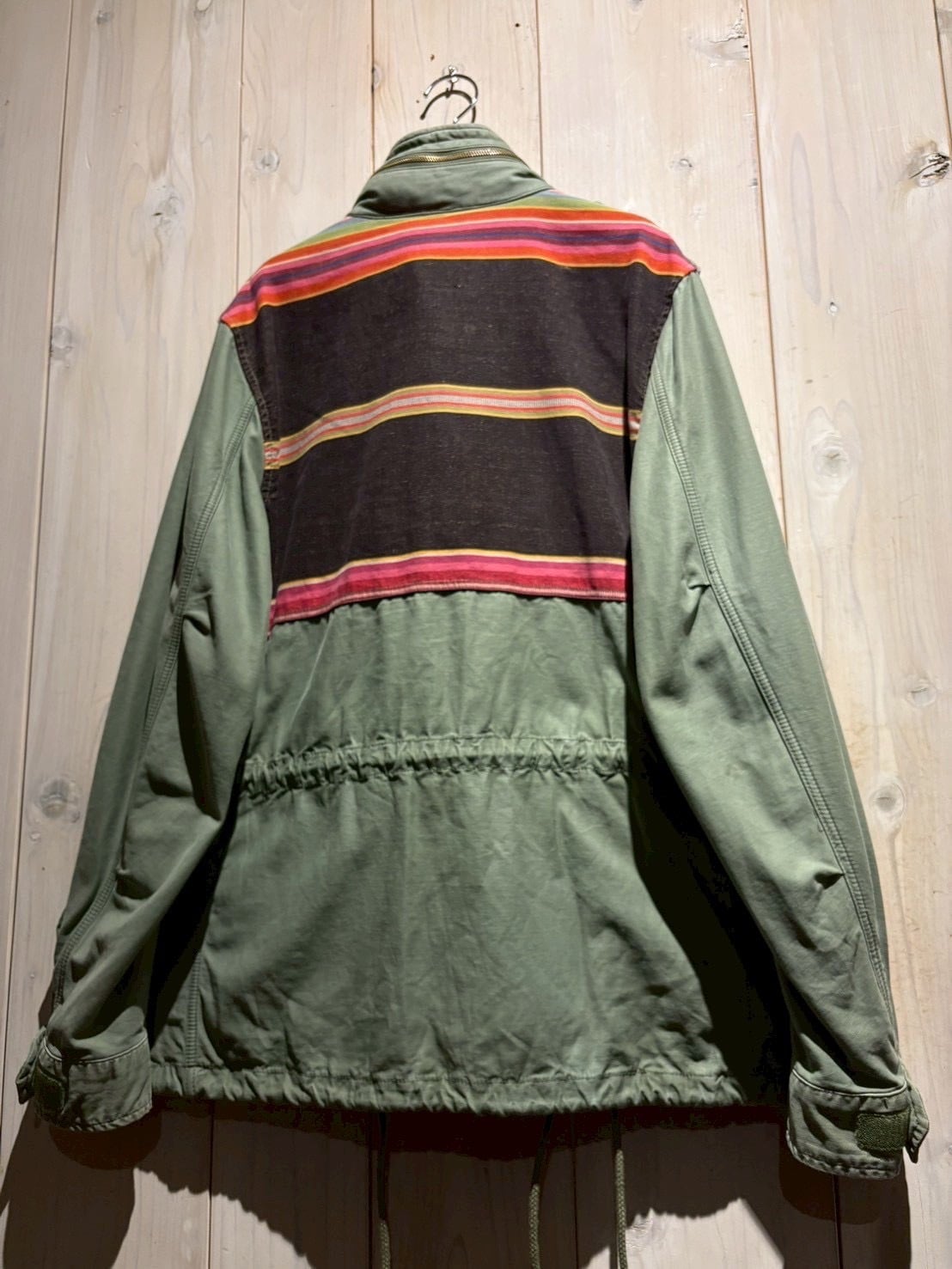 US Armyの名作 M-65フィールドジャケット をモデルに採用したボディに、ヨークにかけてボーダー柄のテキスタイルを切り替えた1着。