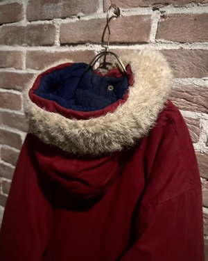 外装にはコットン×ポリエステル混紡の高密度な生地を使用。マットな質感としなやかな張り感を併せ持ち、上品ながらも武骨な印象を演出します。フード周囲には柔らかなフェイクファーを配し、顔まわりに豊かな立体感とラグジュアリーなムードをプラス。