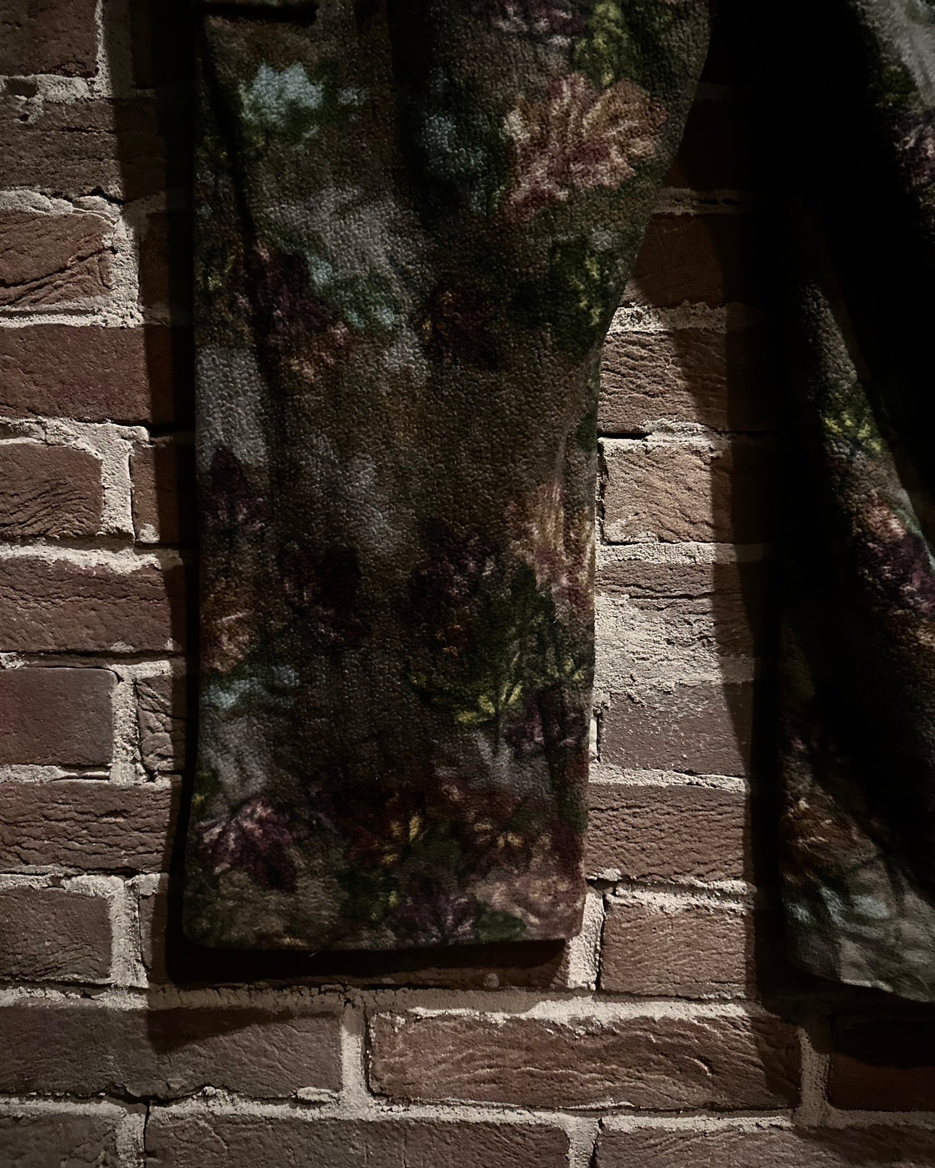 グリーンやブラウンを基調としたボタニカル柄は、カモフラージュのような存在感を持ちながらも、野暮ったさを感じさせない抜群のバランス感。スウェットやナイロンアウターとの相性も抜群で、スタイリングに暖かみと奥行きをもたらす仕上がりに。