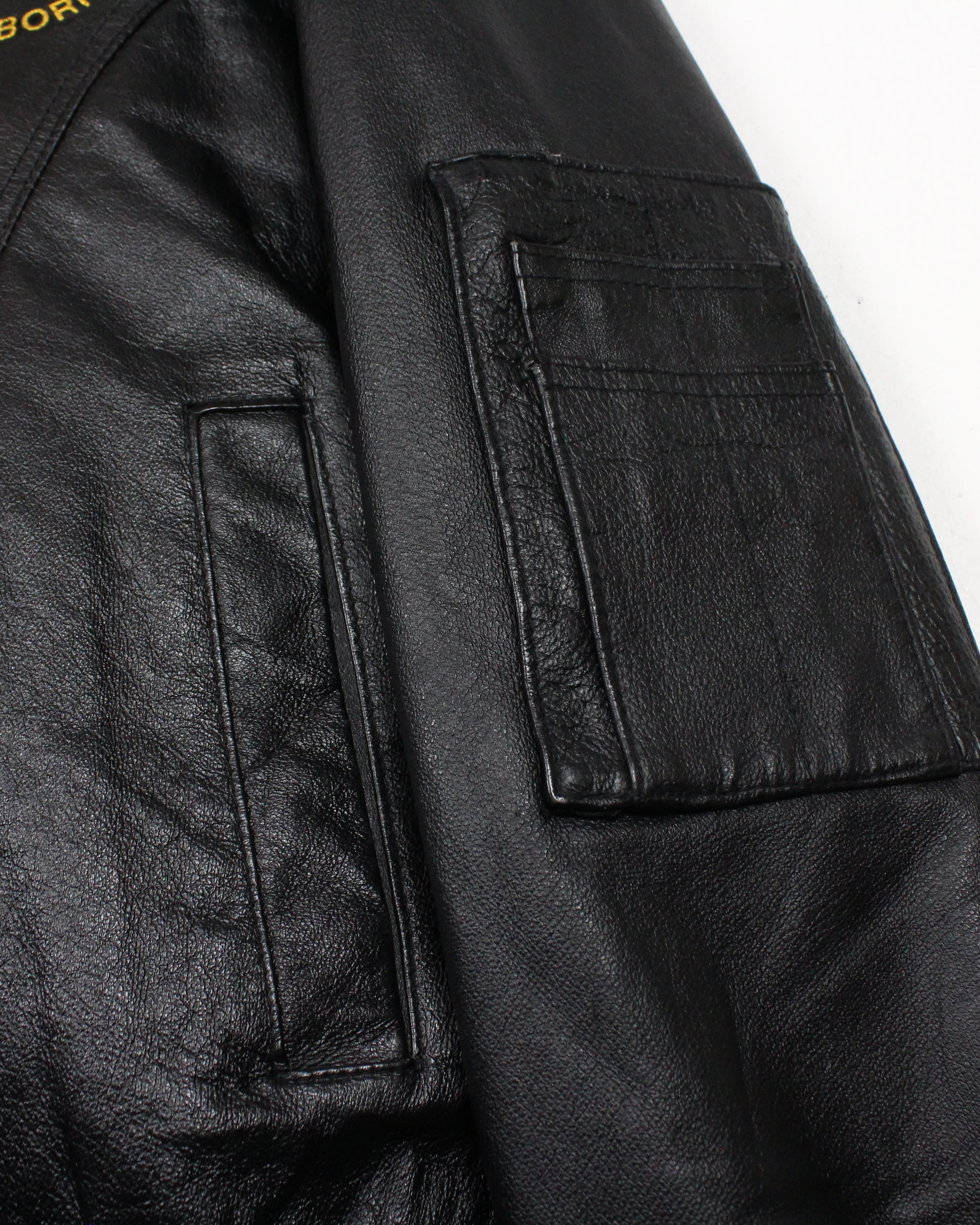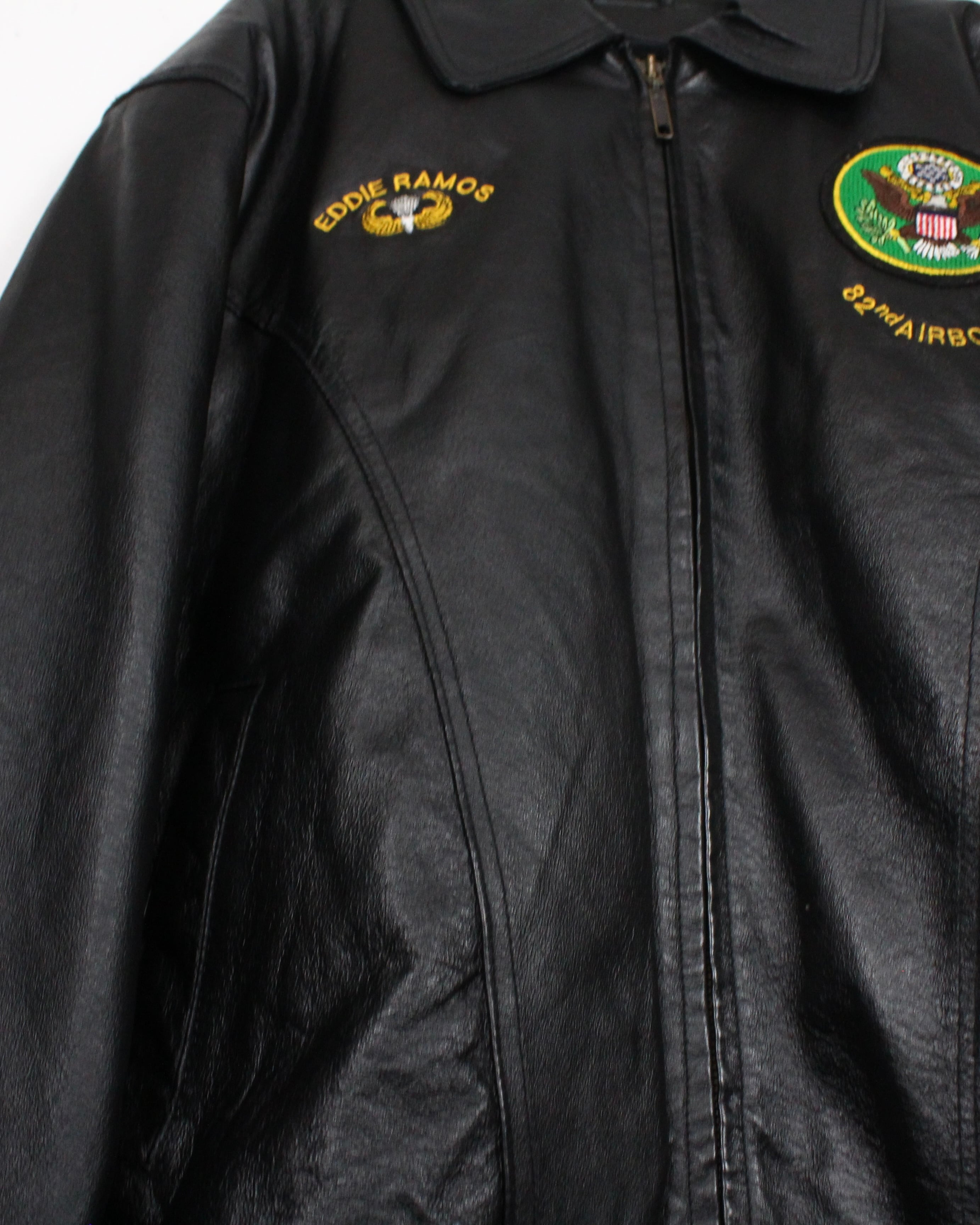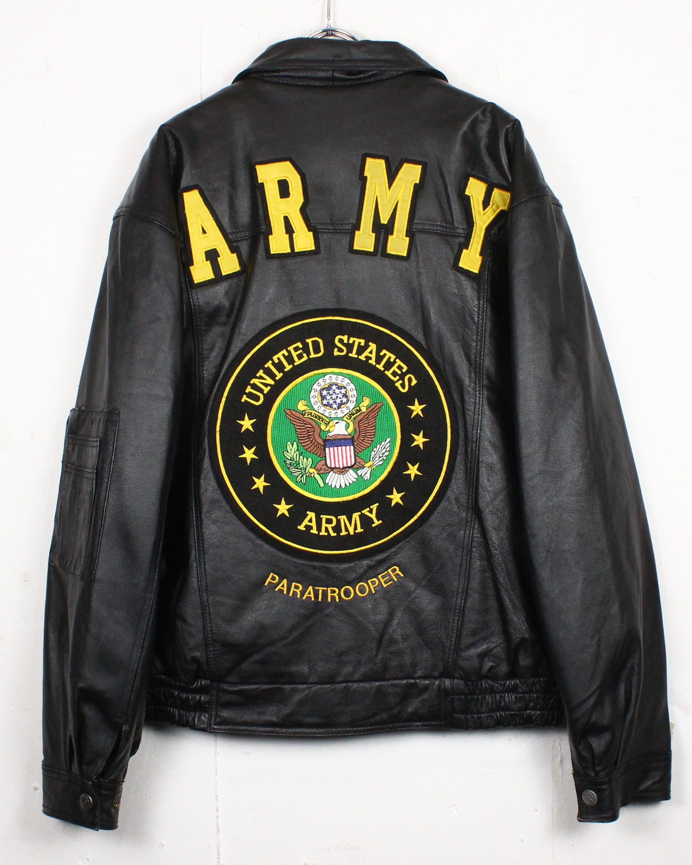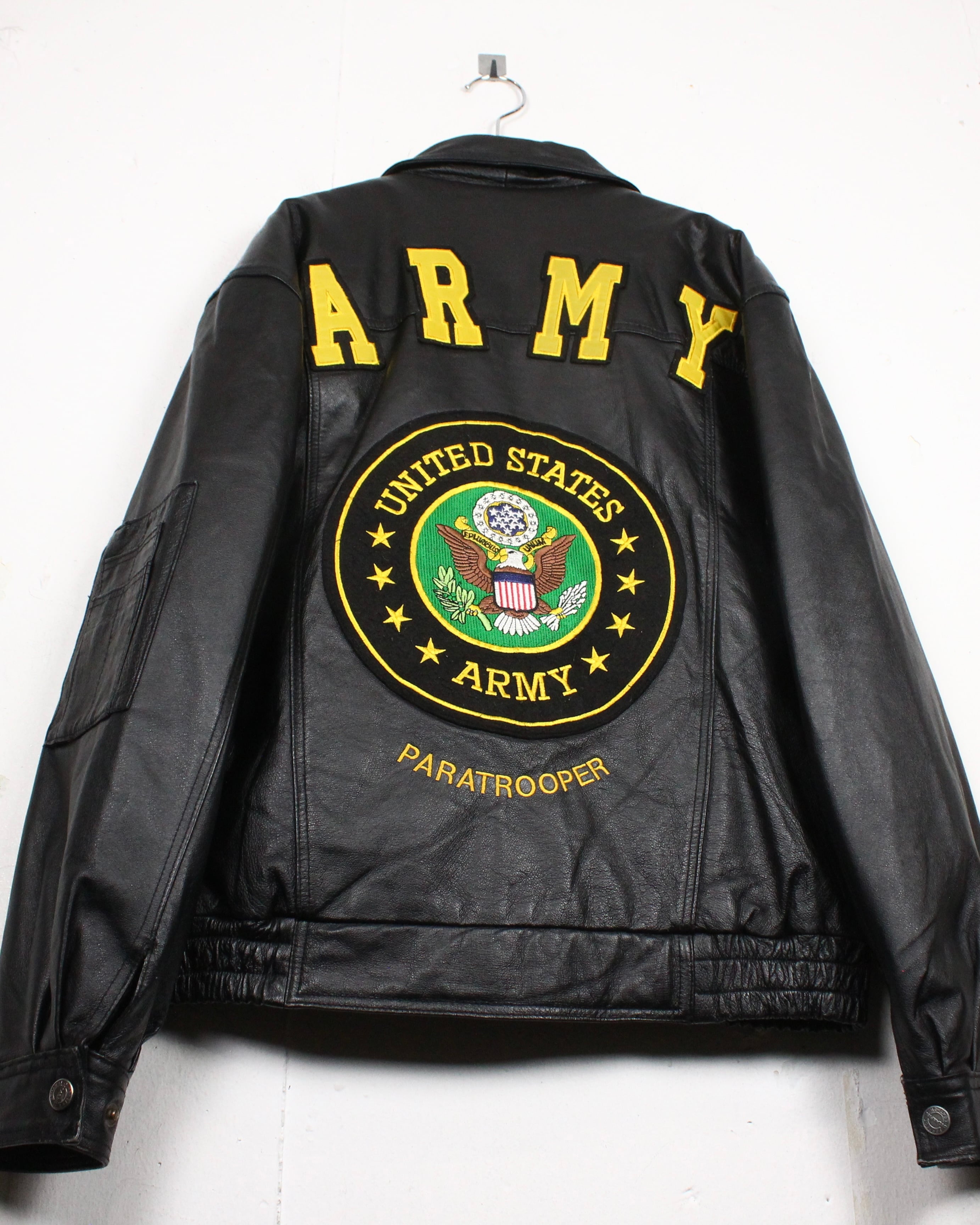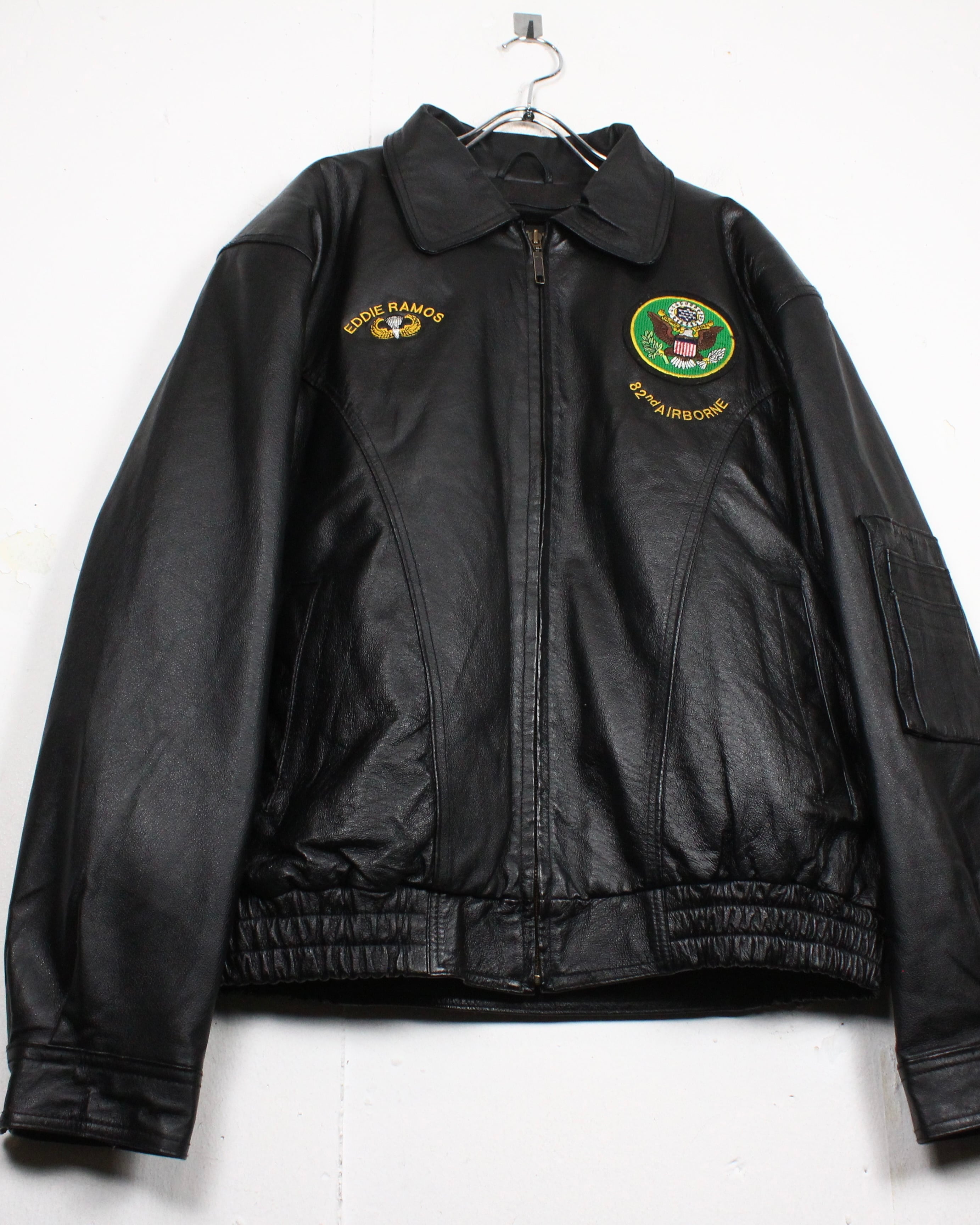 胸元には「82nd AIRBORNE(第82空挺師団)」のパッチとネーム刺繍を配置し、背面にはU.S. ARMYの大型エンブレムを大胆にオン。力強いコントラストのイエローとグリーン刺繍が、ブラックボディに美しく映えます。