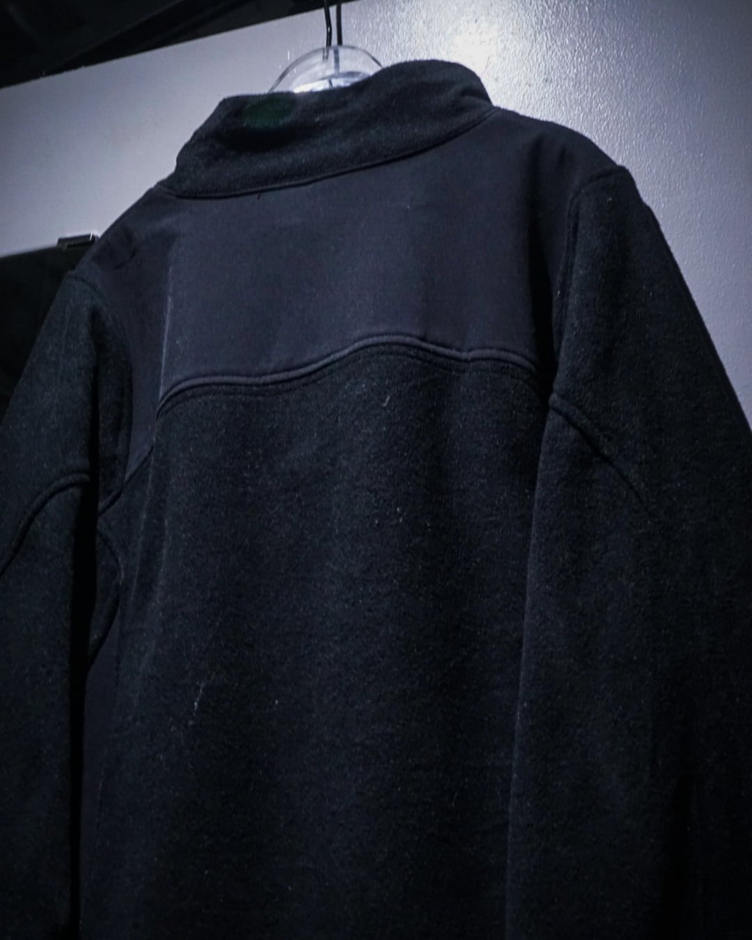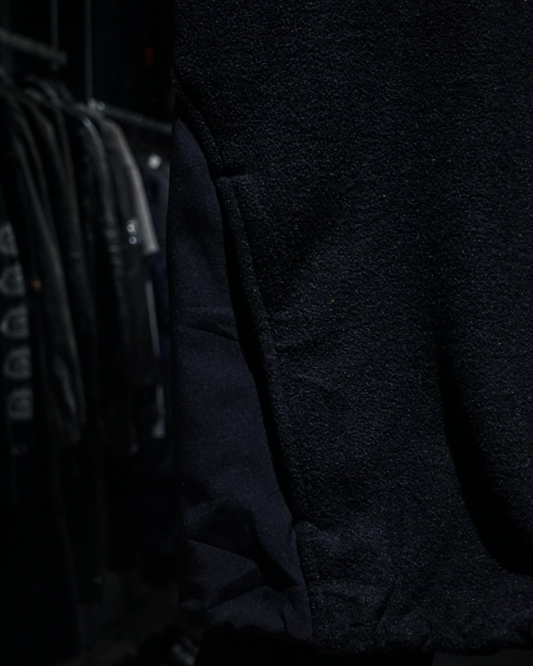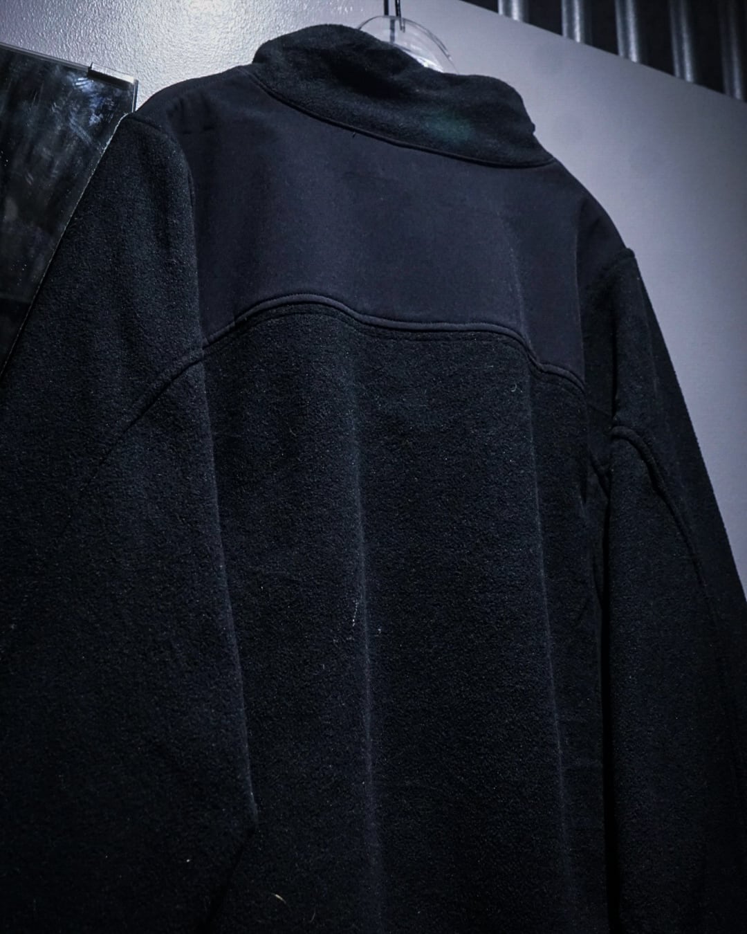 ボディ全体は軽量かつ保温性の高いフリースをベースに、ショルダーからヨークにかけてはナイロン切り替えを施した異素材切り替えの1着。