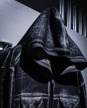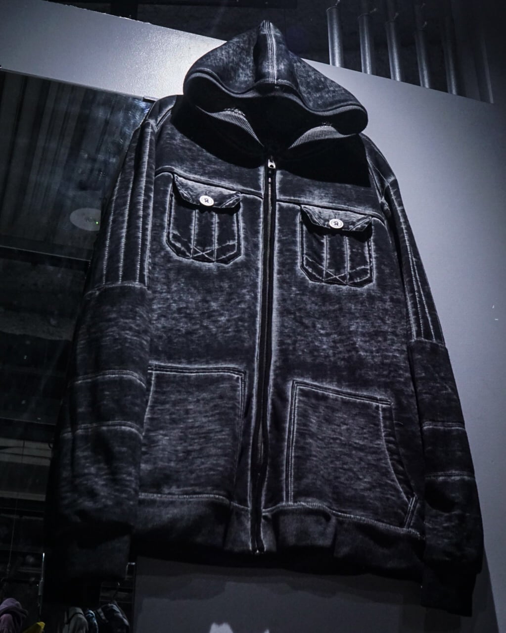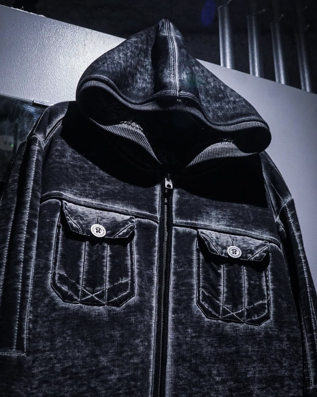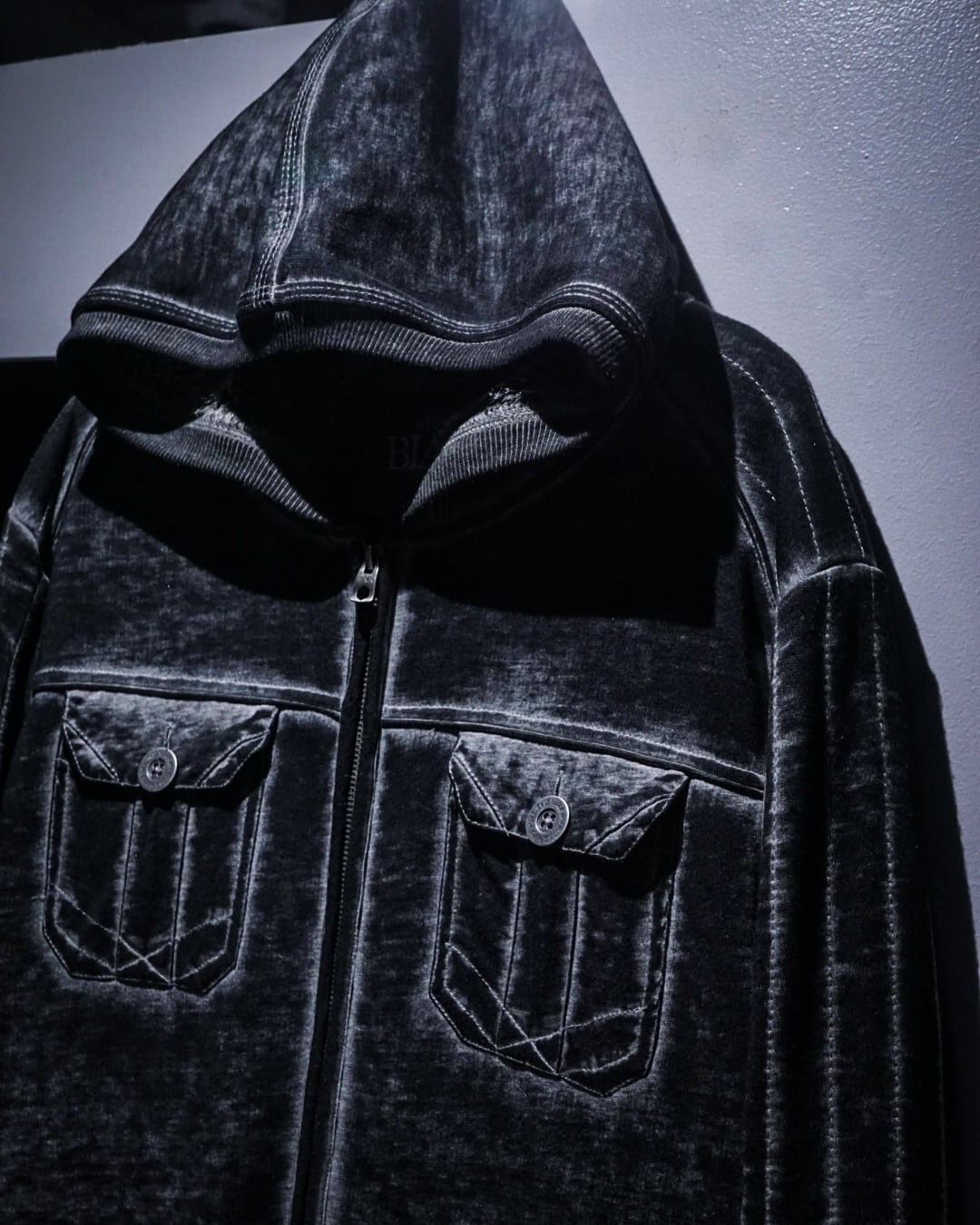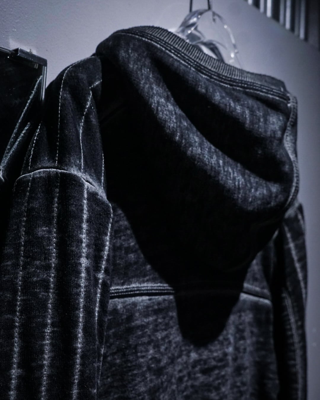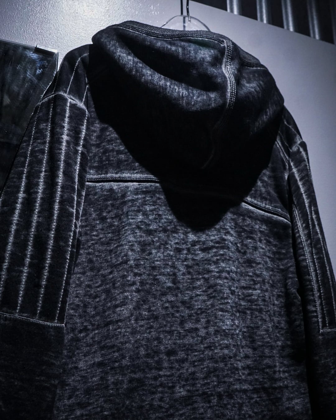 素材感、デザイン性、シルエットすべてにおいて完成度の高い、主役級の存在感を放つジップアップフーディの1着です。