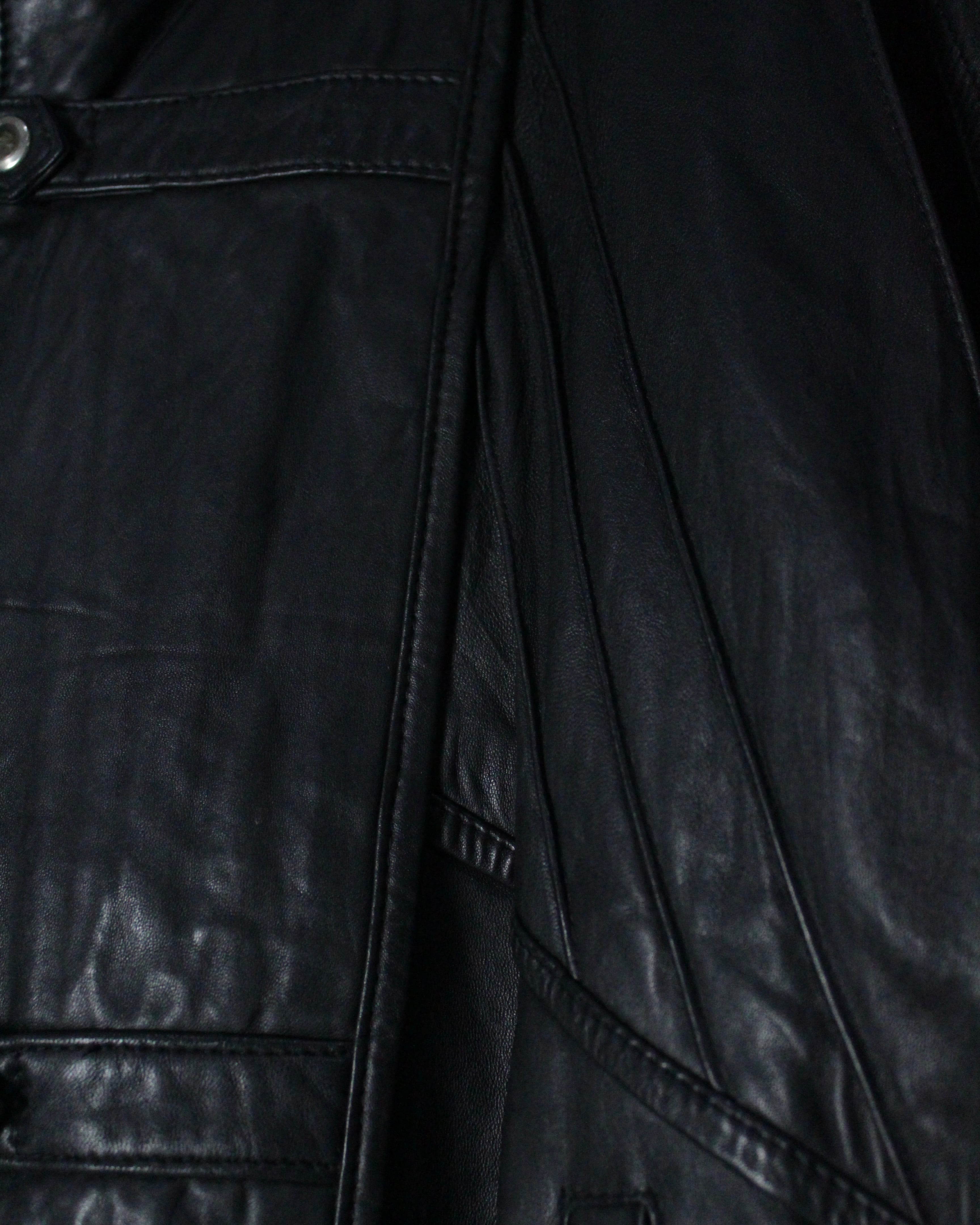 素材はしなやかで艶やかなブラックレザー。長年の経年によって生まれた柔らかな質感が唯一無二の風合いを演出。裏地にはキルティングを採用し、防寒性にも優れた仕上がりです。