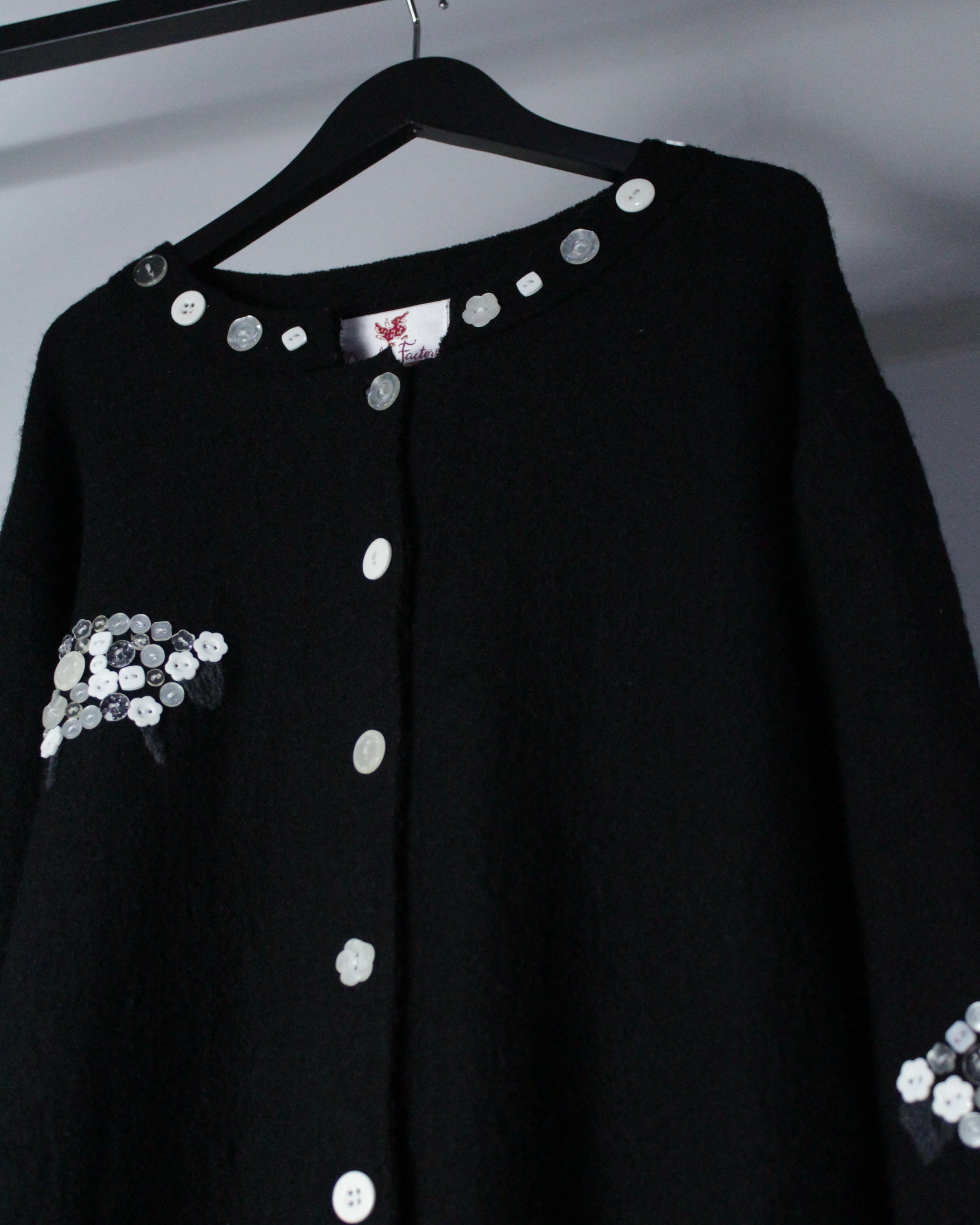 クラフト、アート、ファッション性を兼ね備えたウールカーディガンの逸品です。