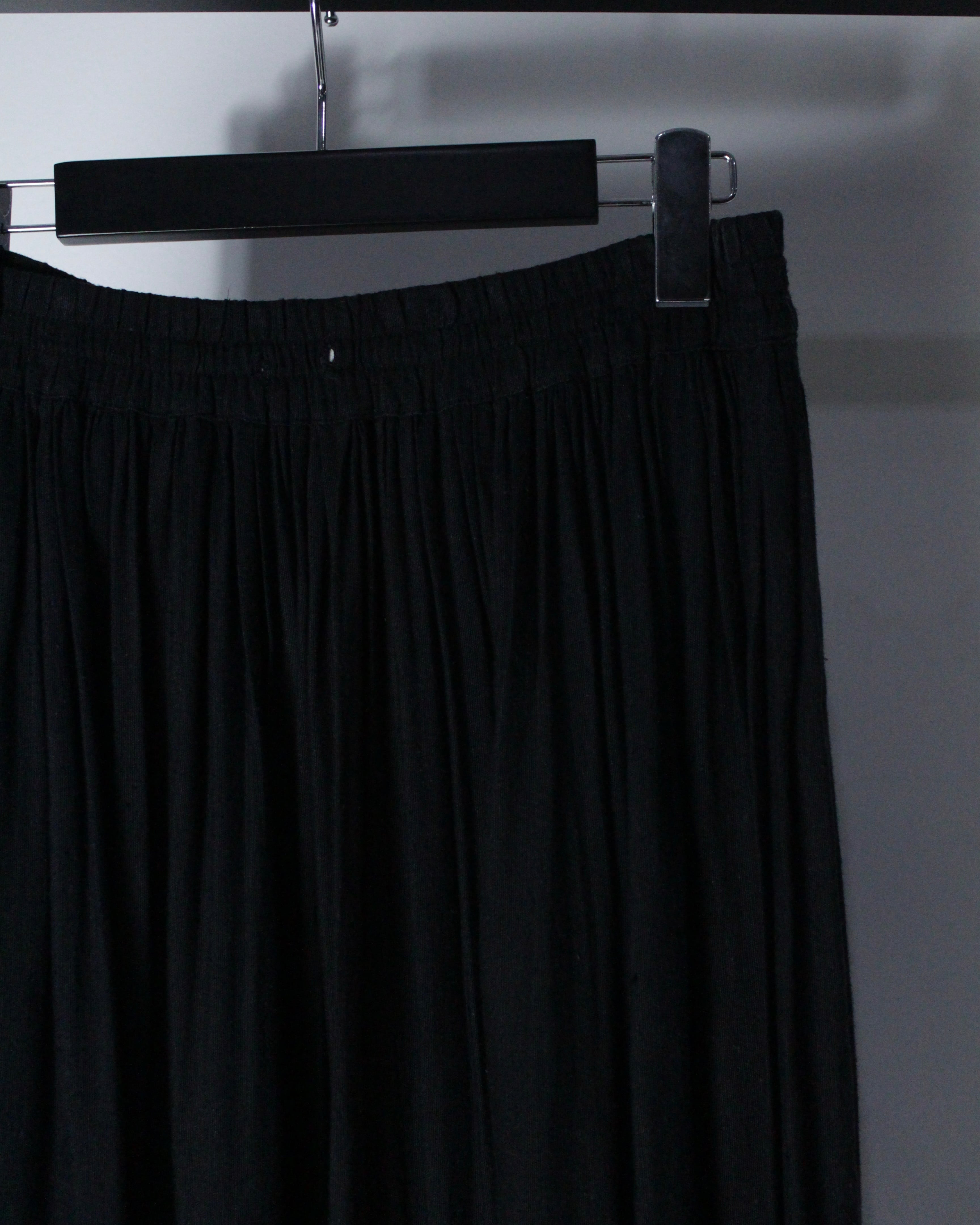 ウエストはゴム仕様でストレスフリーな穿き心地。歩くたびに軽やかに揺れる生地感が、モードな空気感とフェミニンなニュアンスを漂わせる仕上がりに。