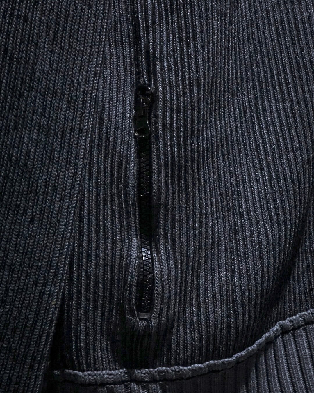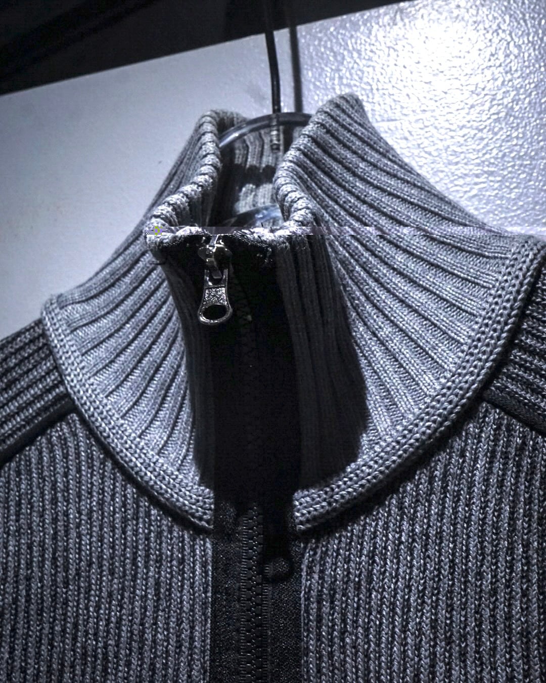 グレートーンで切り替えを施したリブニットボディが印象的なジップアップジャケット。