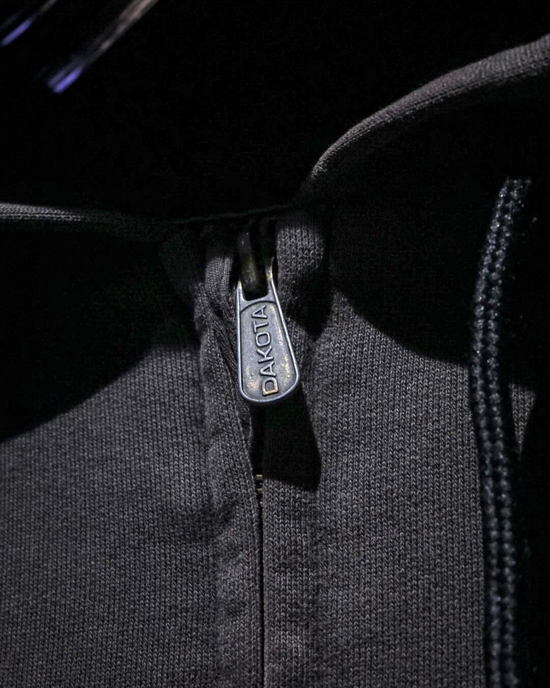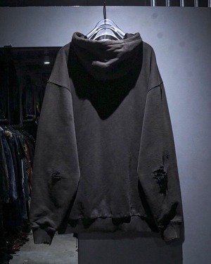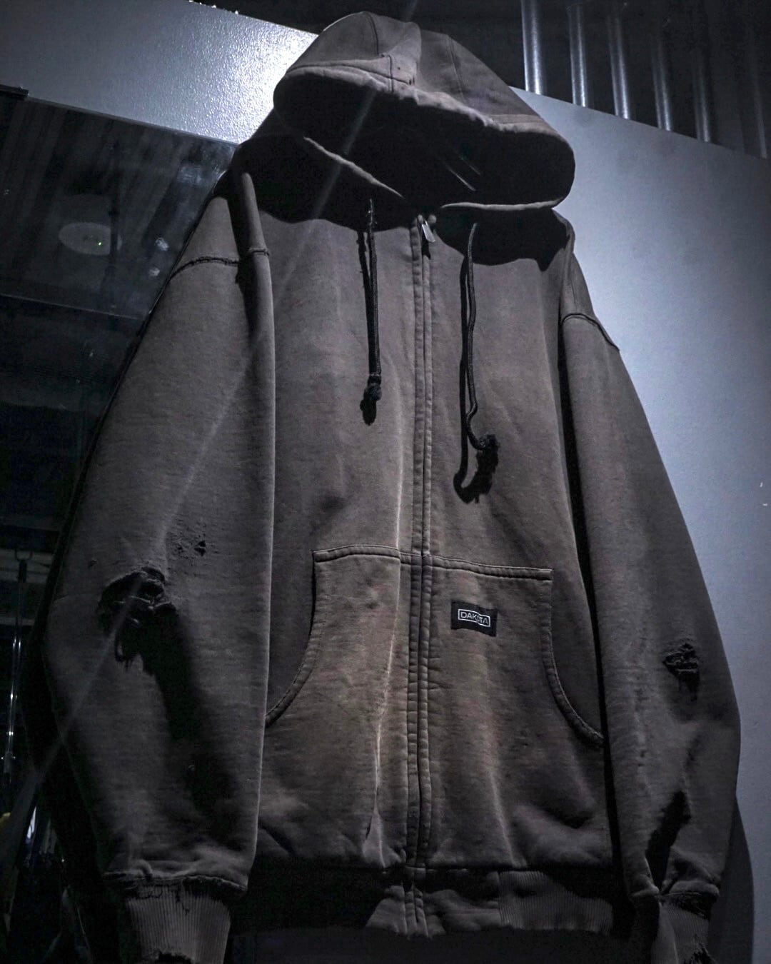 深みあるチャコールブラウンにフェードがかかった、抜群の雰囲気を誇るジップアップフーディ。
