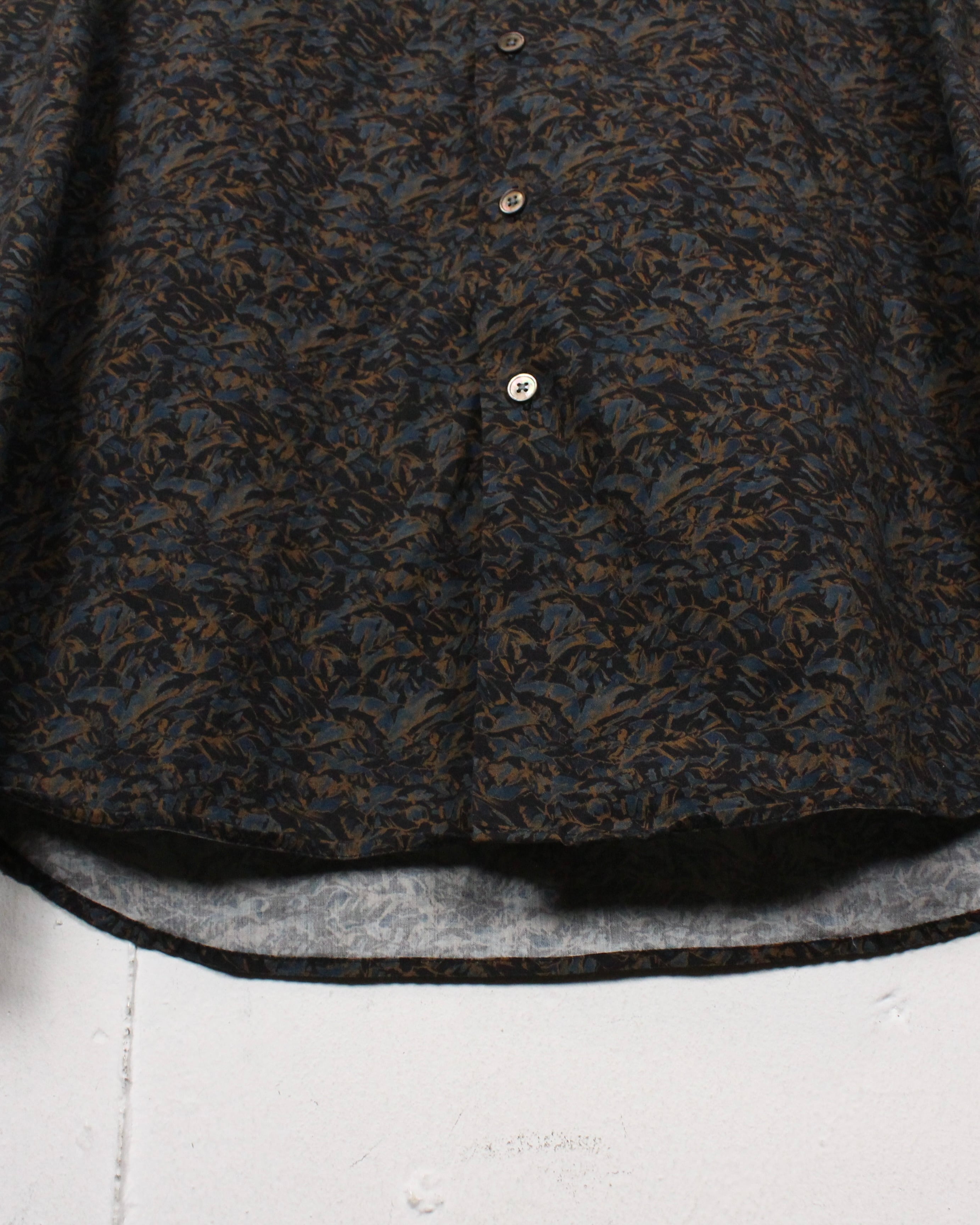 カラーはブラックをベースにブルーグレーとマスタードカラーのアートなリーフパターン。一見モード色が強いように思いますが、柄とカラーリングも相まってモードかつクラシックの絶妙な塩梅。これぞ正しくポールスミスの十八番。