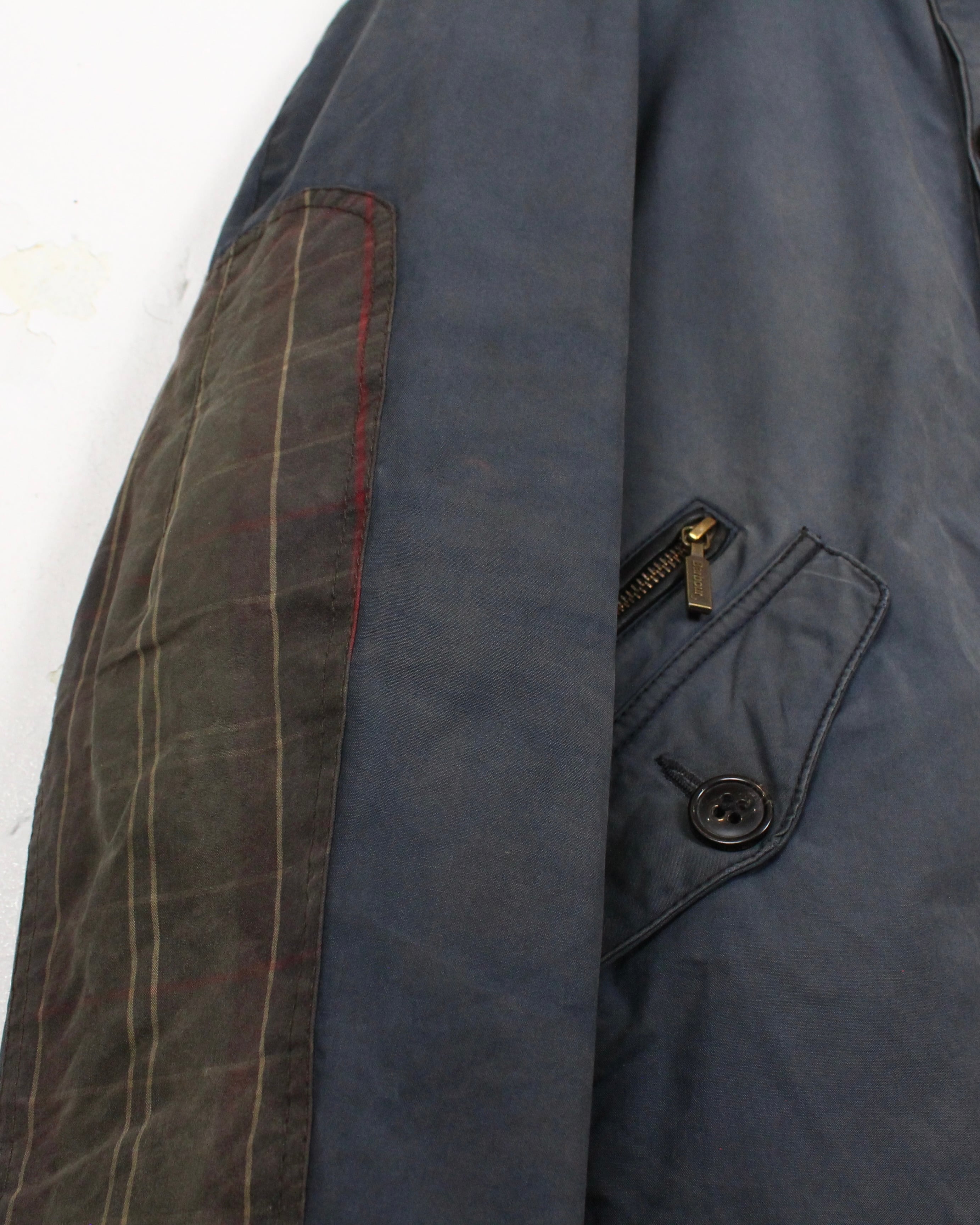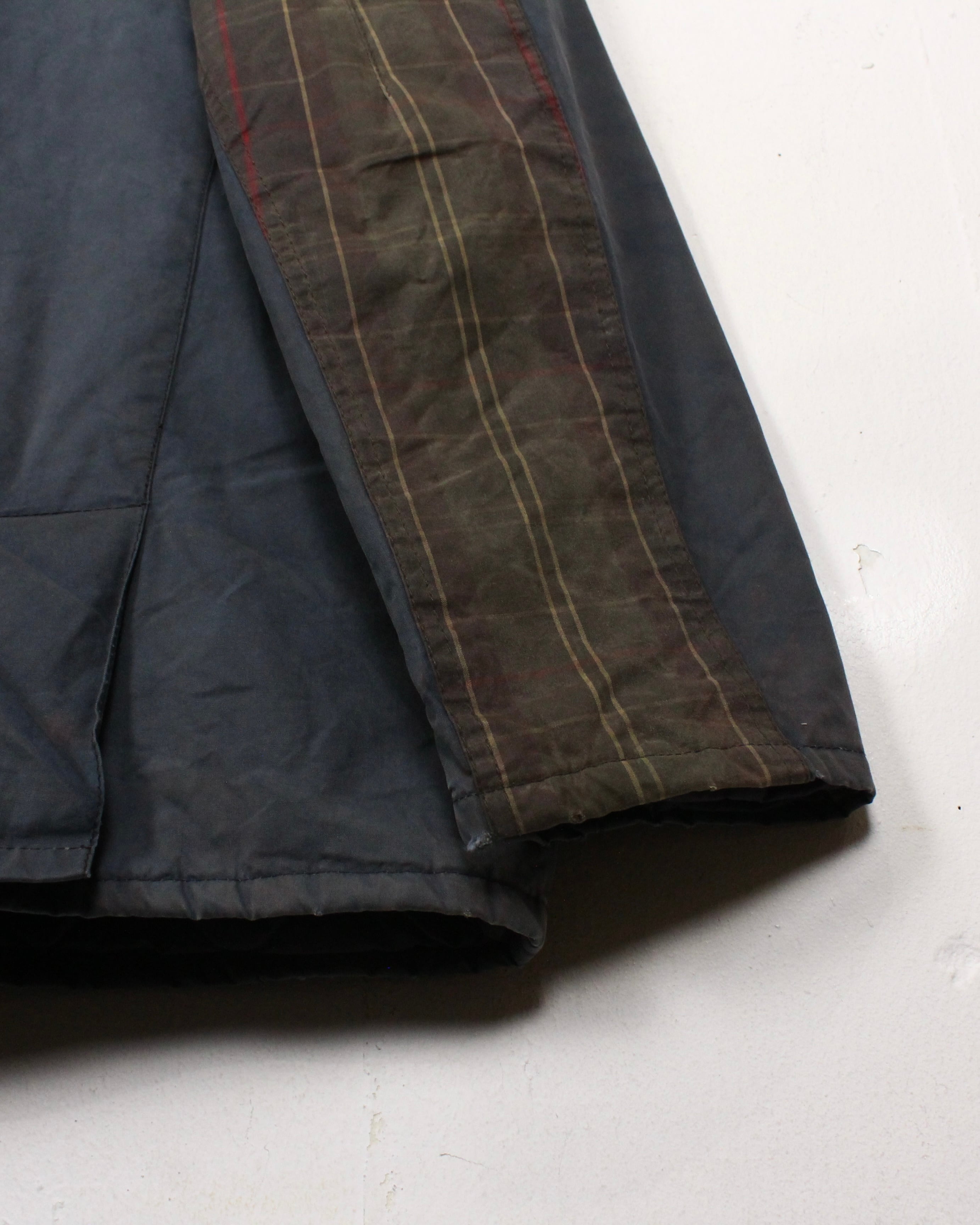 定番のワックスドコットンをベースに、ブランドの象徴でもあるチェック柄を袖から肘にかけて施された補強パネルで切り替えた1着。