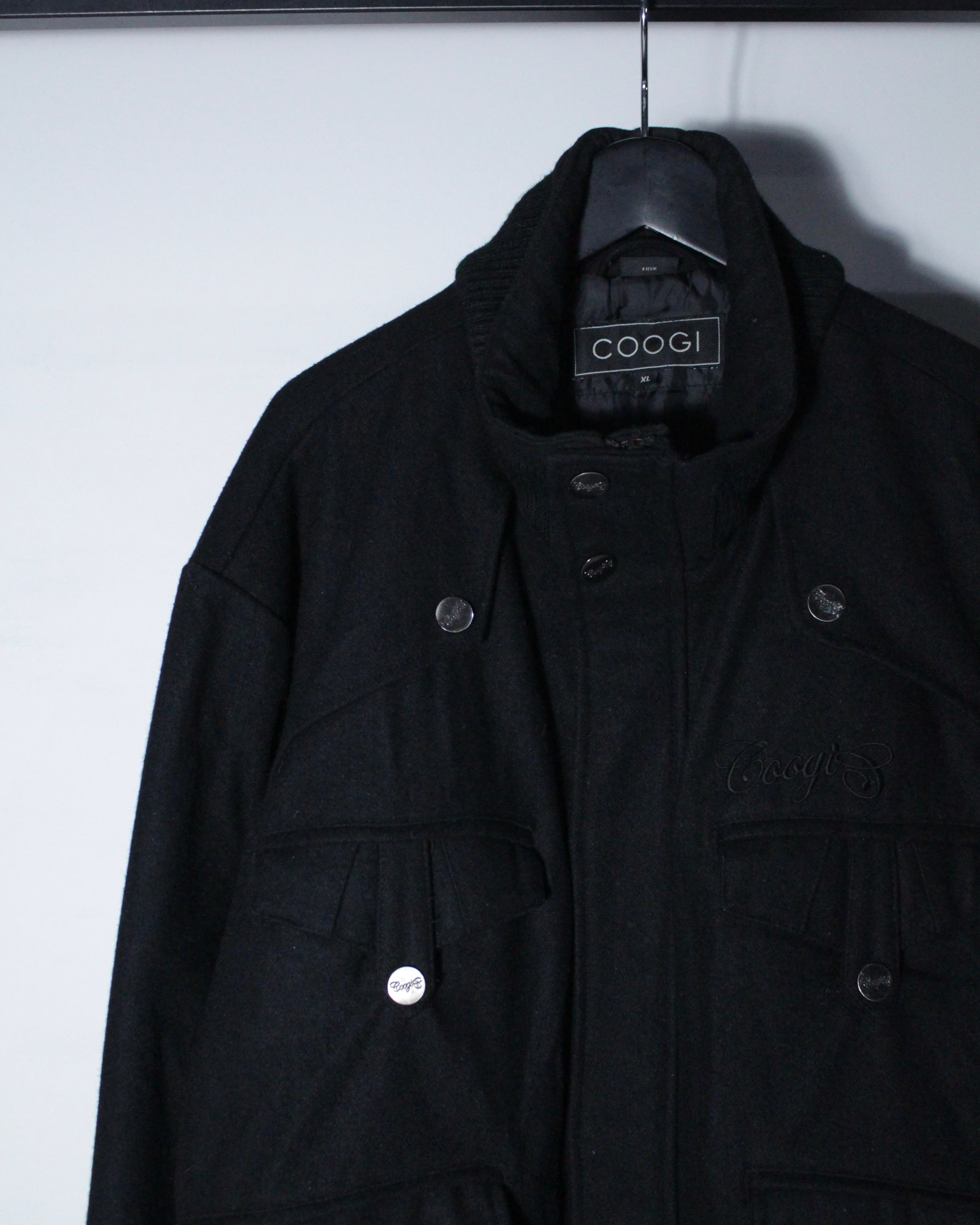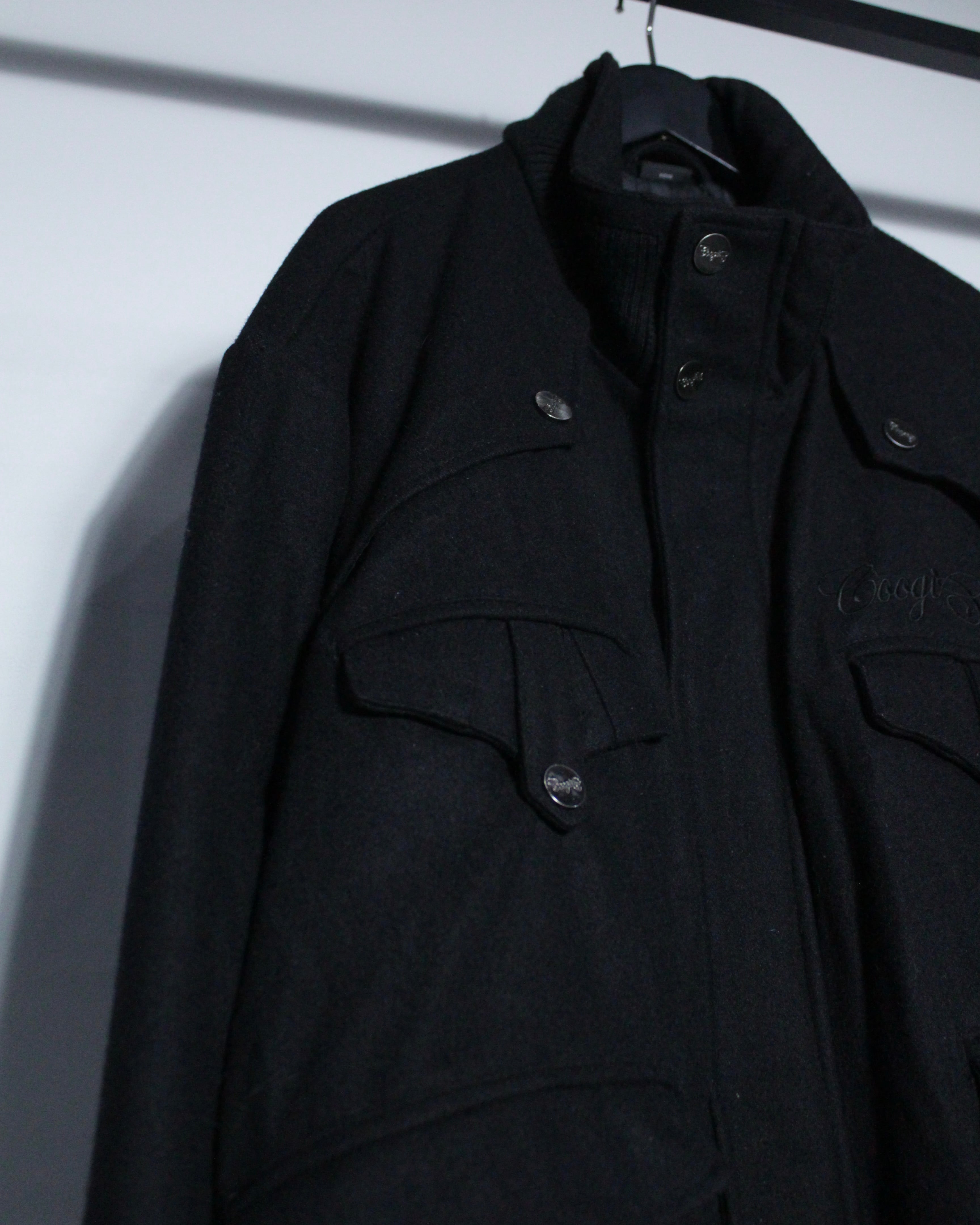 ブランドロゴ入りのメタルボタンやフラップポケット、比翼仕立てのジップアップなど、随所に見られる細やかなディテールが、良い意味で"COOGI"らしからぬ洗練された佇まいを演出しています。