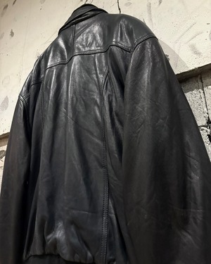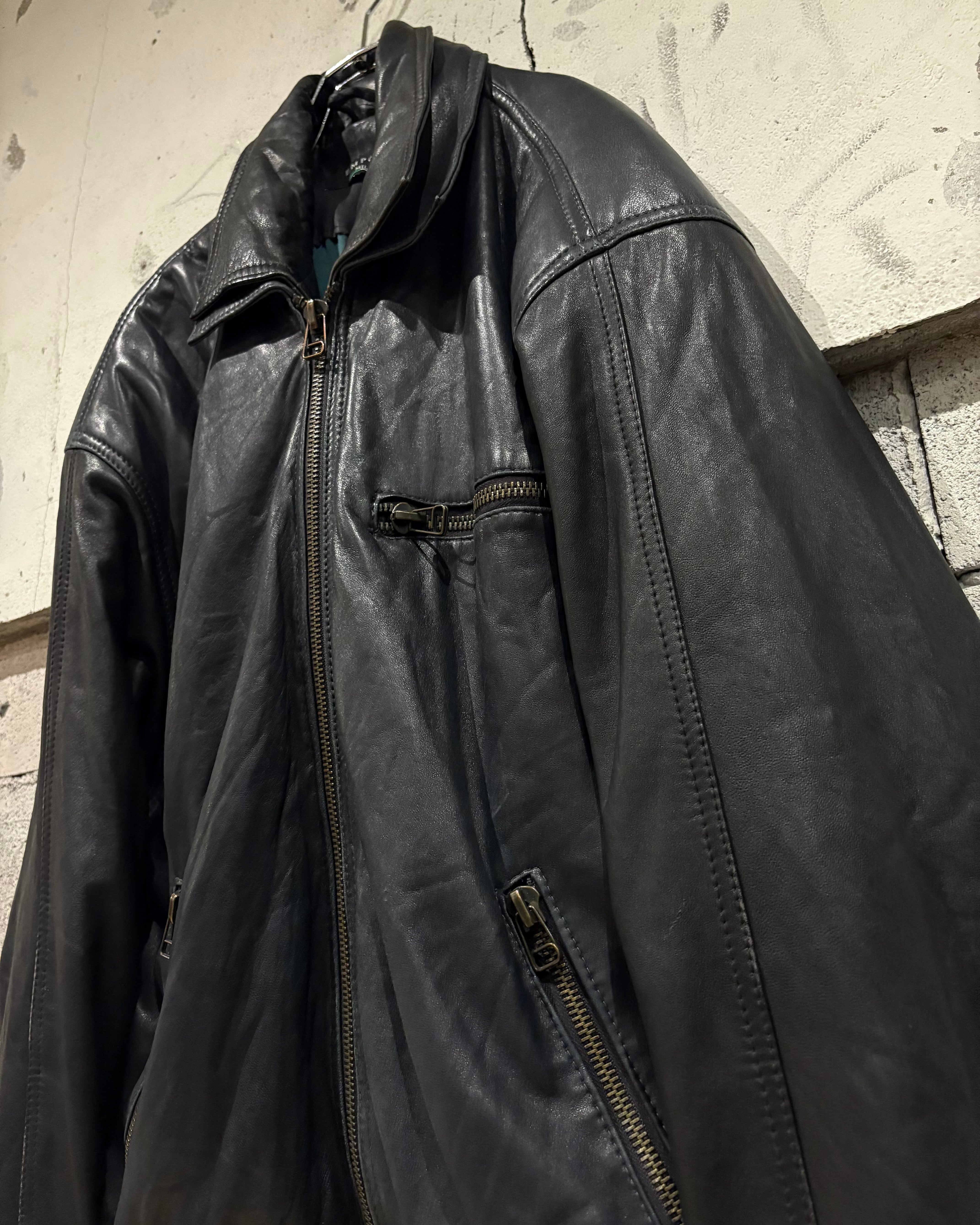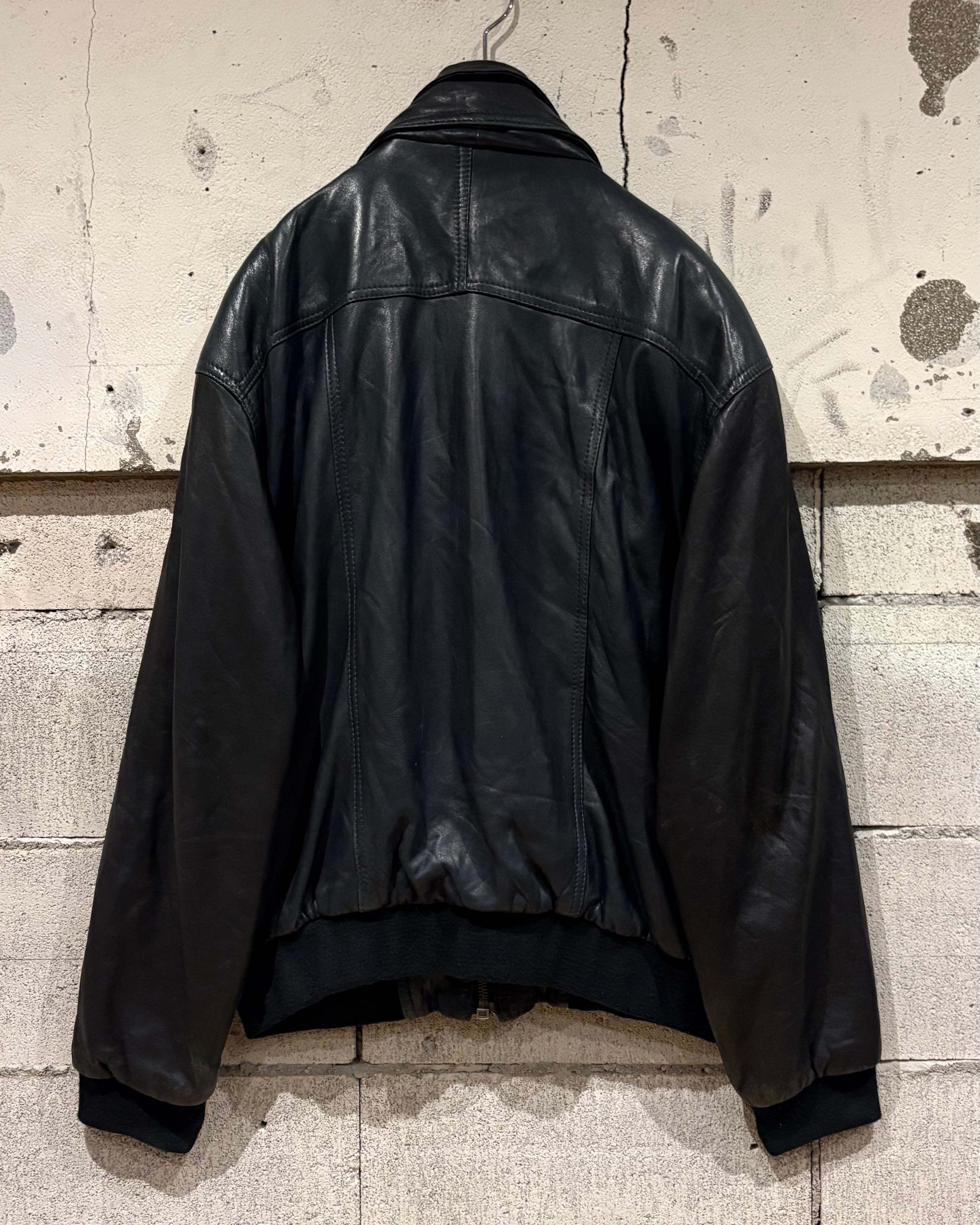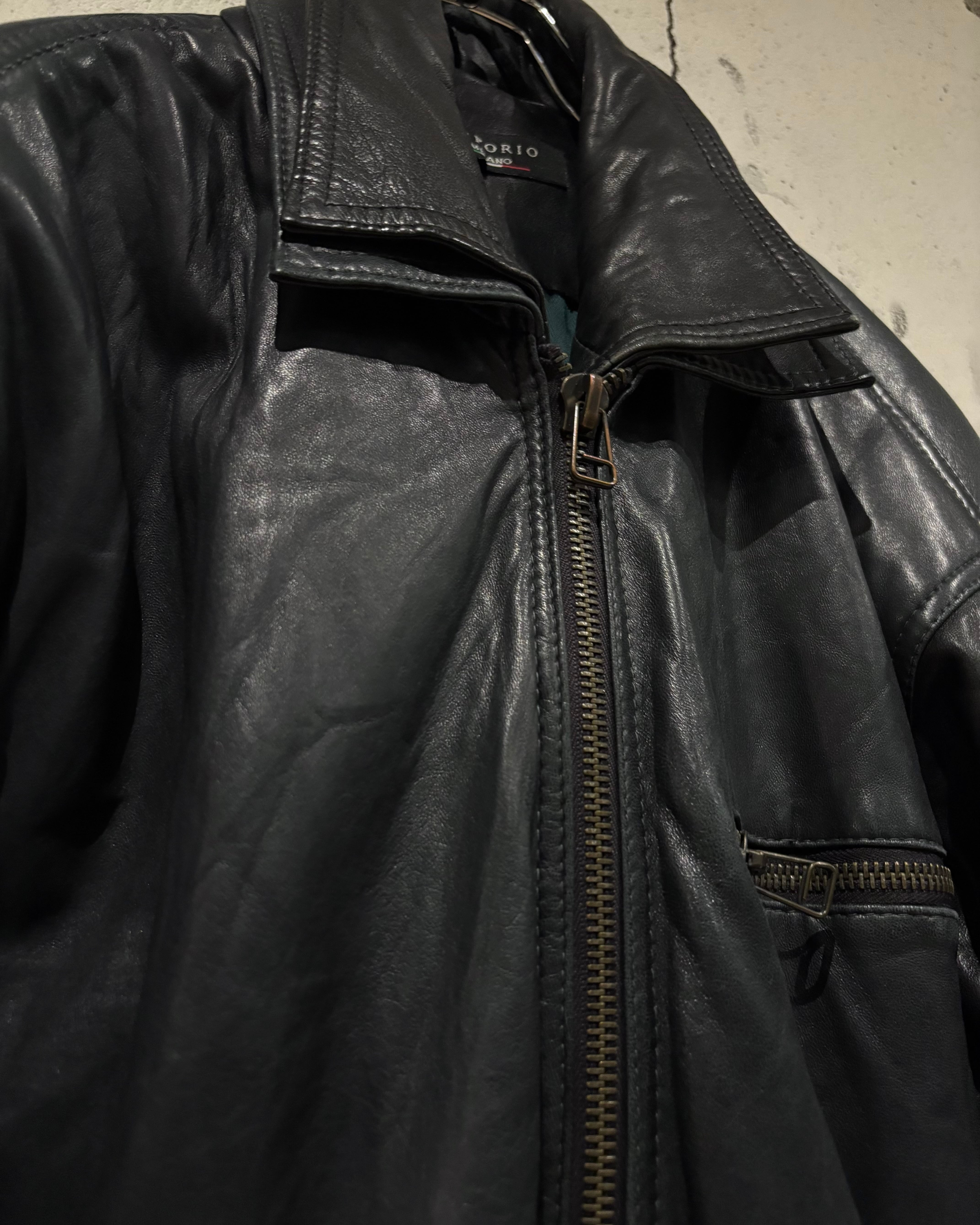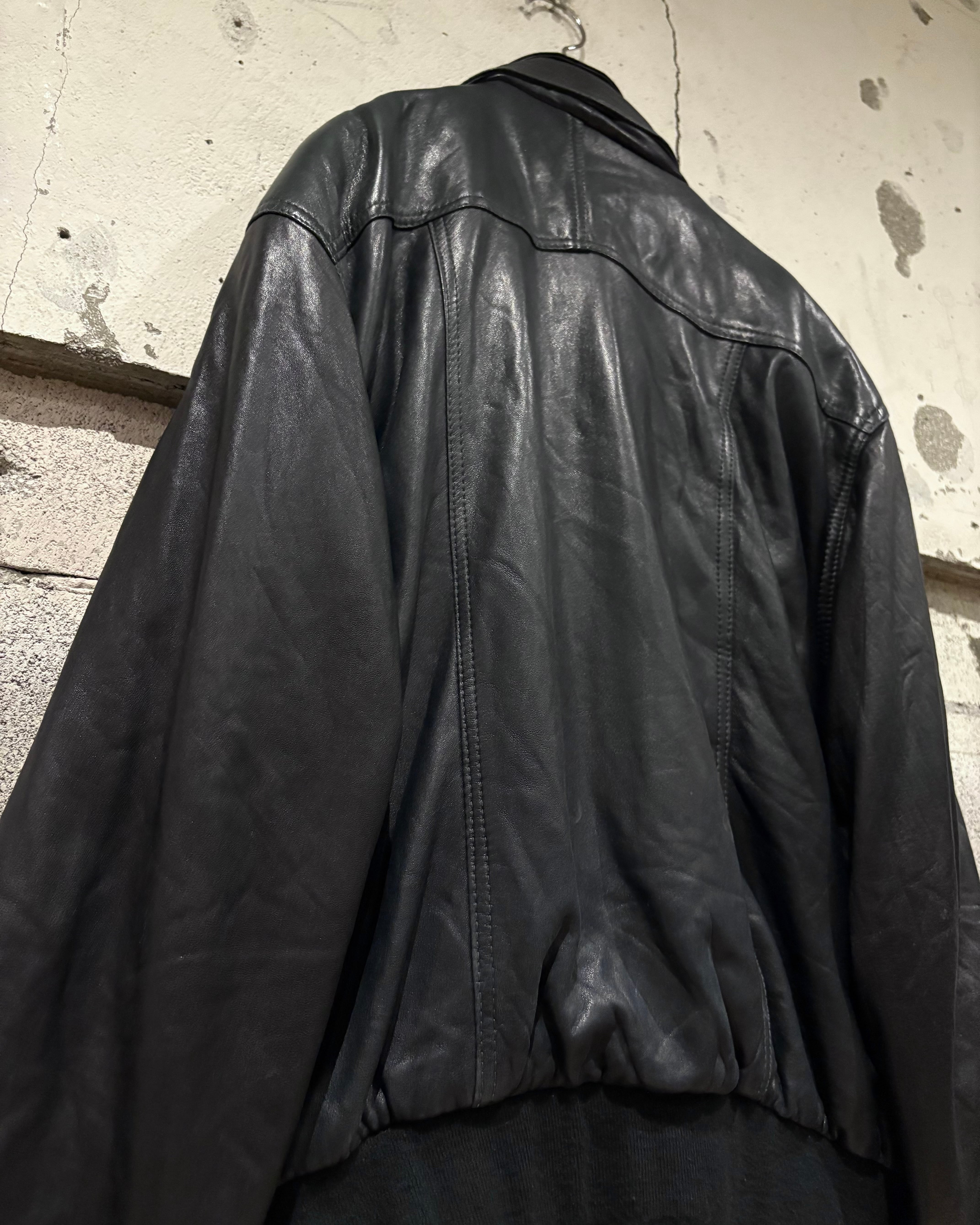 深みのあるグリーンボディに、ブラックのアームを切り替えたツートーン仕様のレザーブルゾン。