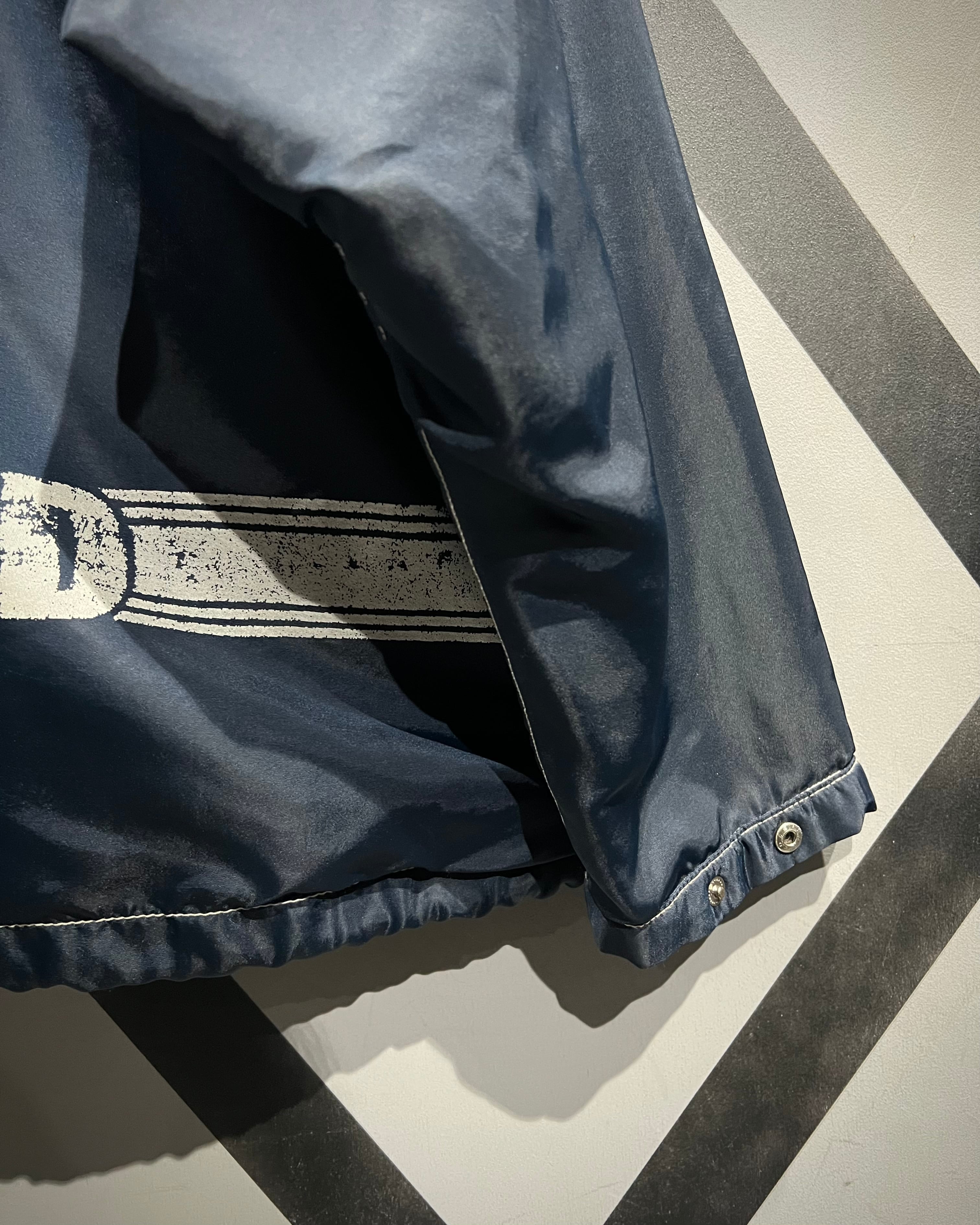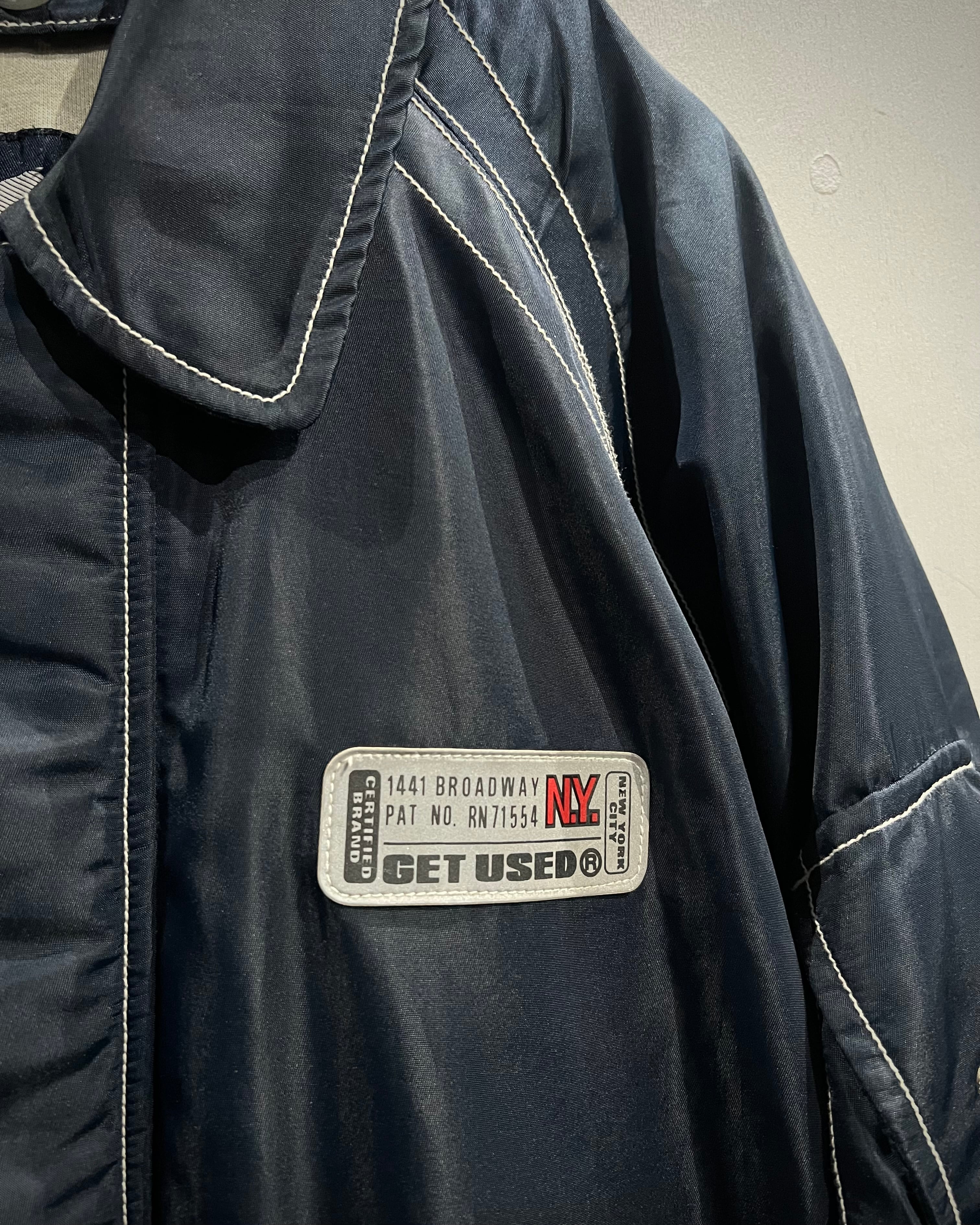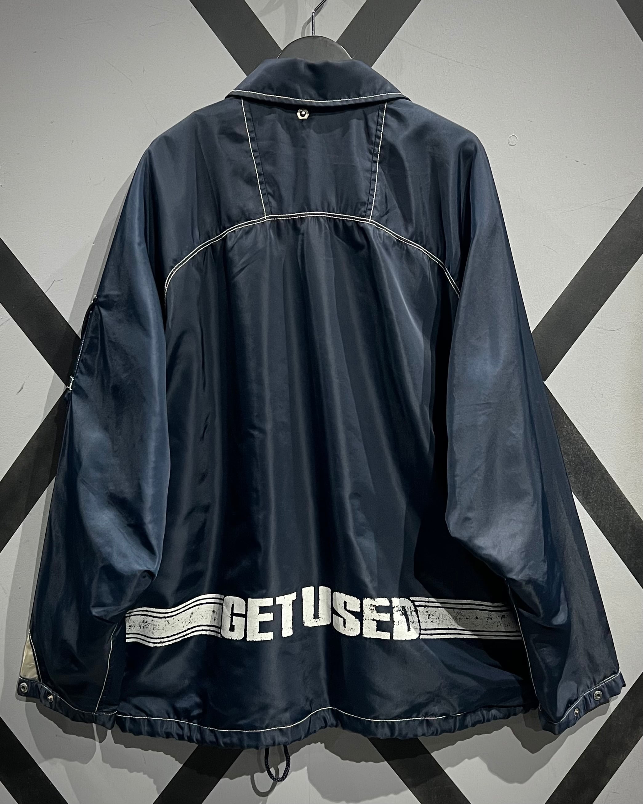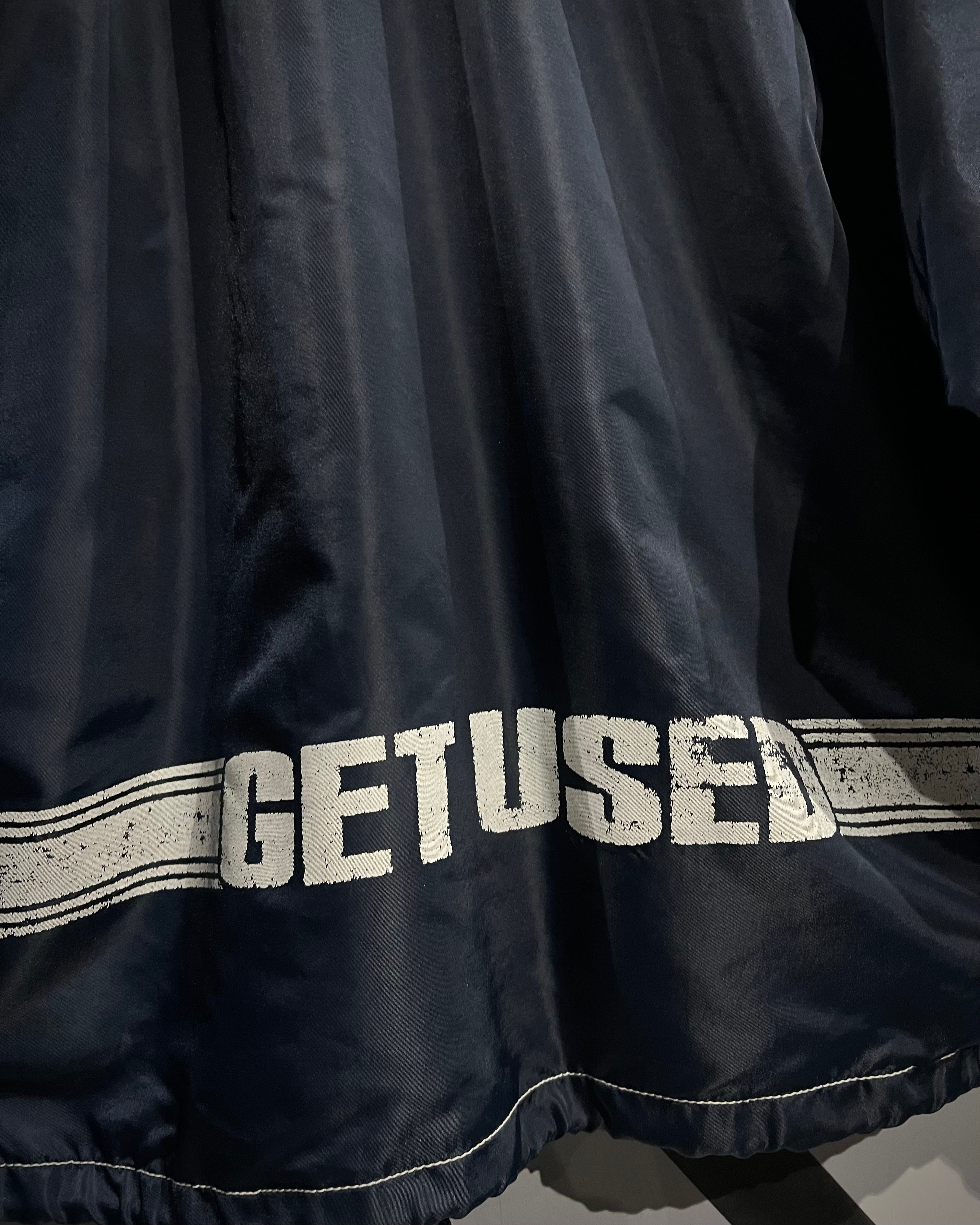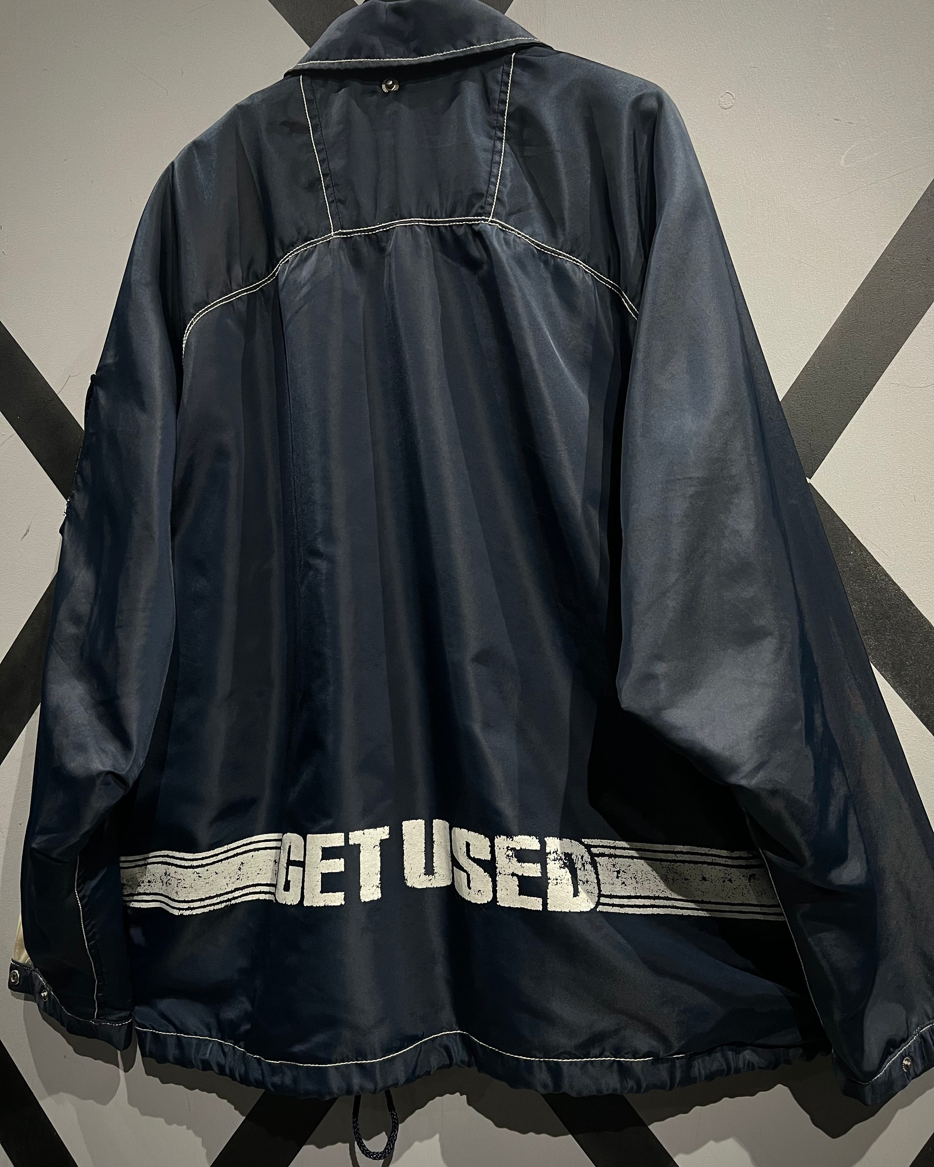 背面には大胆に配置された“GET USED”ロゴプリントが入り、全方位から見てもインパクト抜群。ナイロン特有の軽やかさとハリ感を活かしたルーズなシルエットが、現代的なストリートスタイルにも自然に馴染みます。