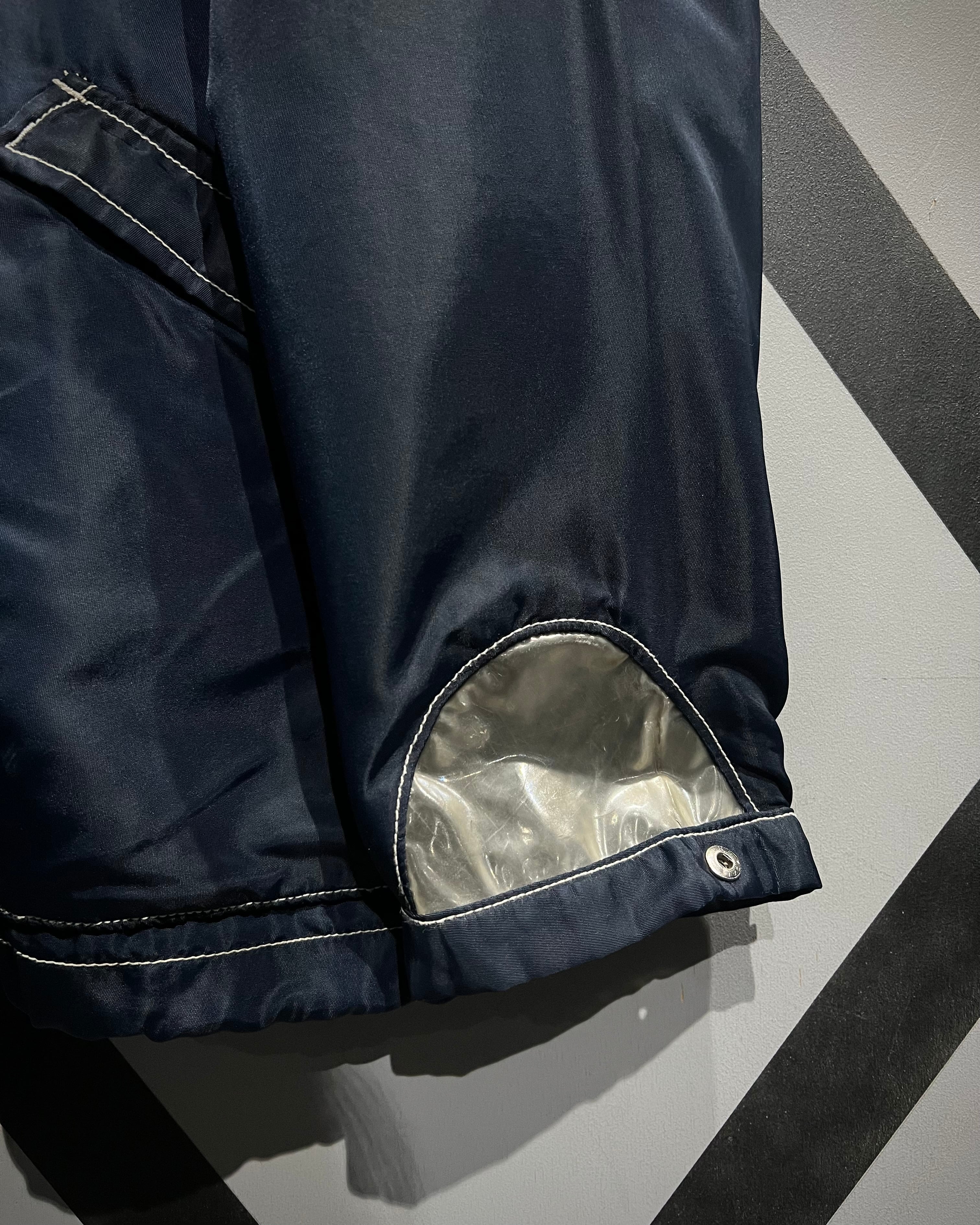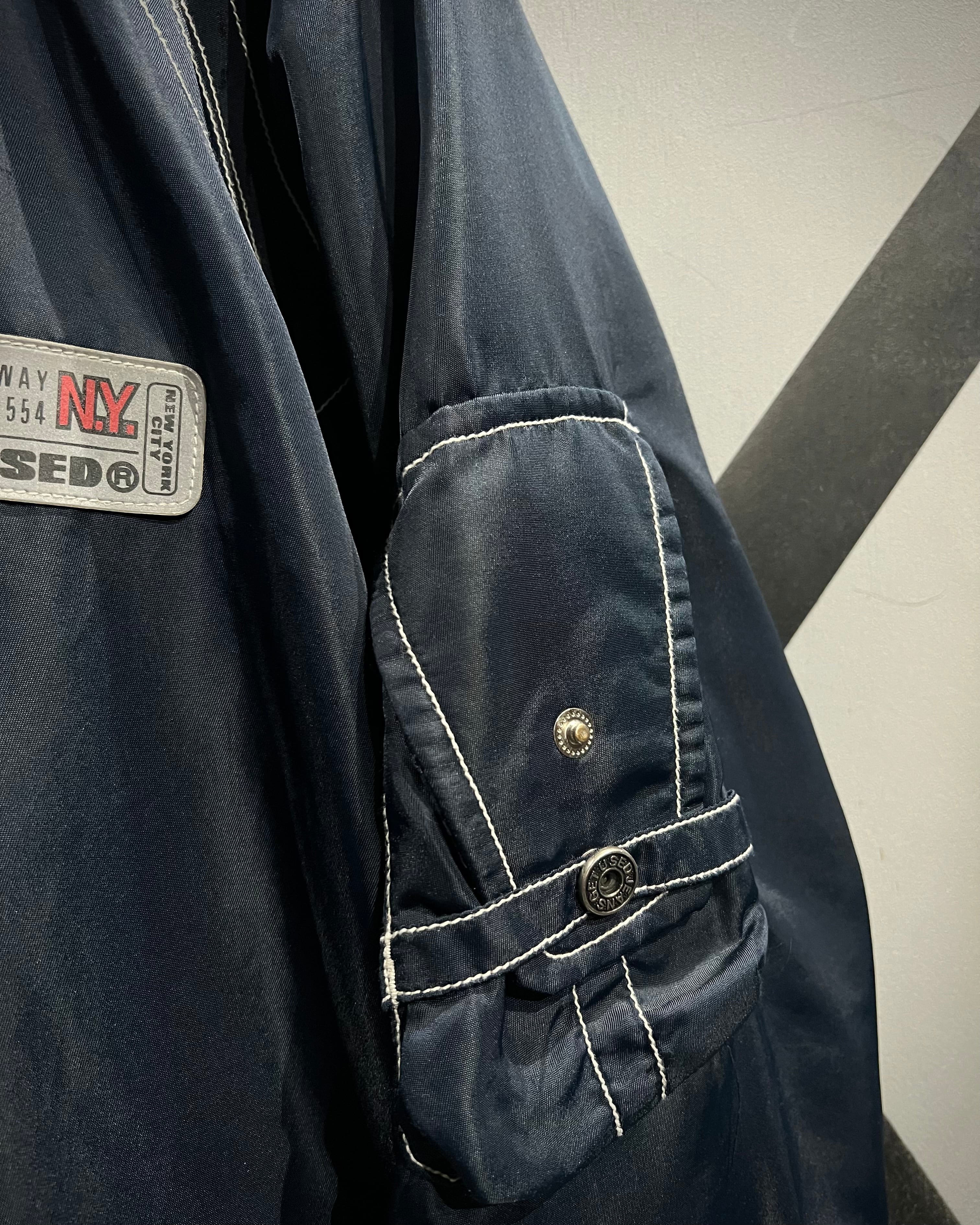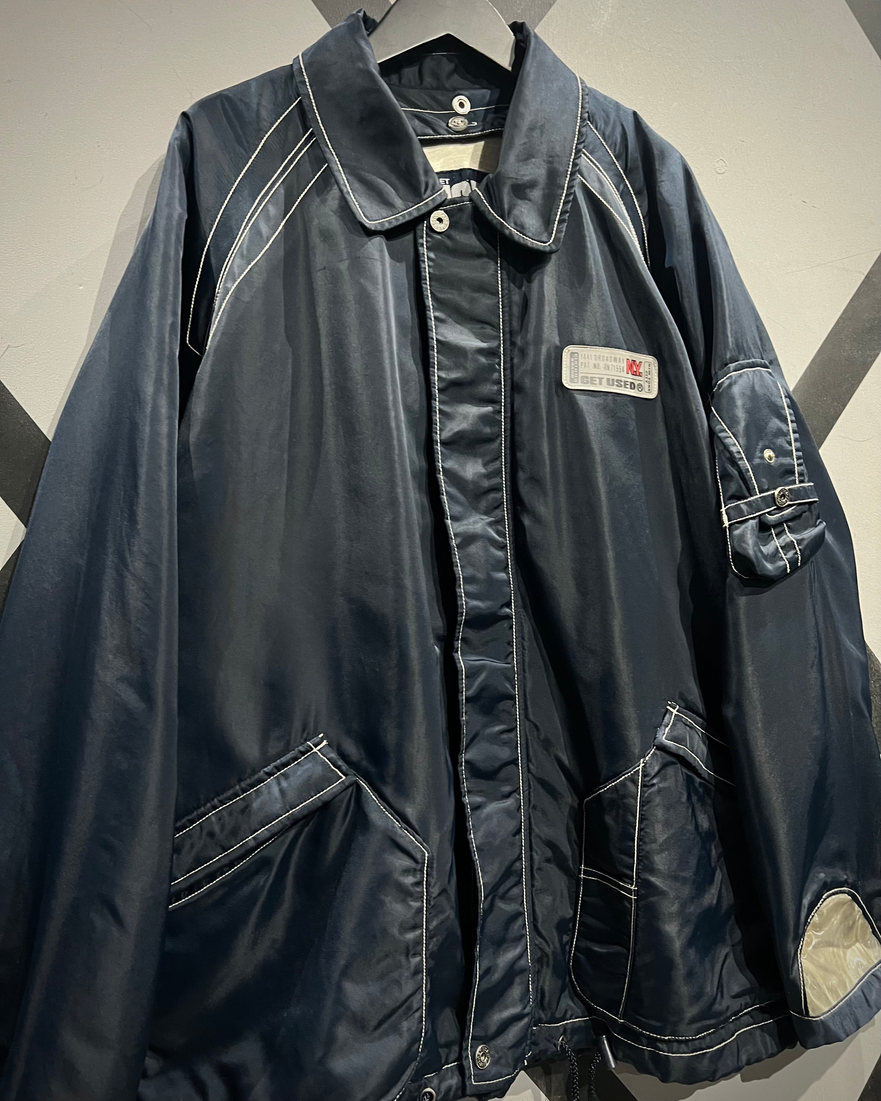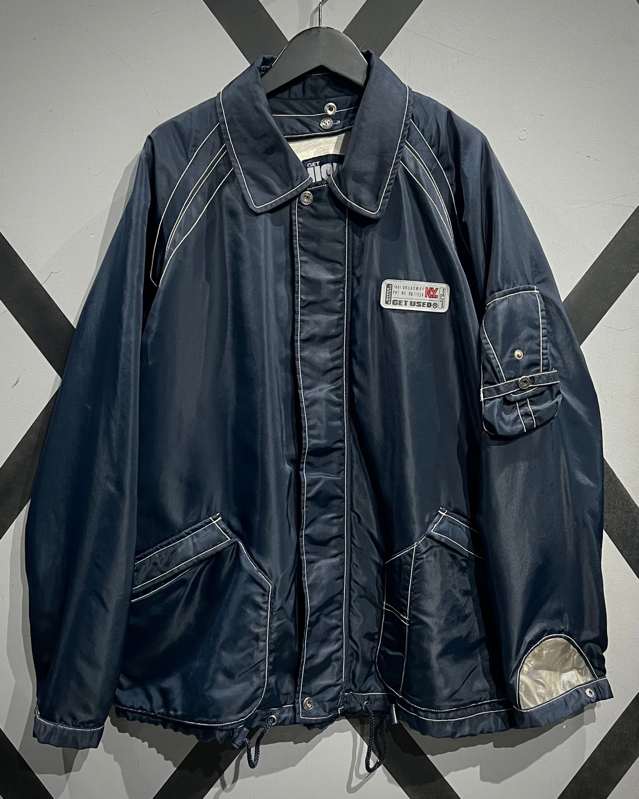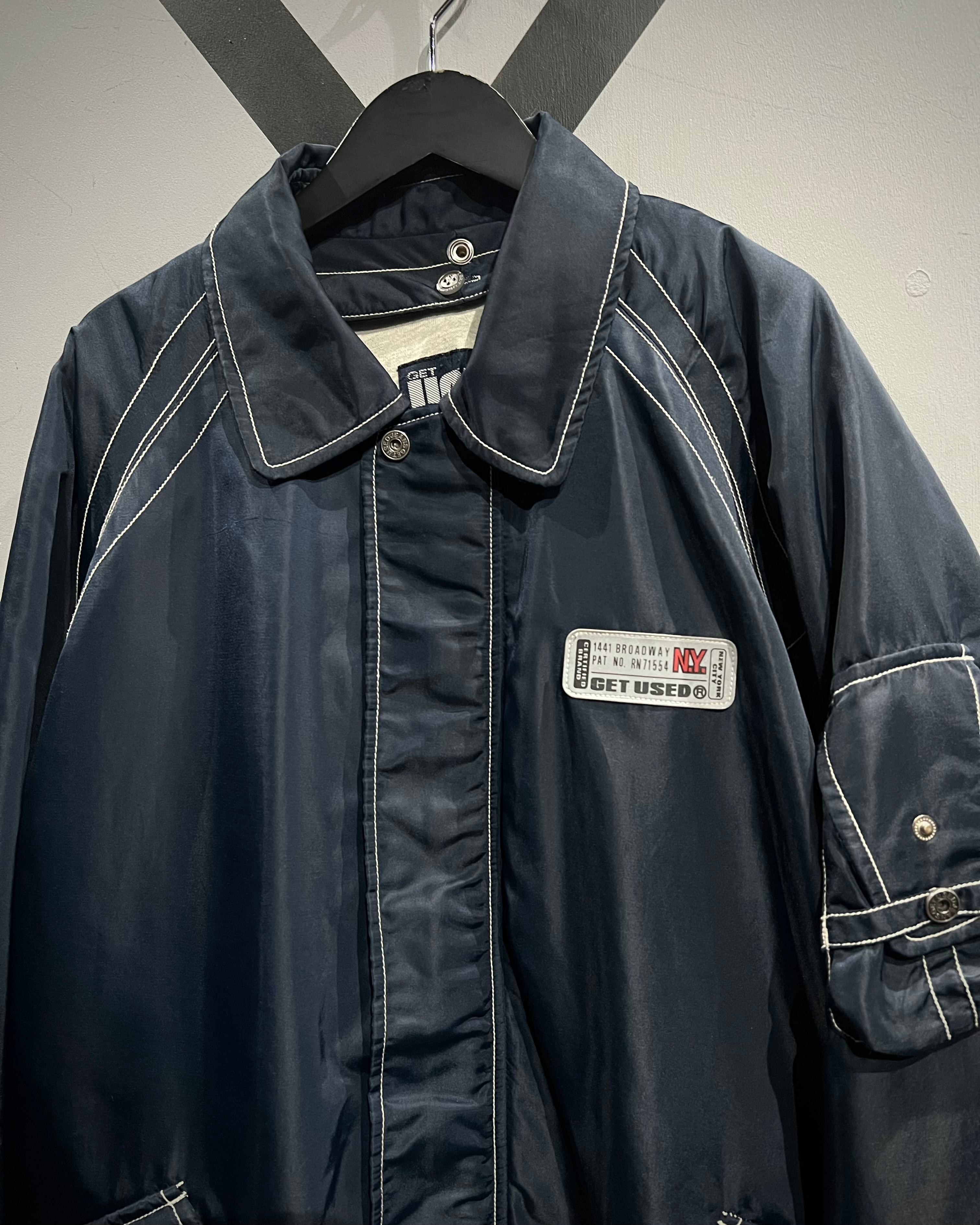 背面には大胆に配置された“GET USED”ロゴプリントが入り、全方位から見てもインパクト抜群。ナイロン特有の軽やかさとハリ感を活かしたルーズなシルエットが、現代的なストリートスタイルにも自然に馴染みます。