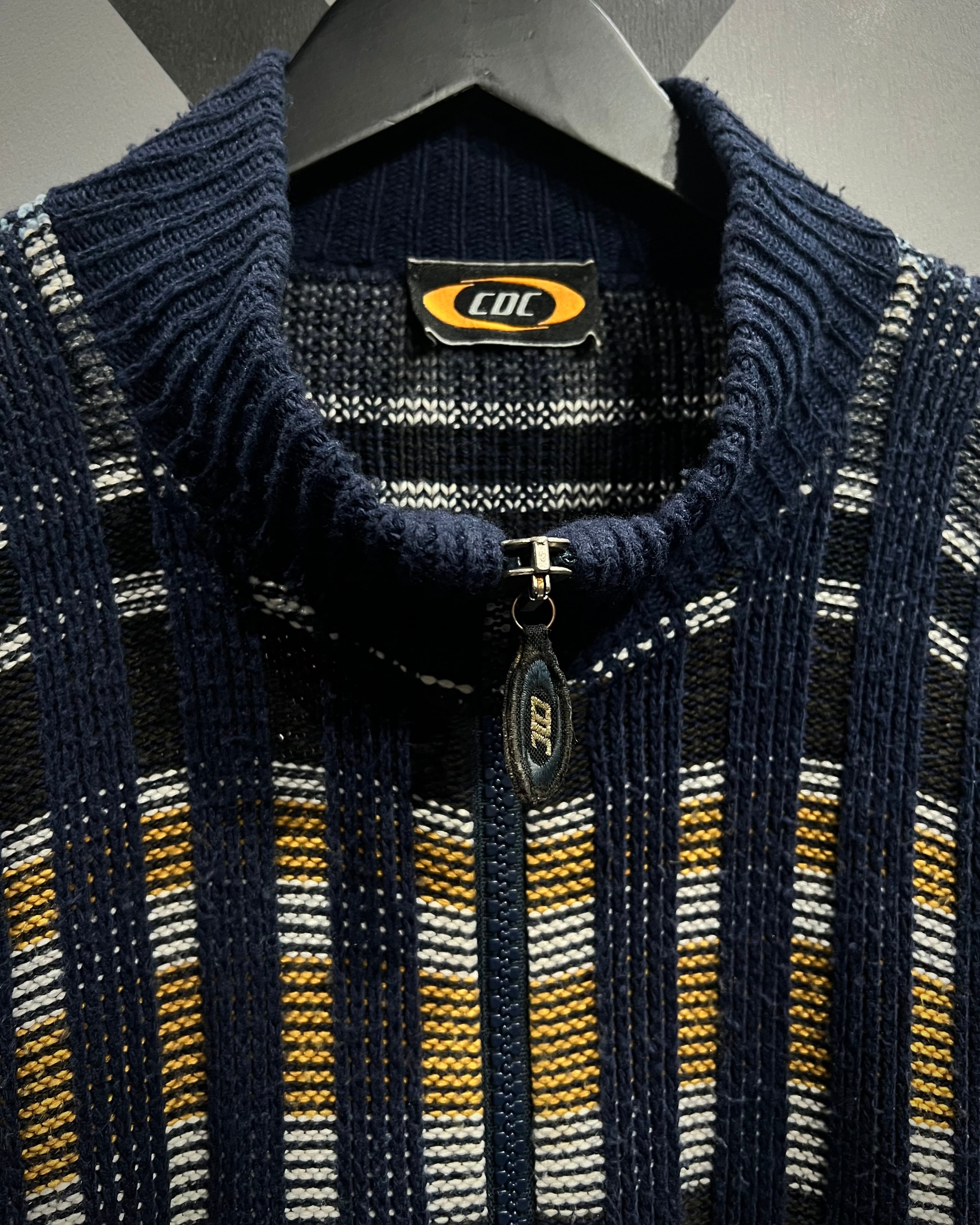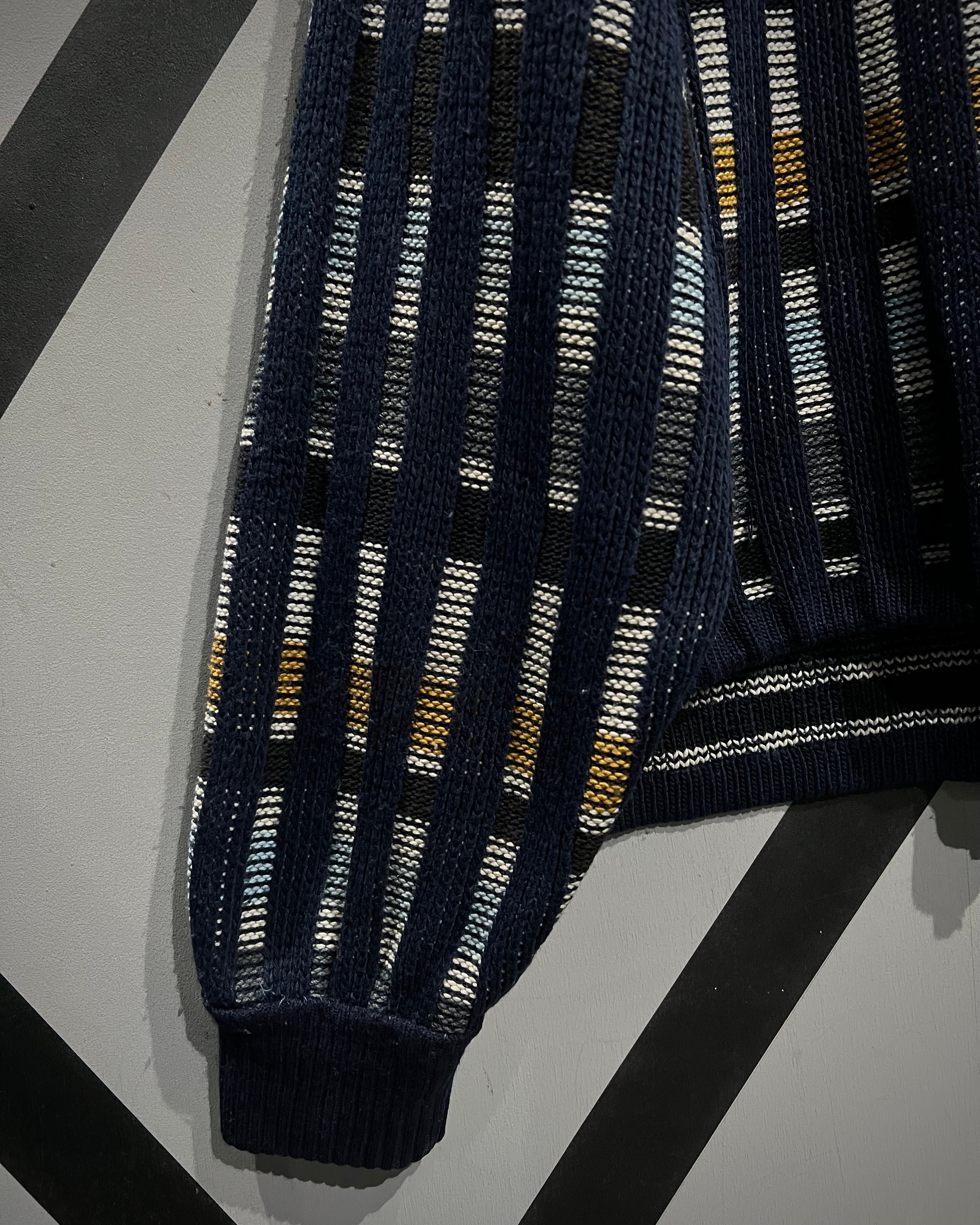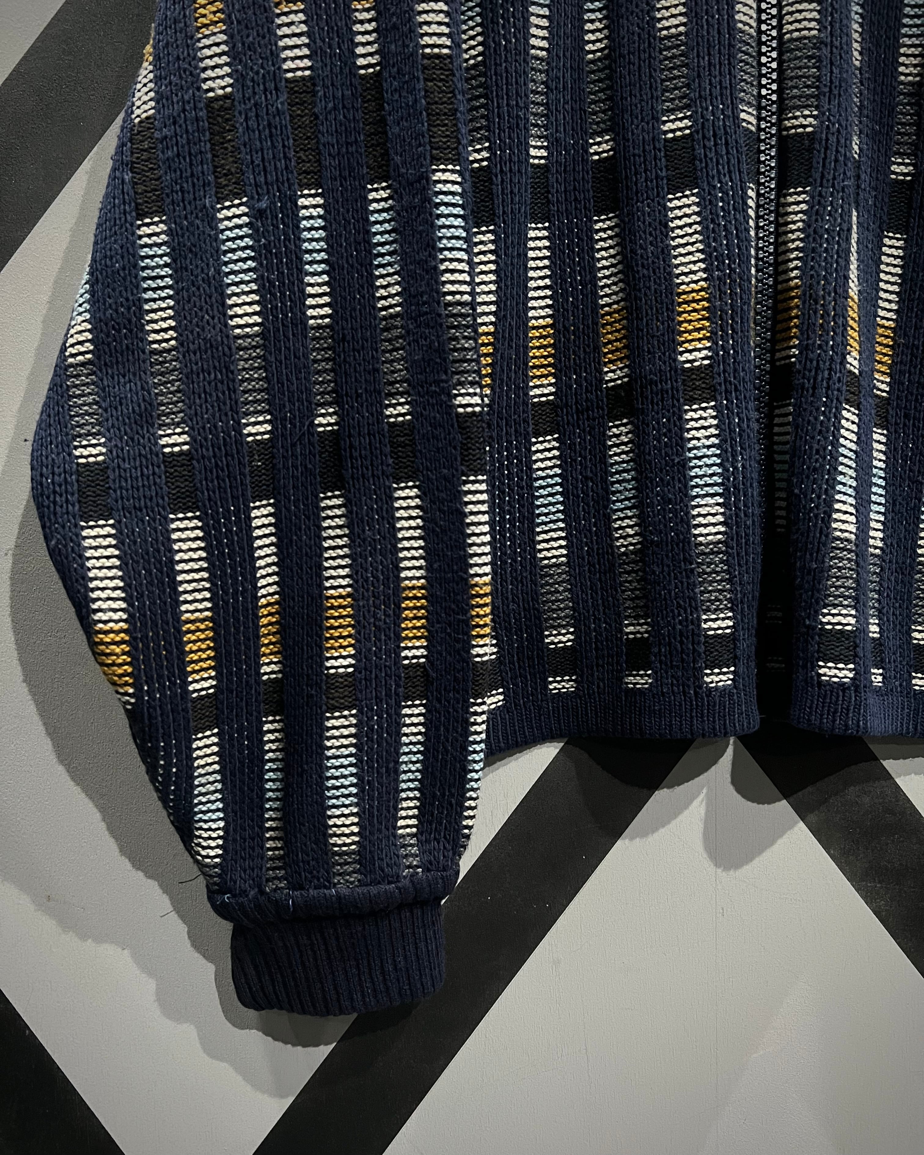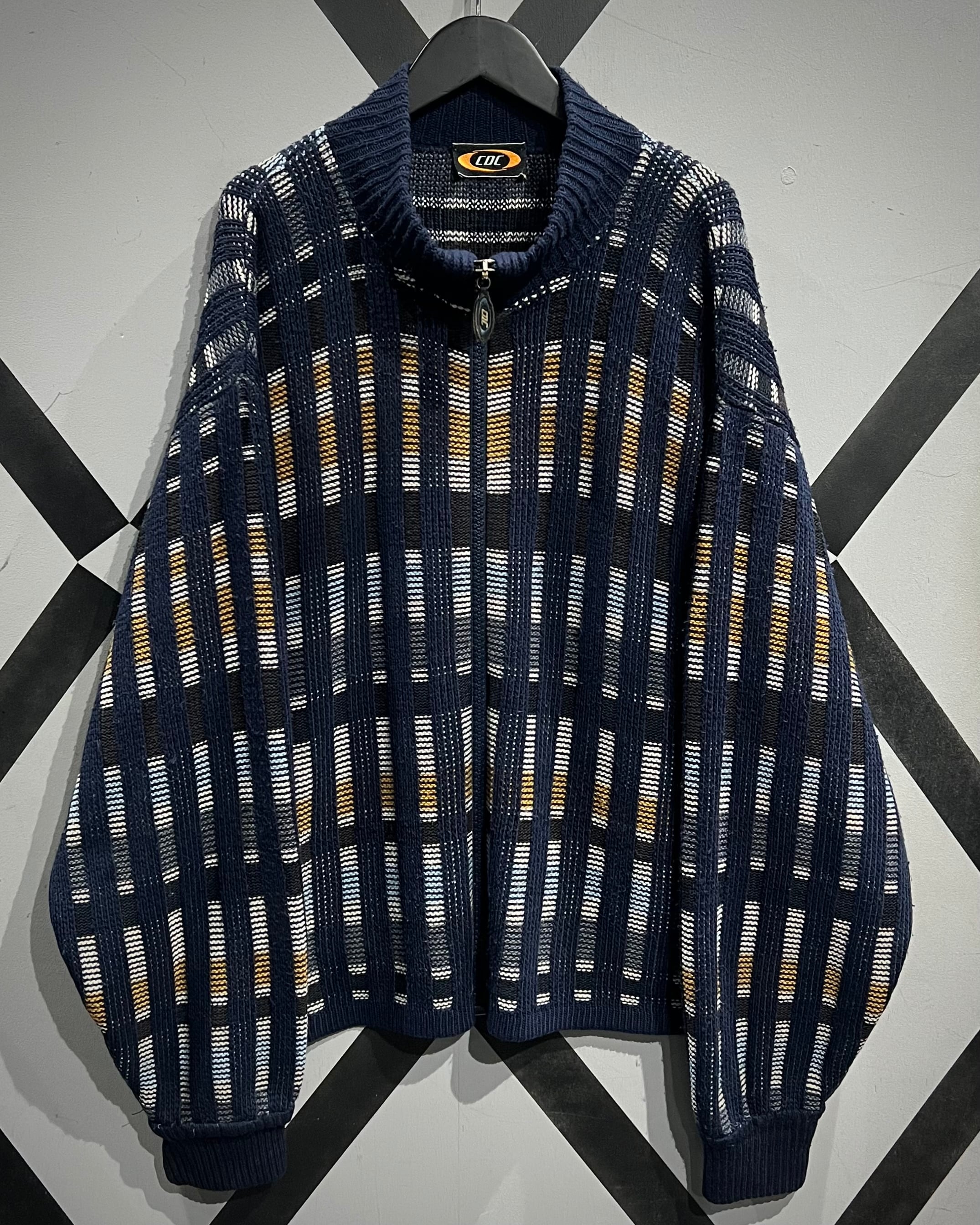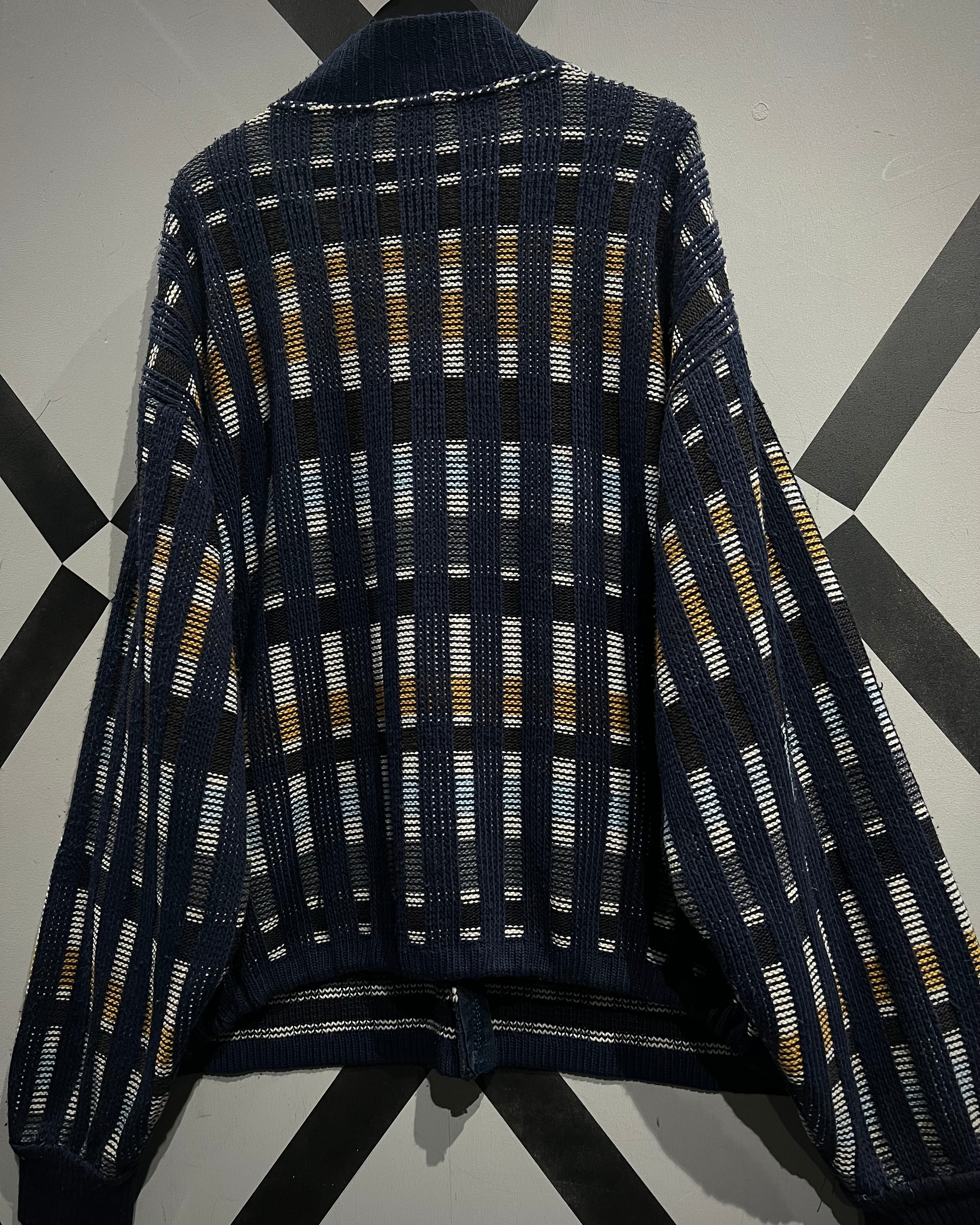 立体感ある編み地と独特のカラーバランスが際立つ、ジップアップ仕様のニットブルゾン。