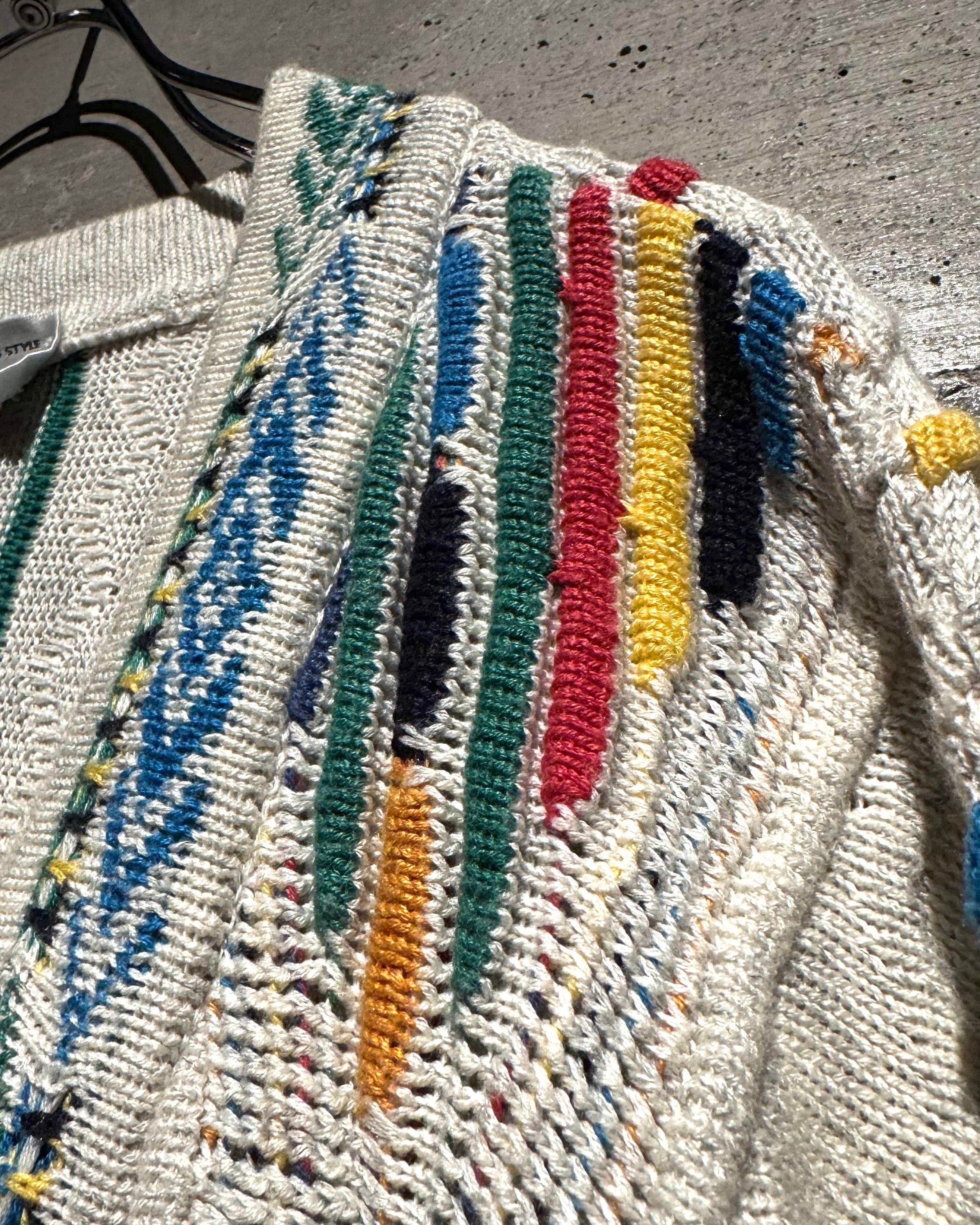 ドイツ発の名門ニットブランド“Carlo Colucci”より、立体的なマルチカラーパターンが際立つ3Dニットカーディガン。