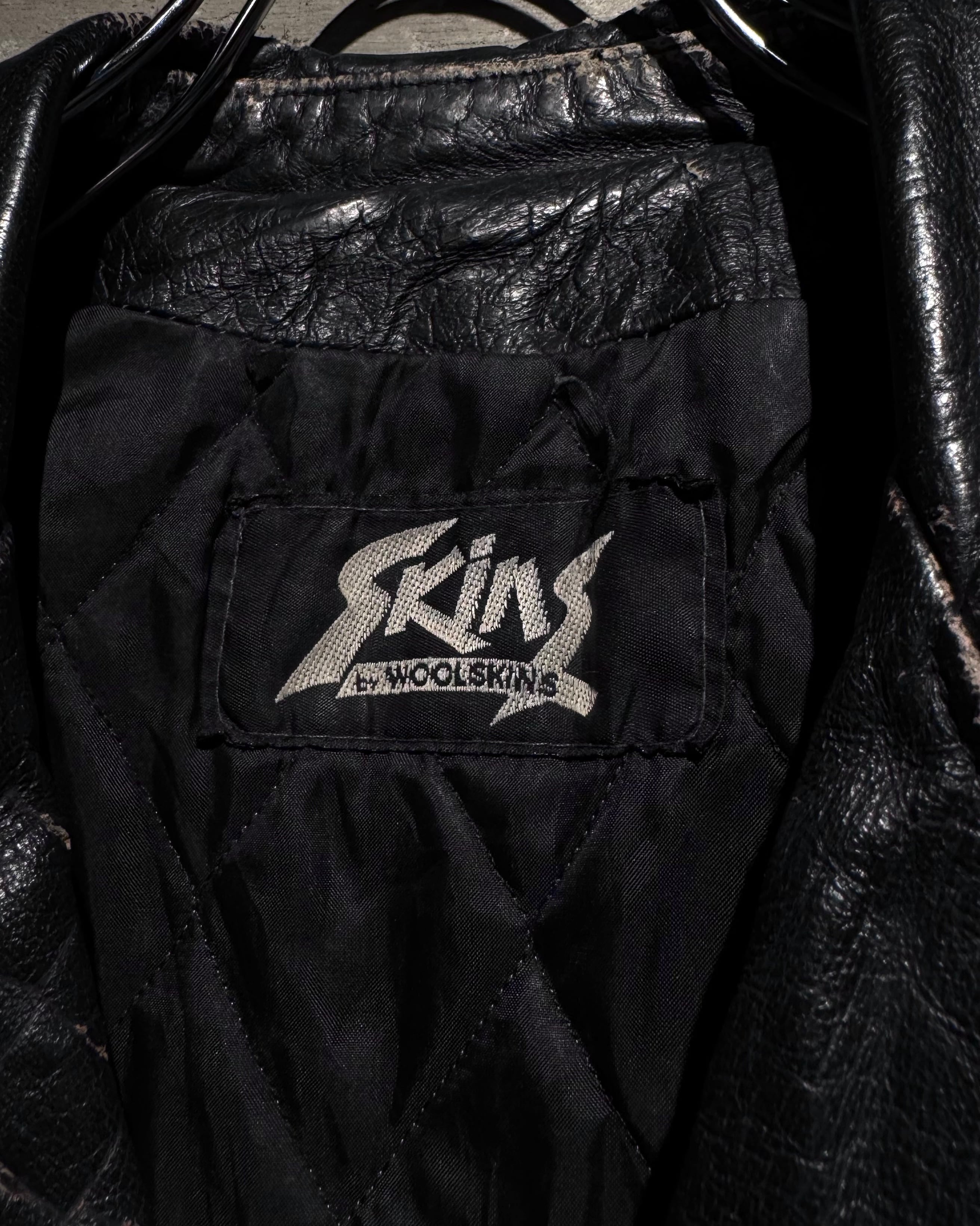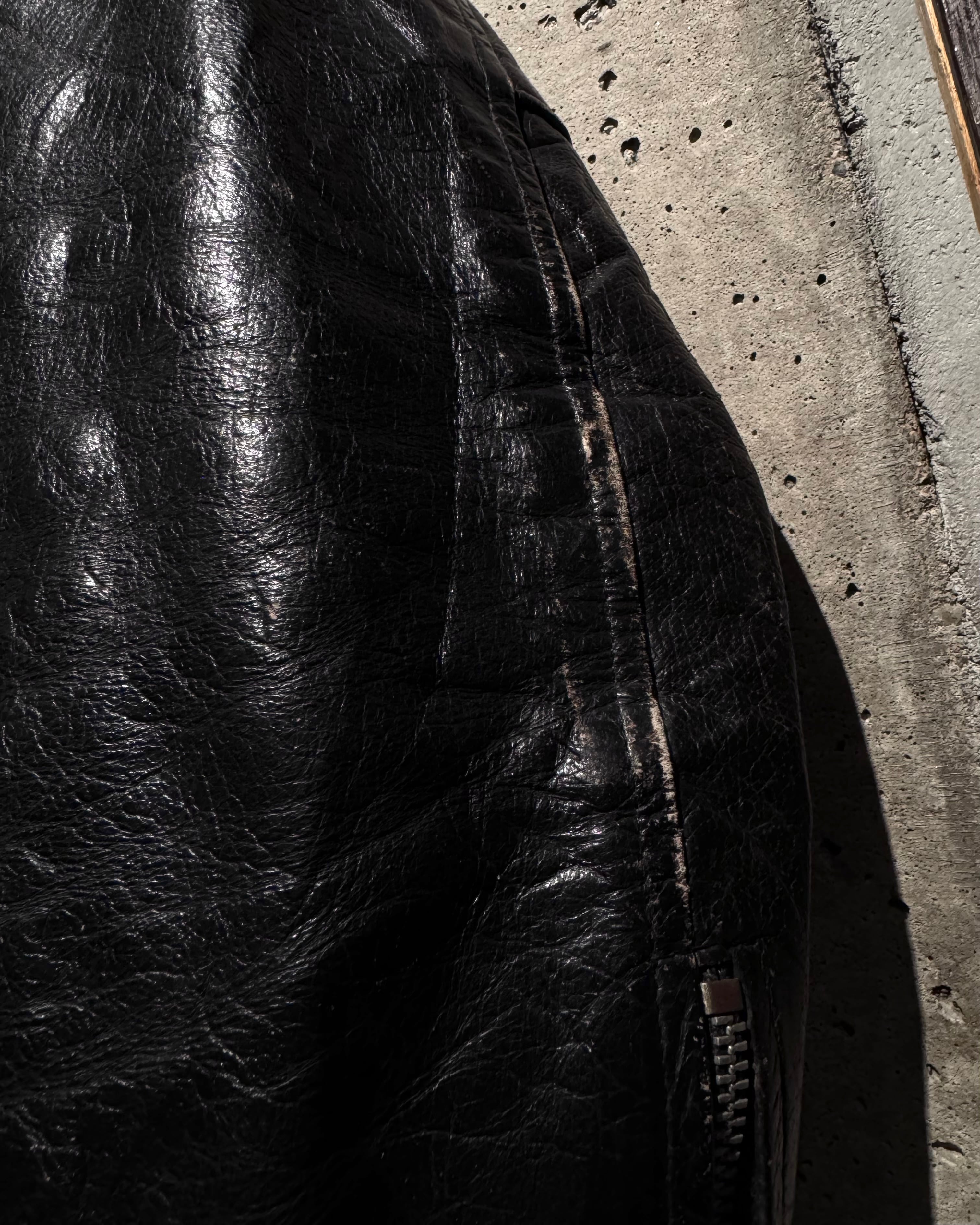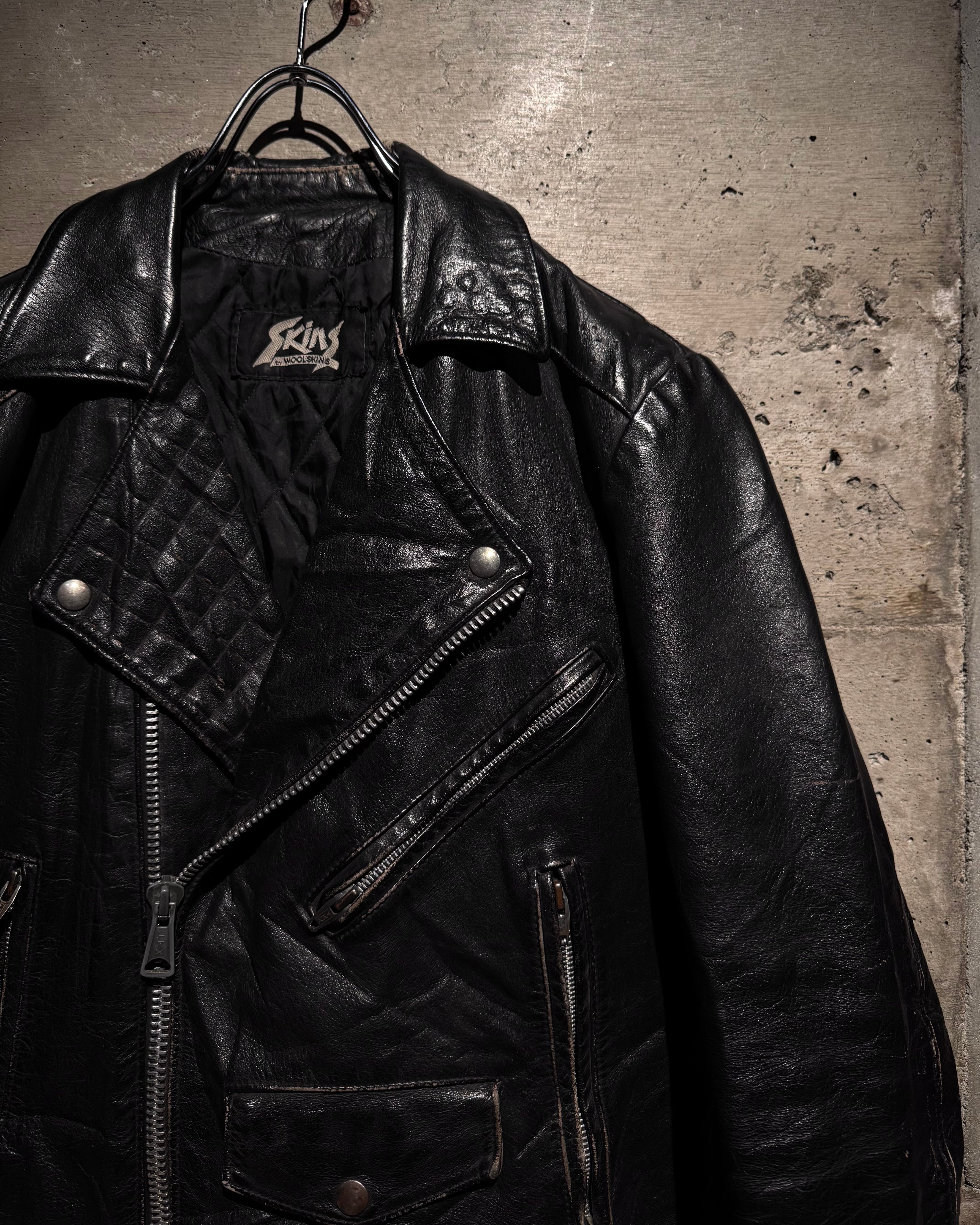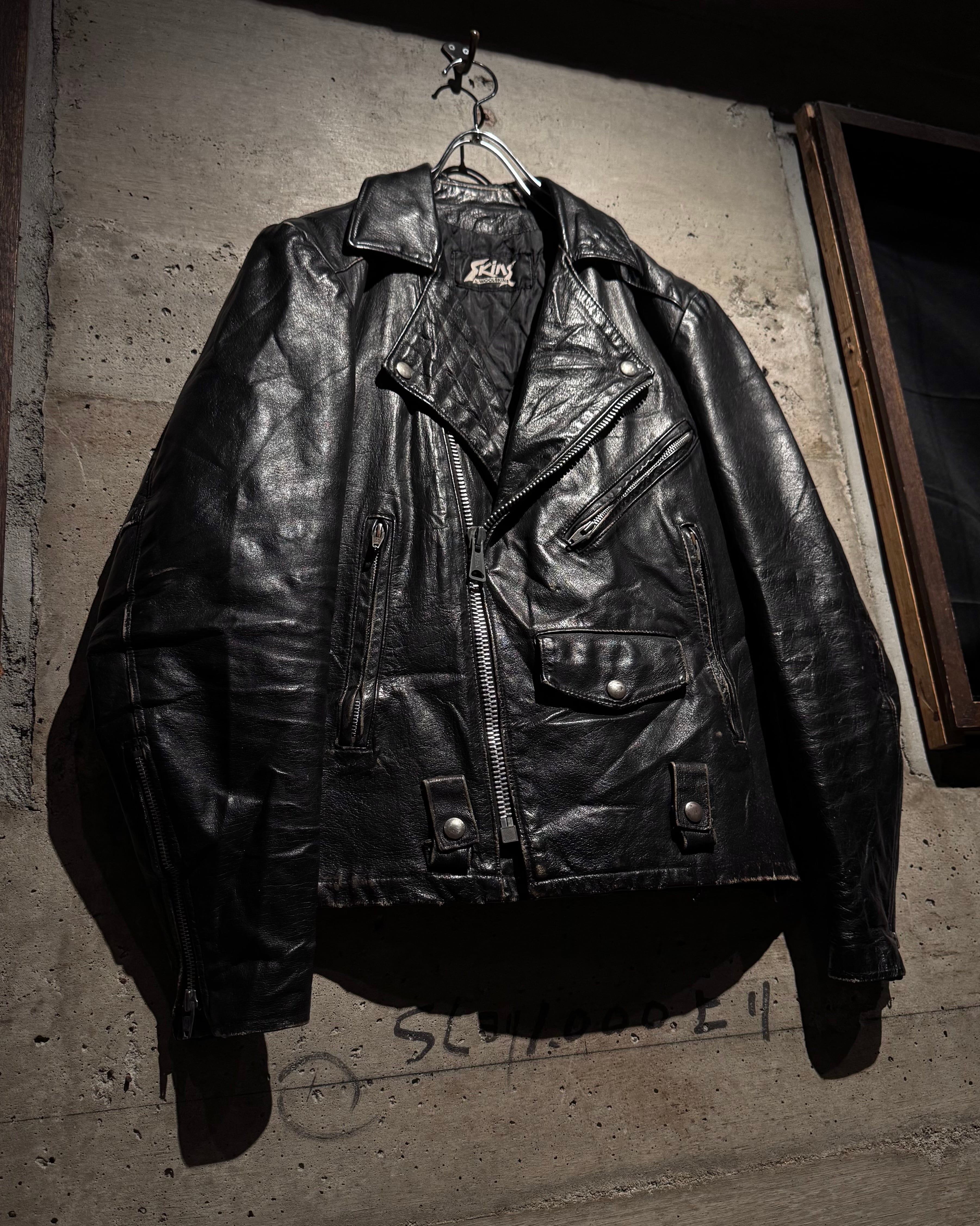 ハリのあるブラックレザーをボディに使用し、背面に当時のオーナーによって描かれたペイント跡が残った、バックカルチャーをヒシヒシと感じさせるユーロヴィンテージのダブルライダースジャケット。