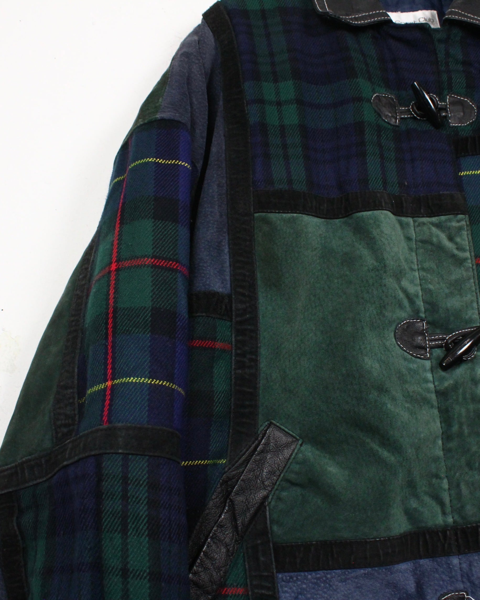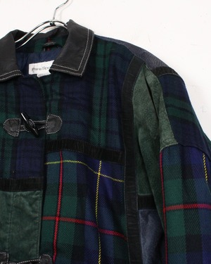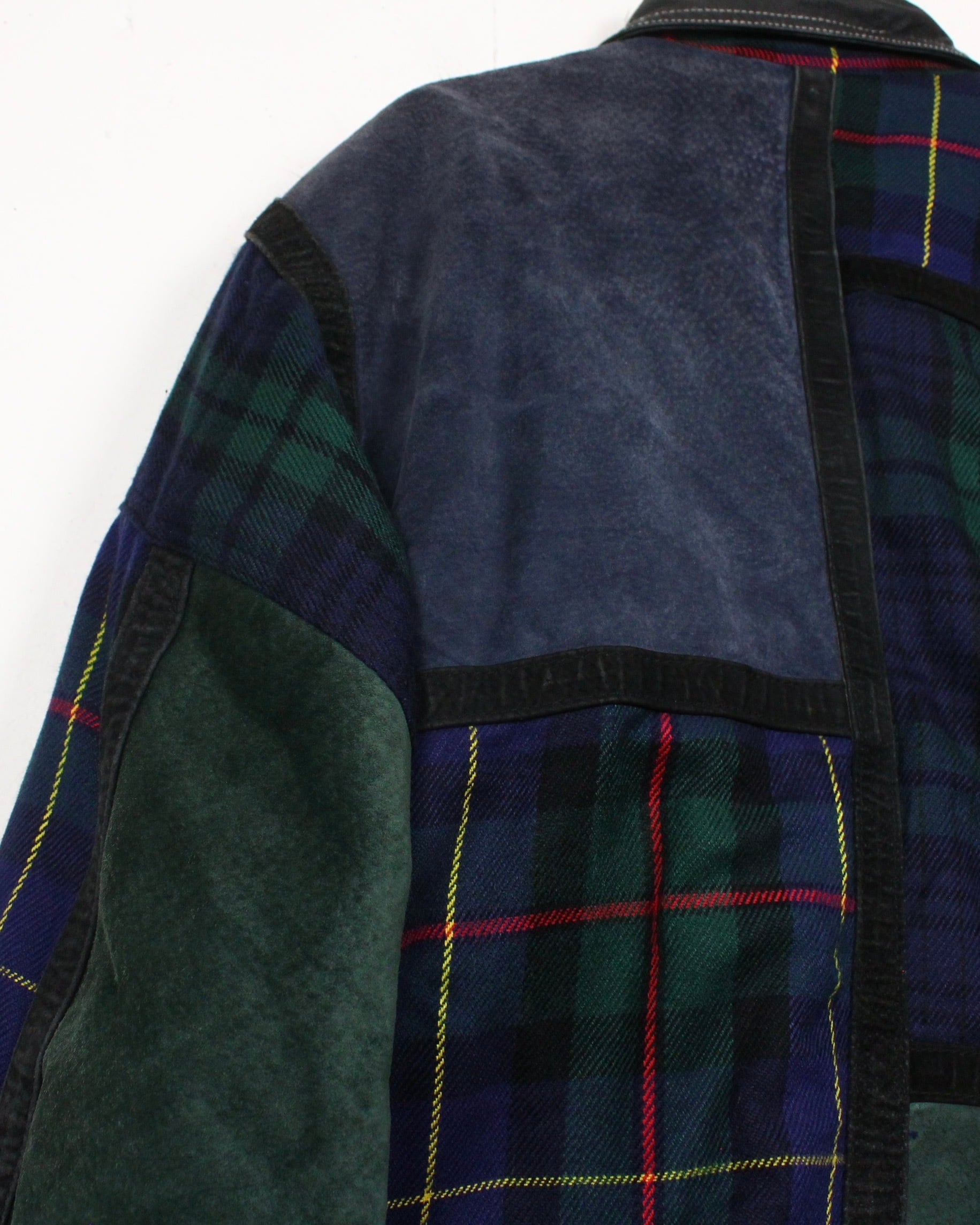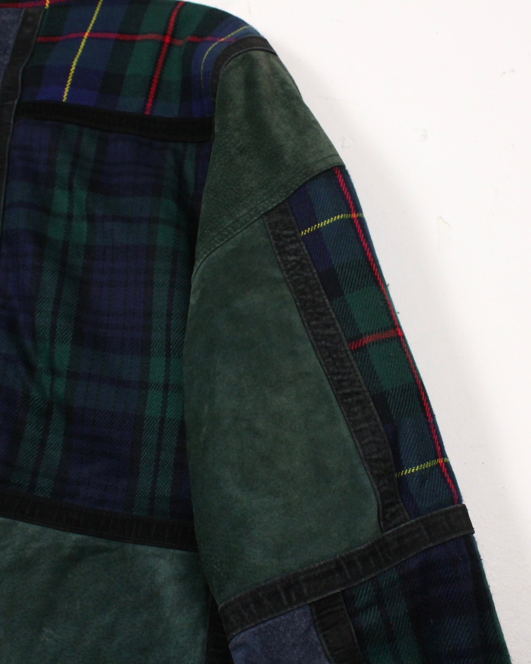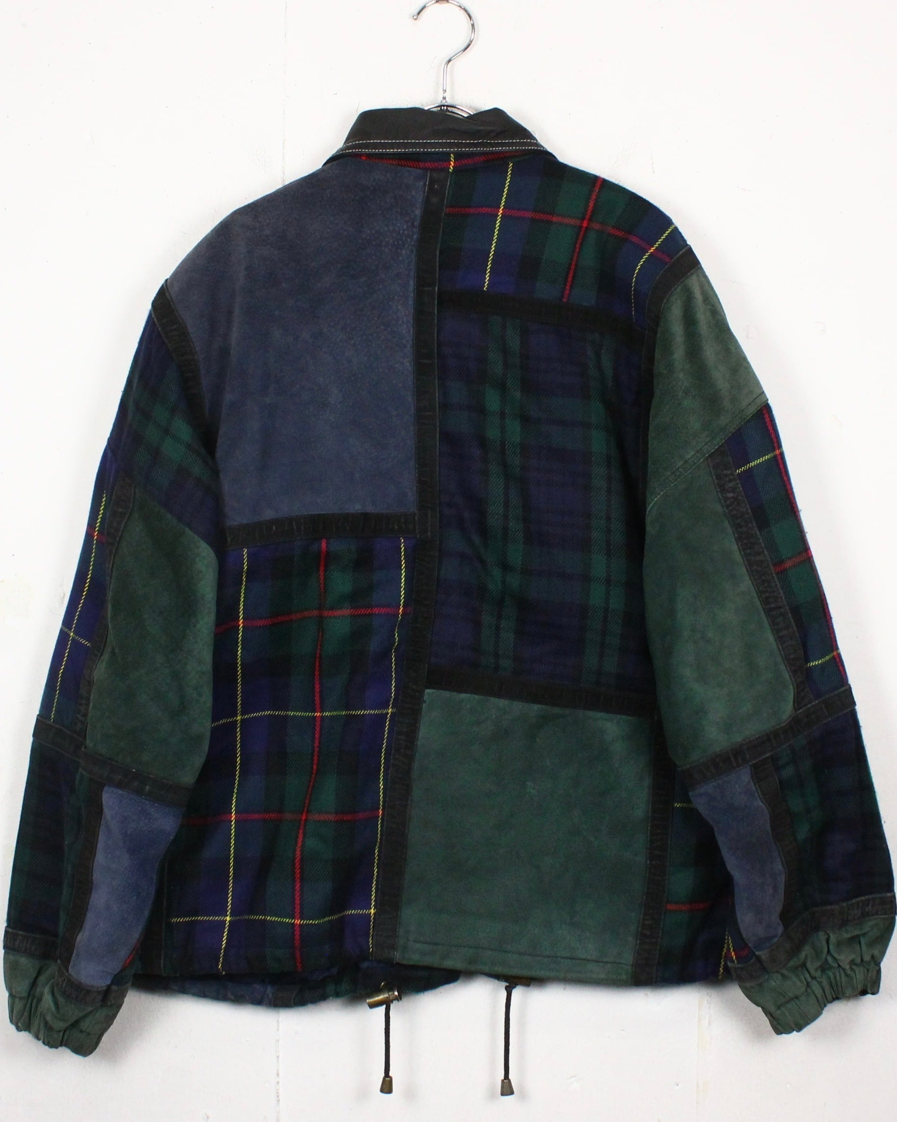 ベースには、ブラックウォッチをはじめとしたタータンチェックのウール生地と、深みあるグリーン&ネイビーのスエードレザーを大胆に組み合わせた1着。
