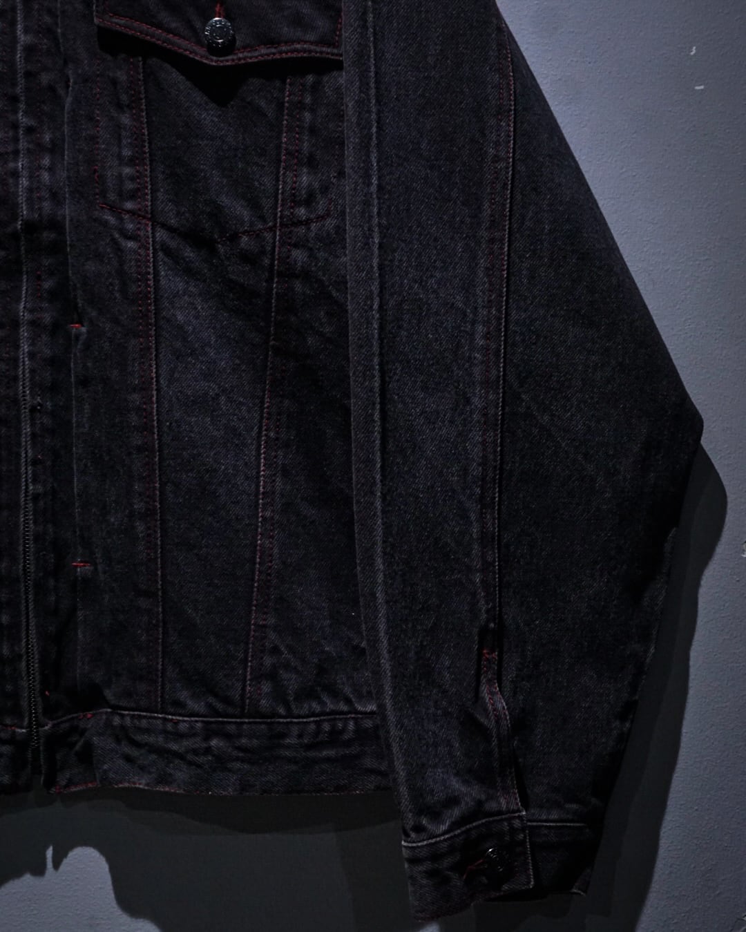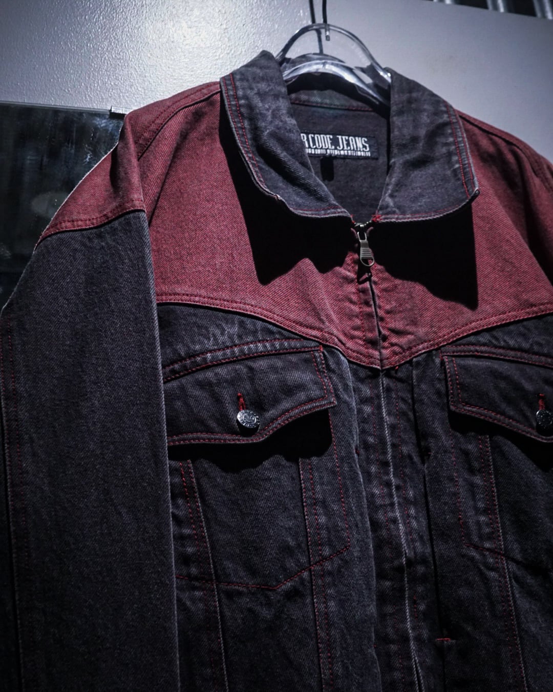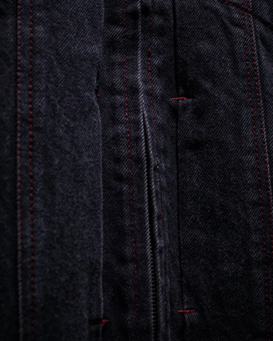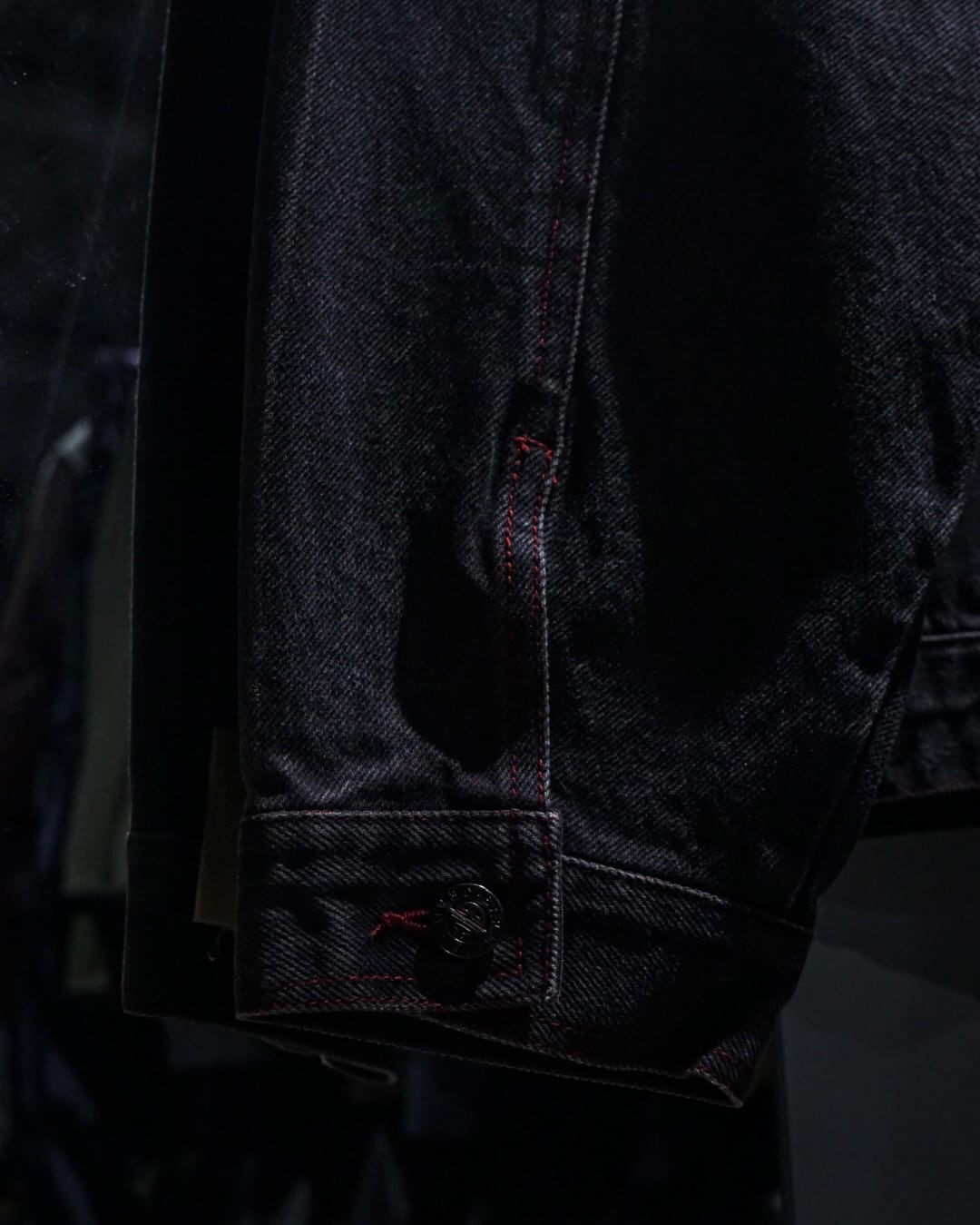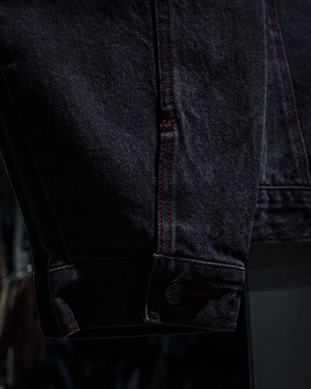ヴィンテージデニムの中でも特に稀少価値の高い、赤みを帯びたブラックデニムを採用した1着。