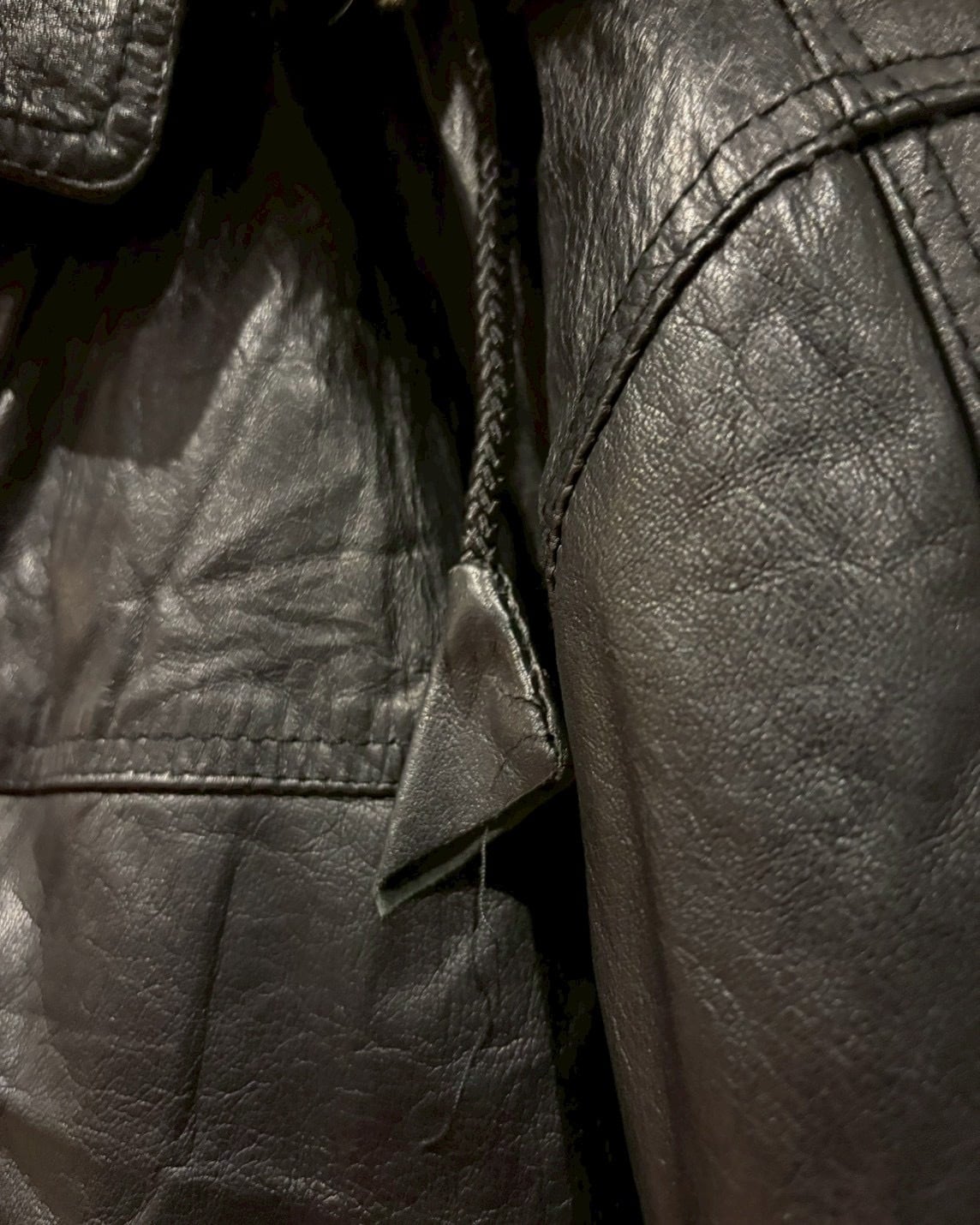 全体を包み込むような重厚なブラックレザーは、鈍い光沢と柔らかい質感を兼ね備え、着込むほどに風合いを深める極上の素材感。見た目に反して着心地も軽めで、肩の力を抜いてラフにお楽しみいただけます。