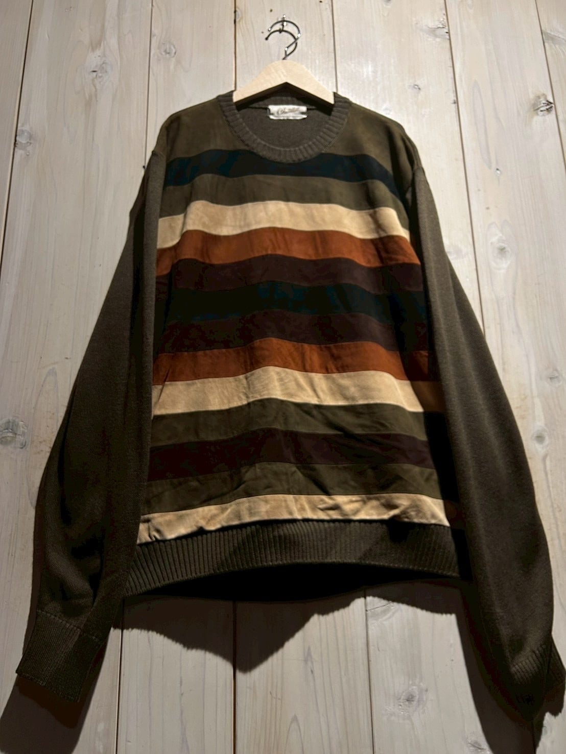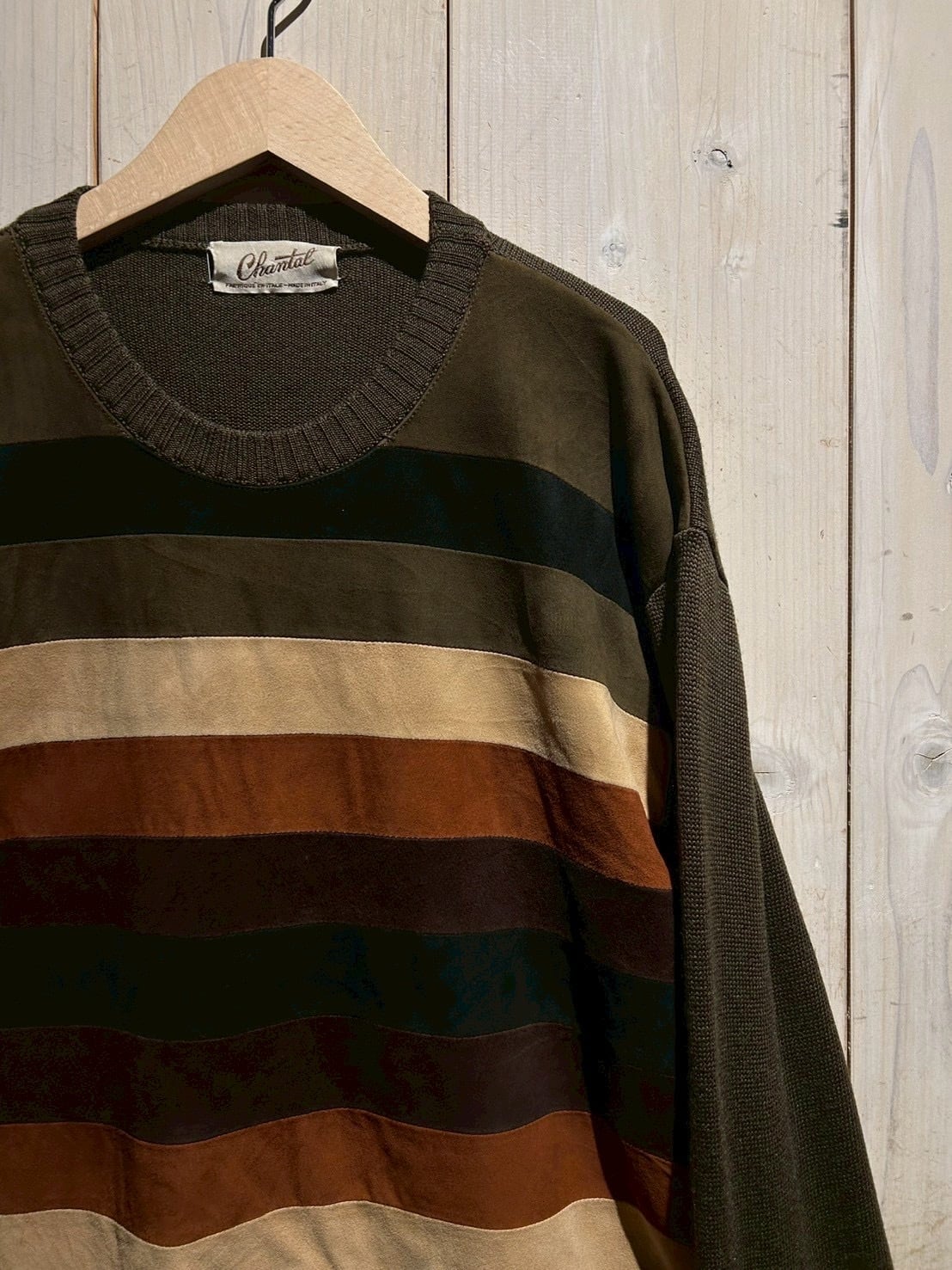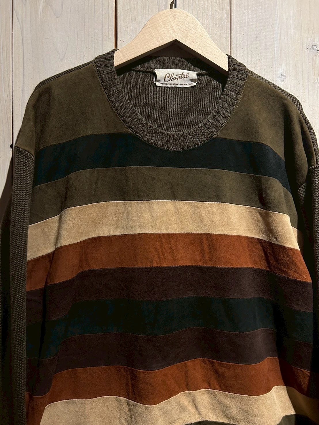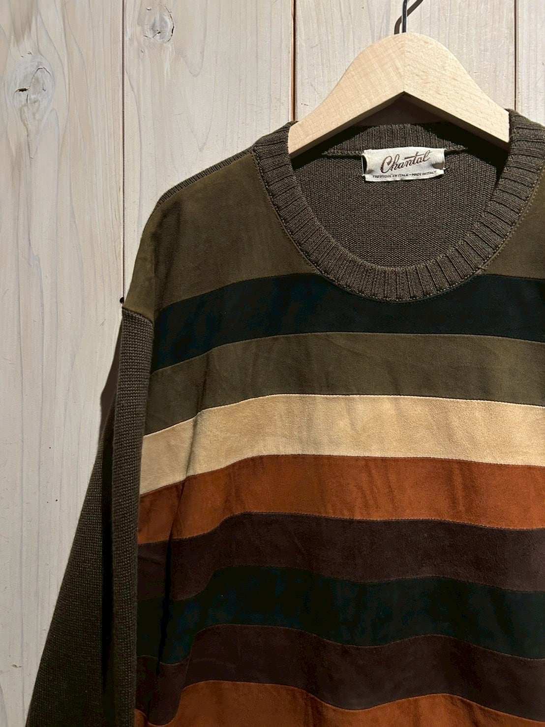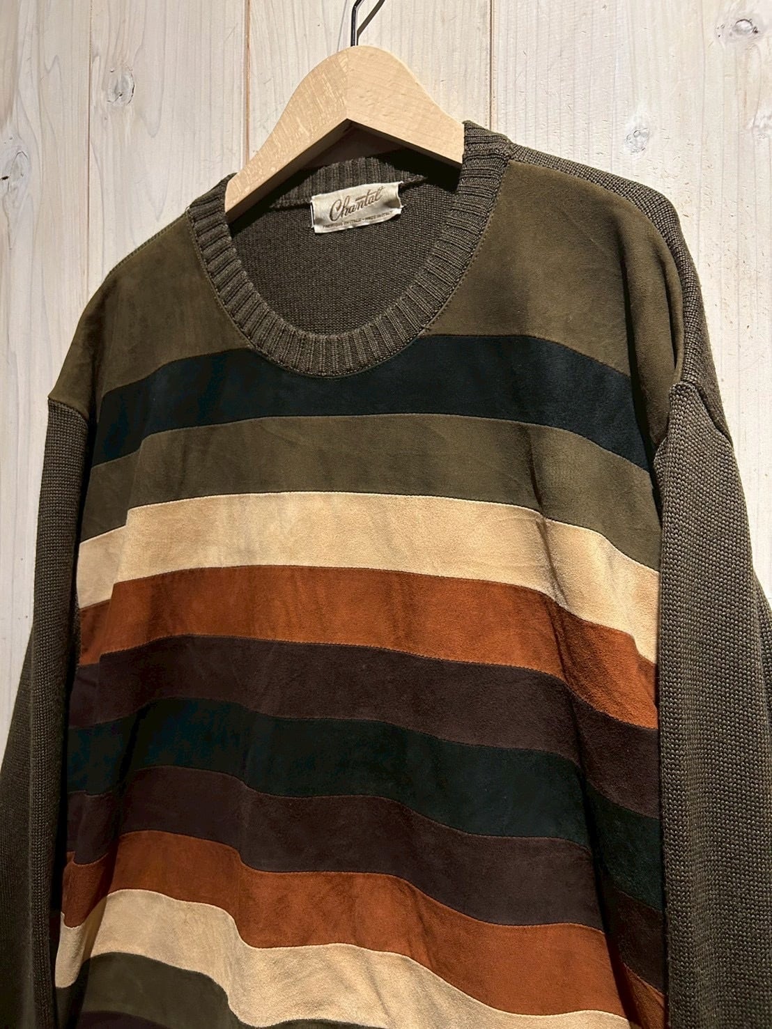 ニットボディに、フロントにスエードレザーを贅沢に切り替えたプルオーバーニット。
