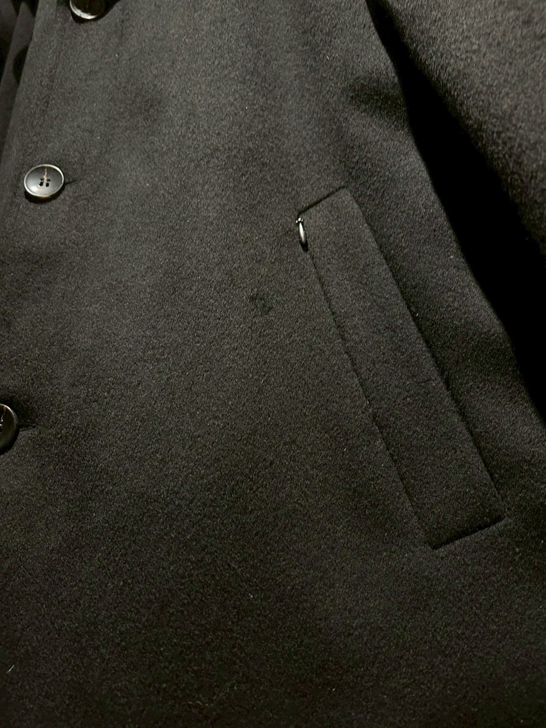 重厚なウールジャケットをベースに、内側にはジップアップブルゾンをレイヤードしたようなデザインを採用。クラシカルなジャケットの上品さにエッジの効いたエッセンスが見事に調和しています。
