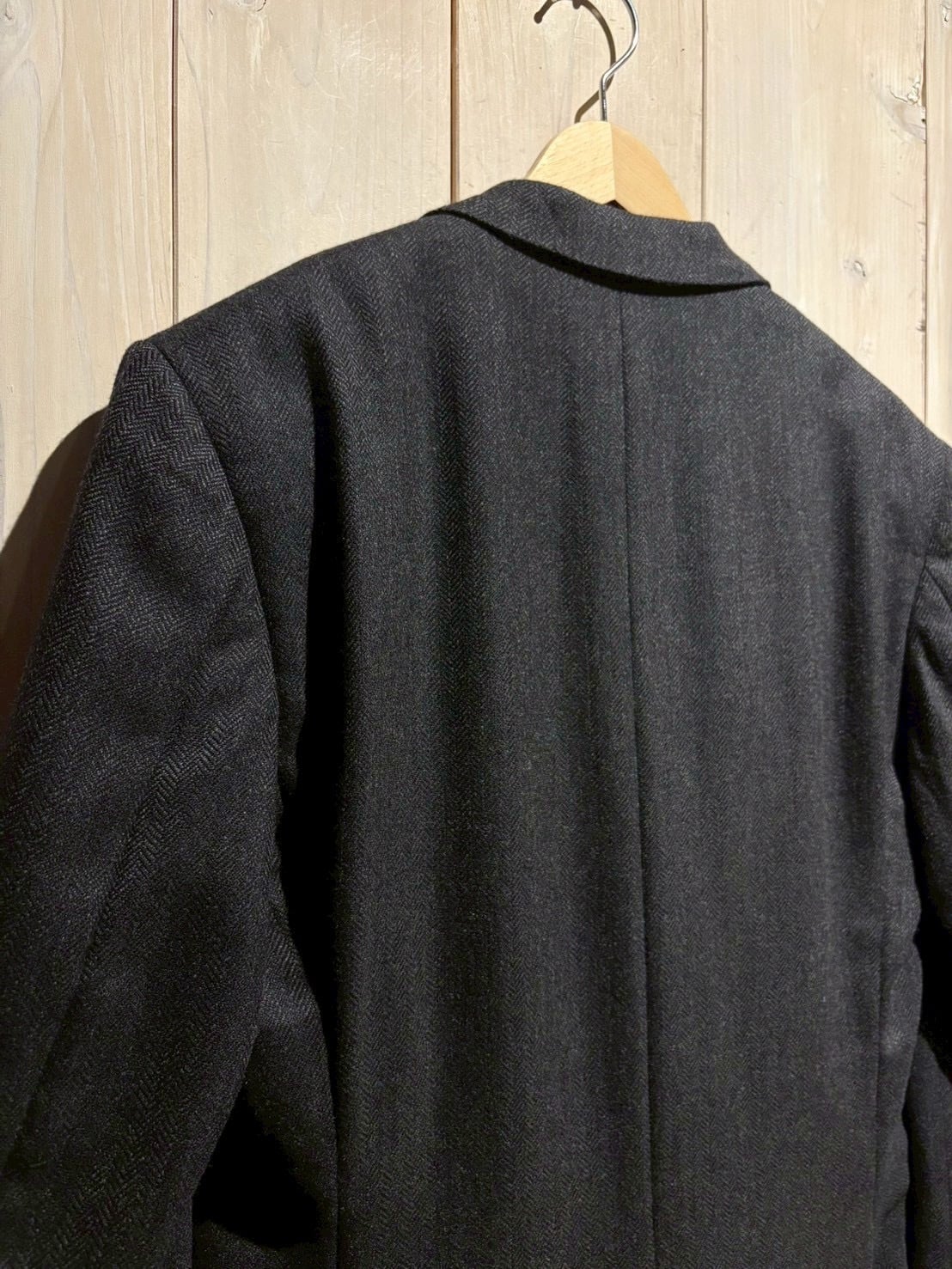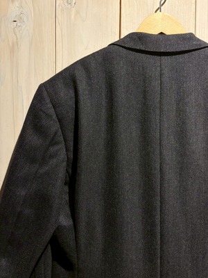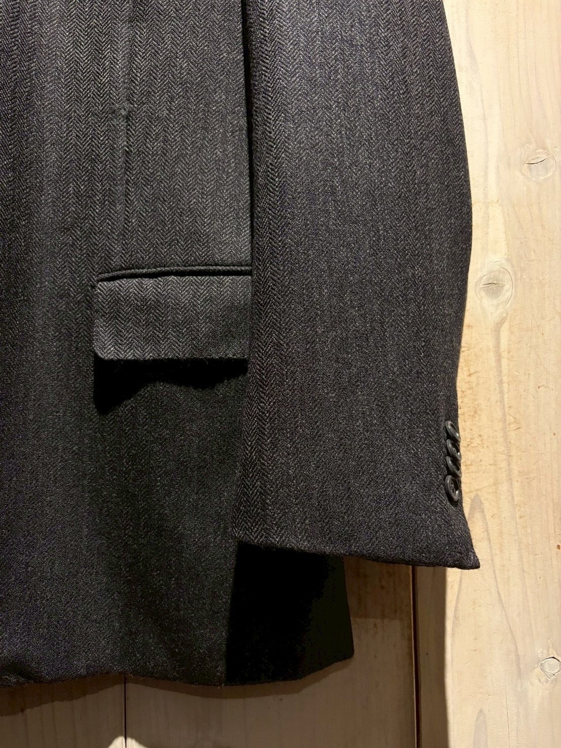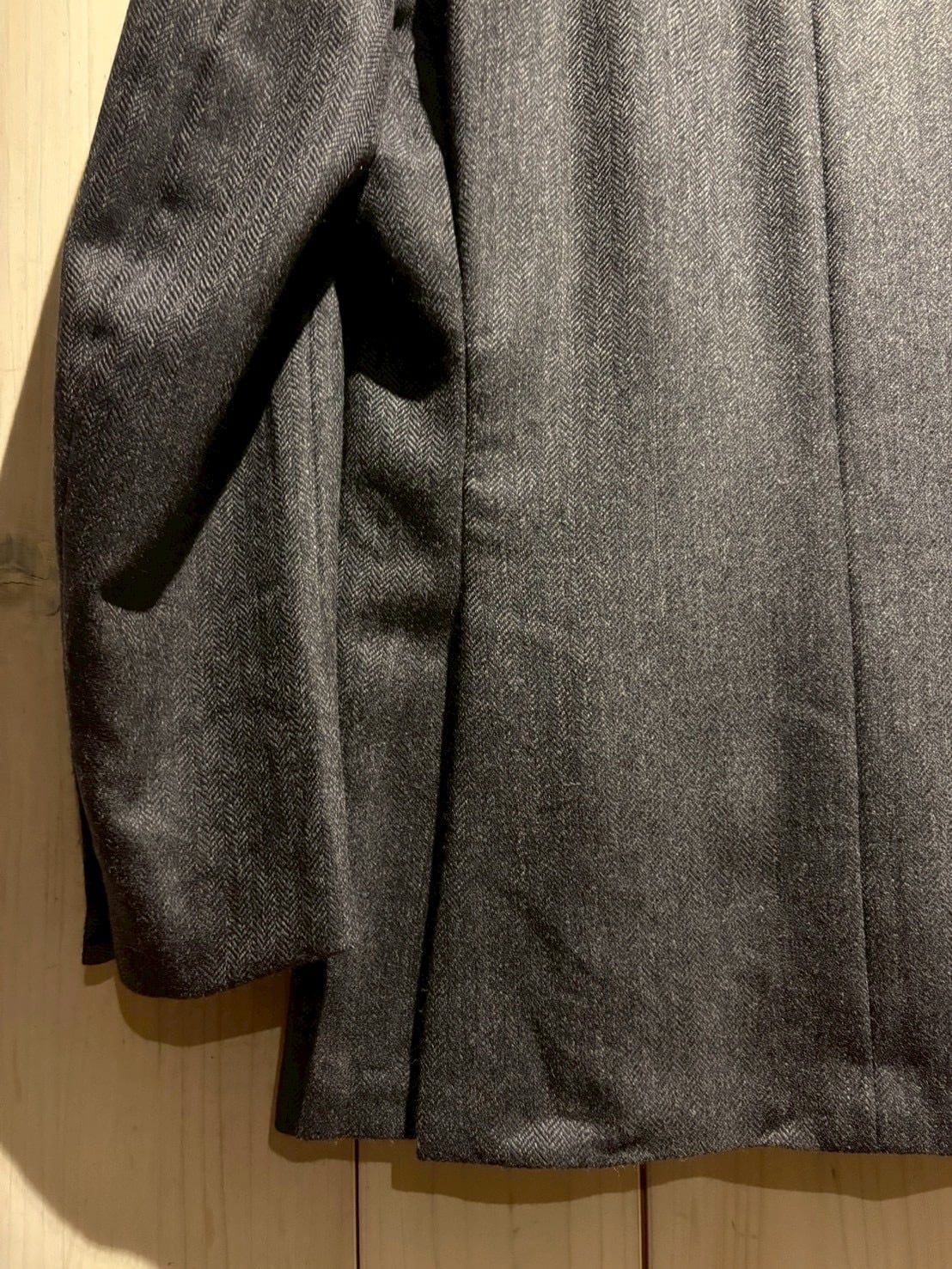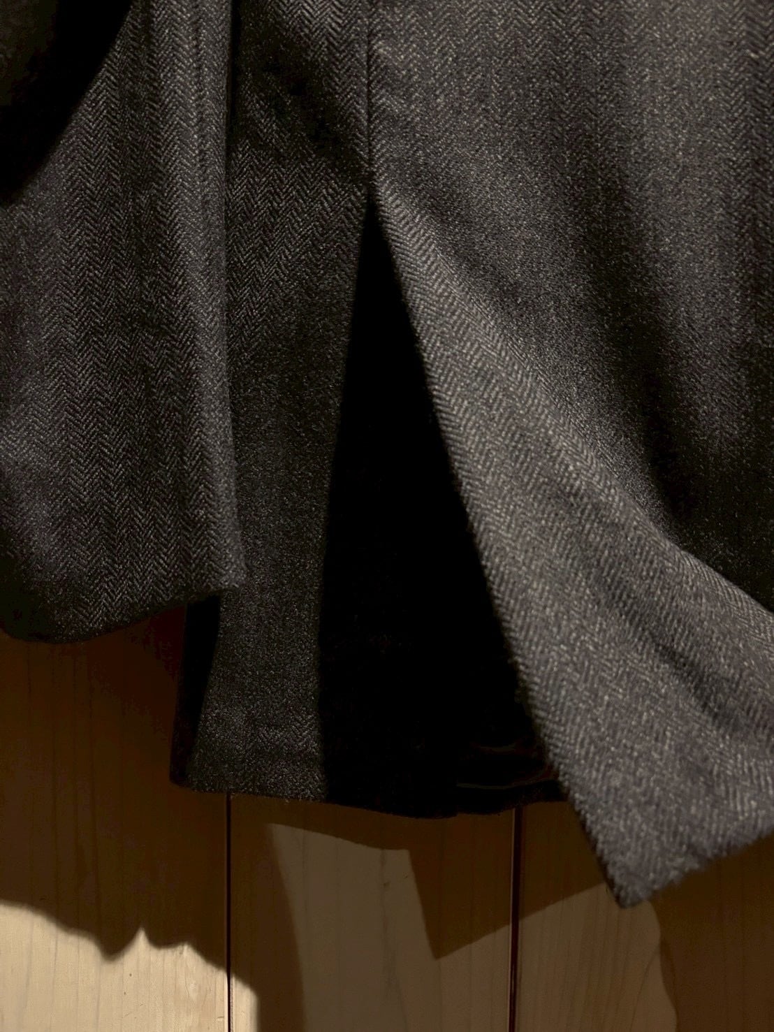 素材にはウールを使用し、ヘリンボーン織りによる繊細な陰影と深みのあるチャコールトーンが上品な佇まいを演出。