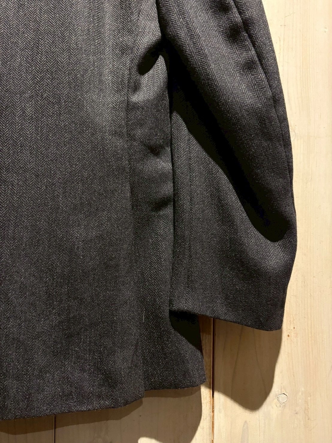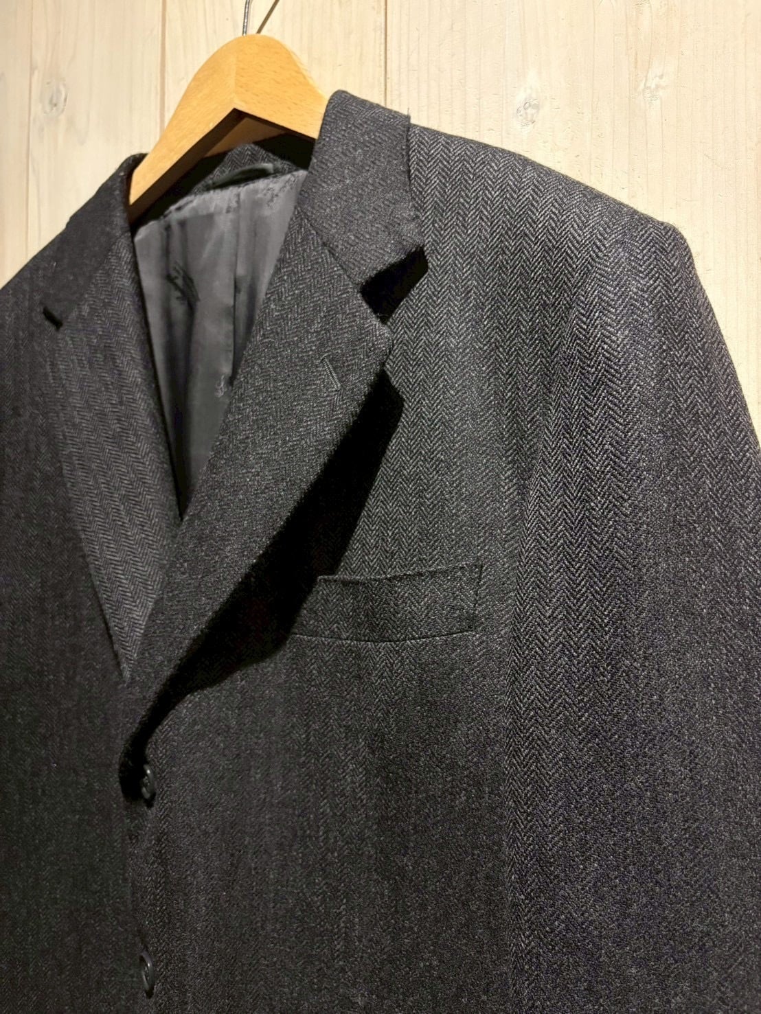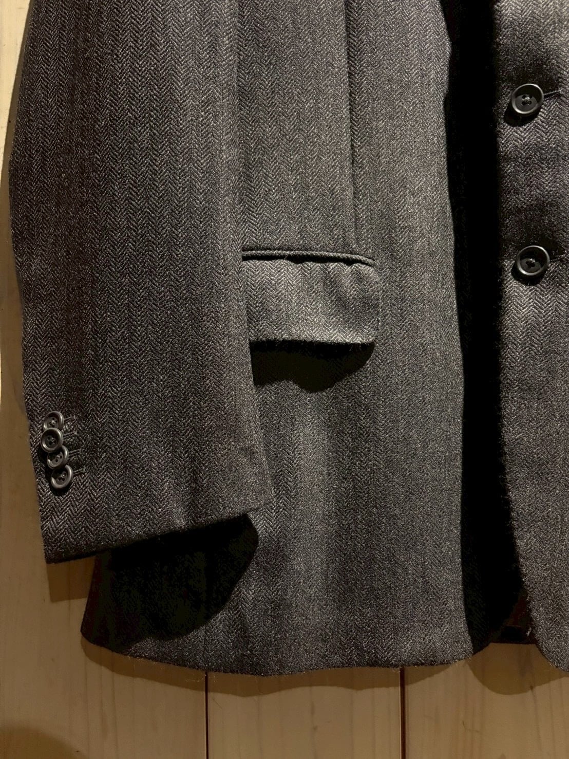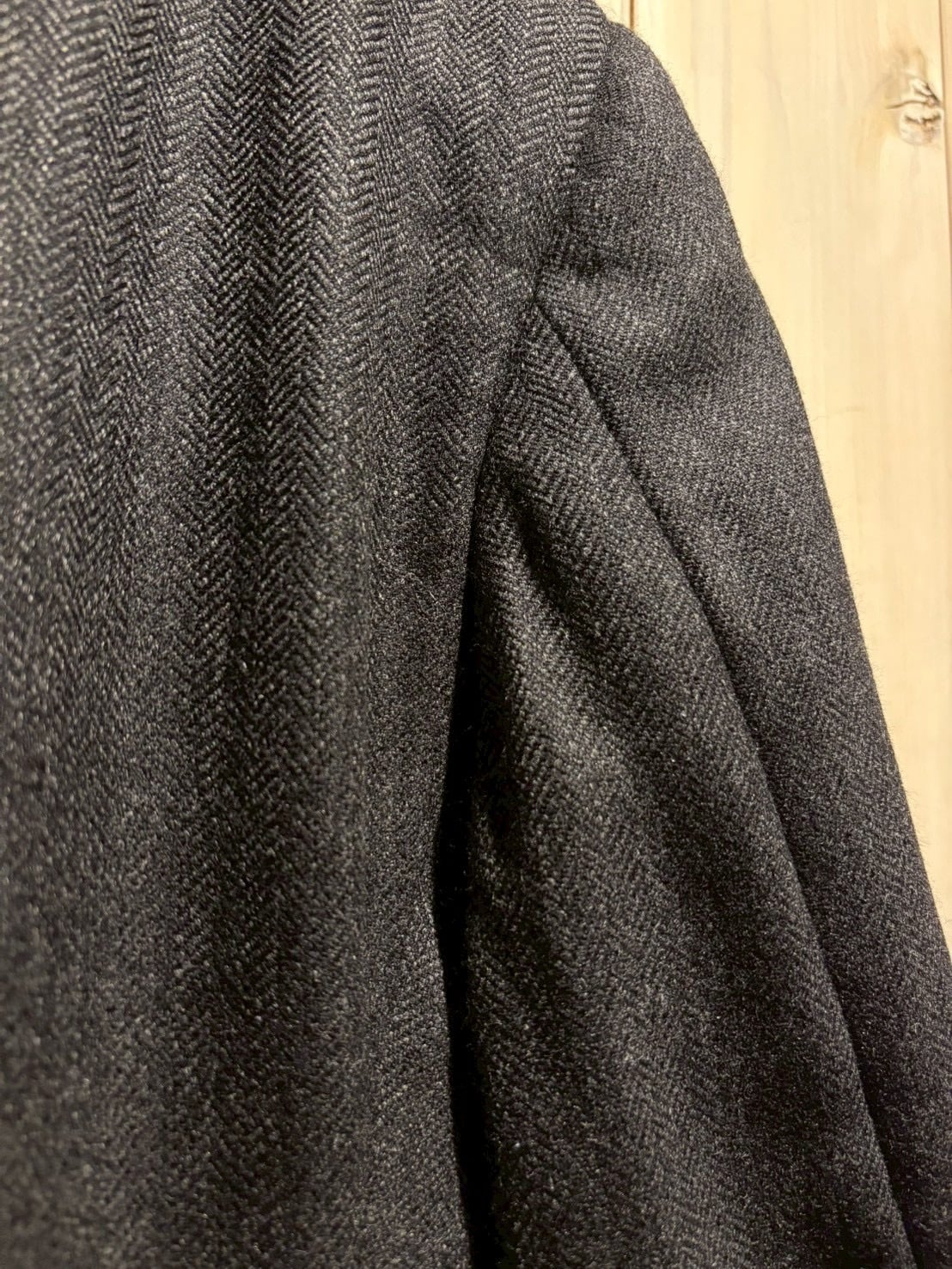 素材にはウールを使用し、ヘリンボーン織りによる繊細な陰影と深みのあるチャコールトーンが上品な佇まいを演出。