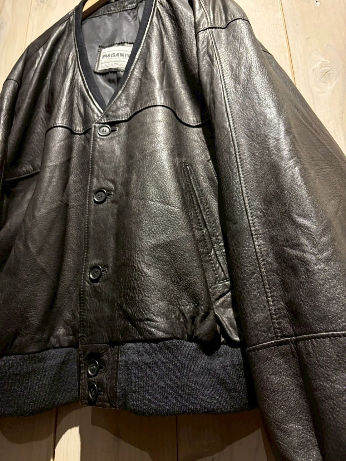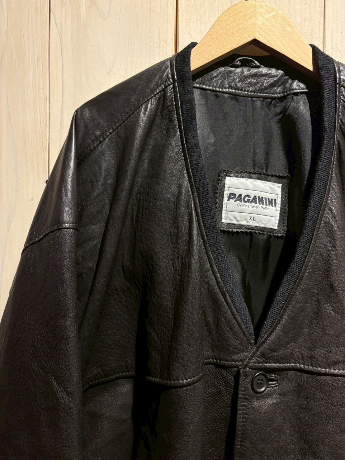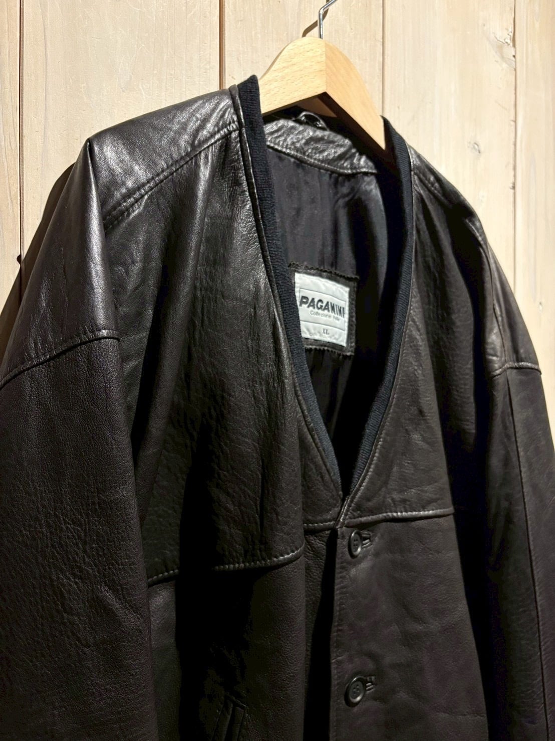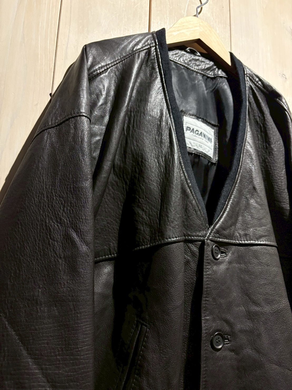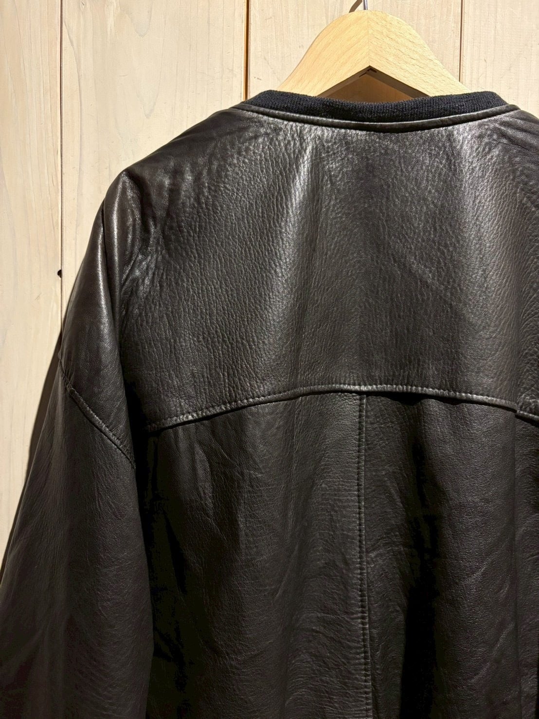 上質なブラックレザーを贅沢に用いた、カーディガン型のジャケット。
