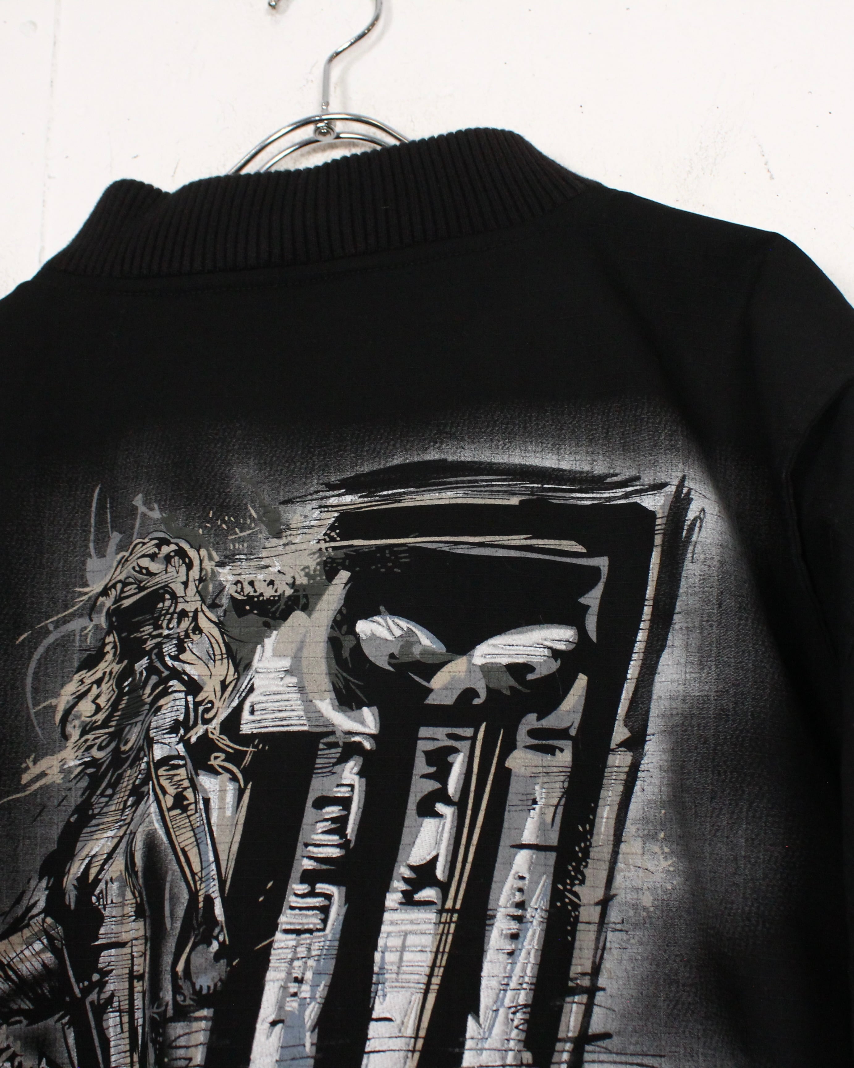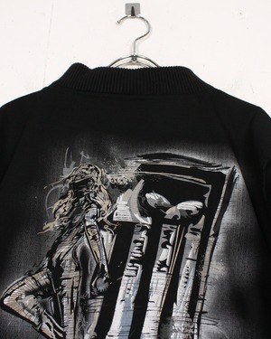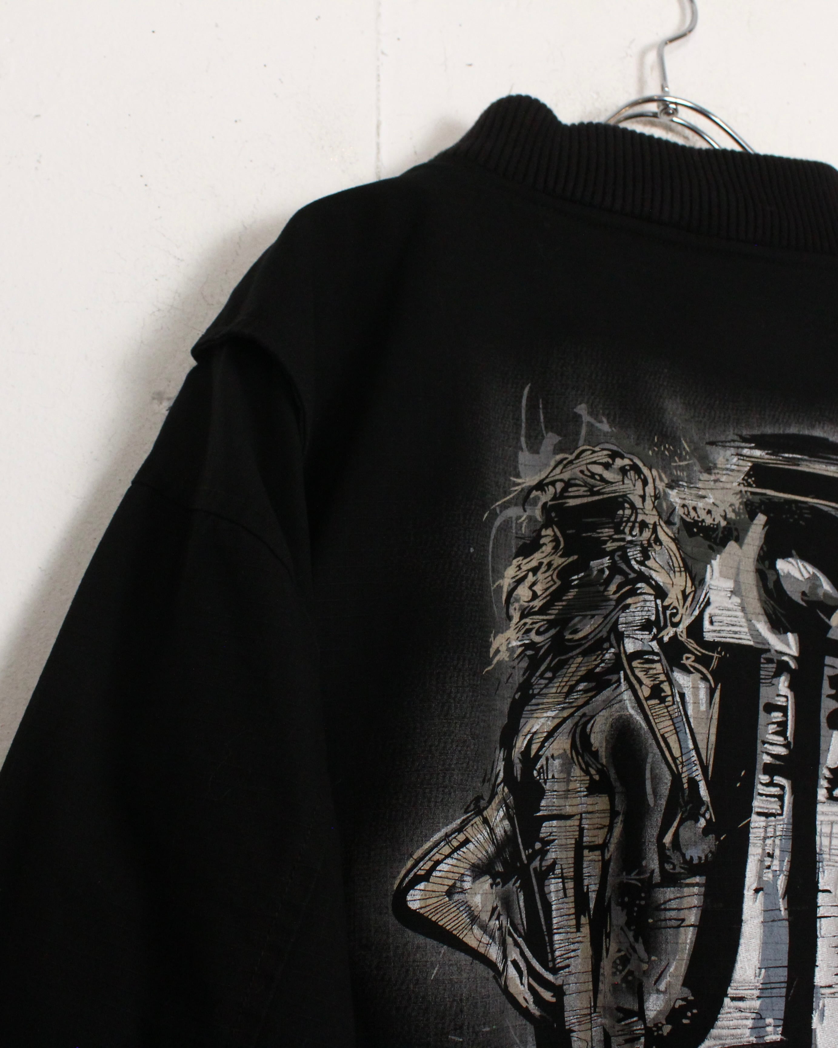 胸元、背面に描かれた“1”のロゴに女性のグラフィックが圧倒的な存在感を放つジャケット。