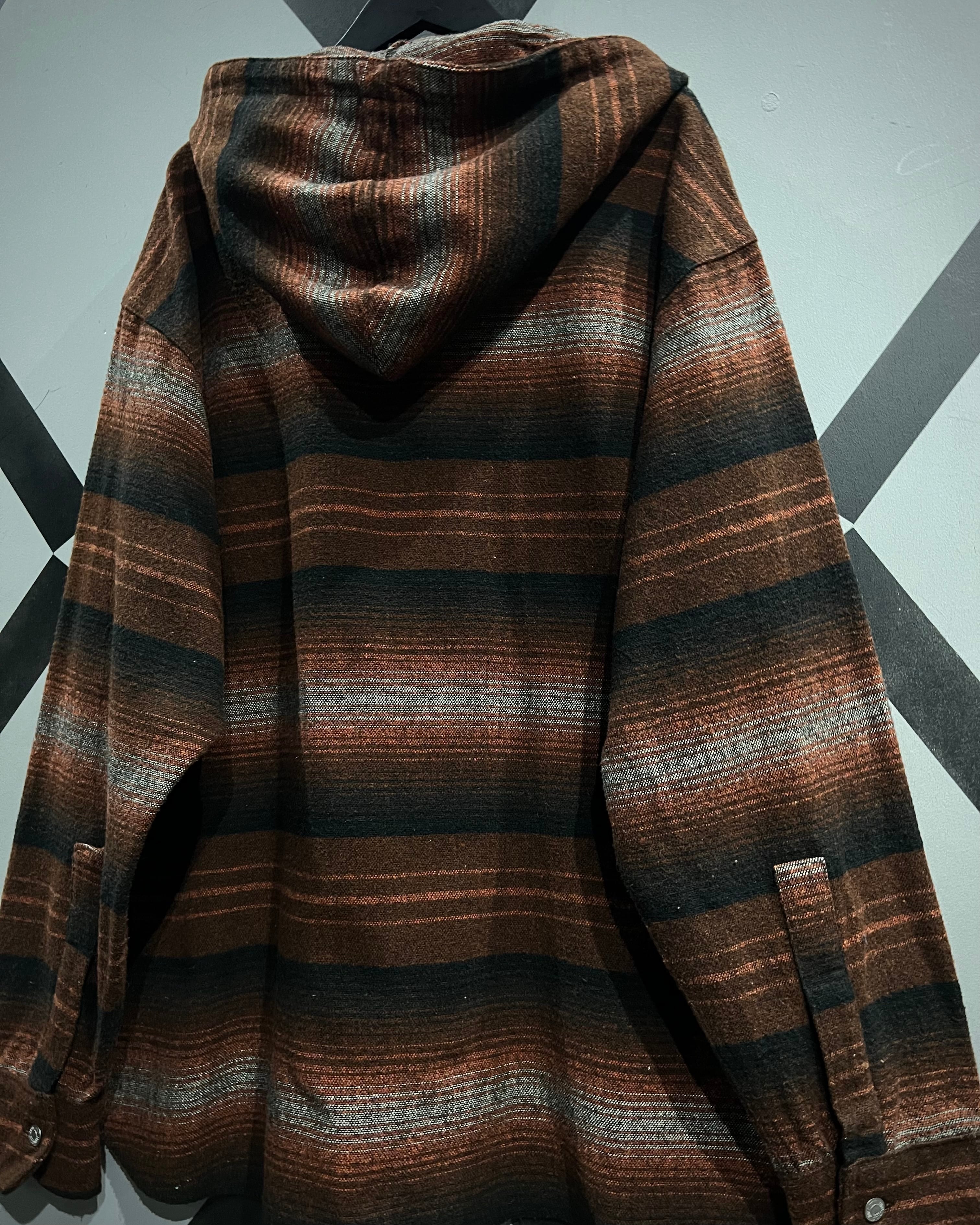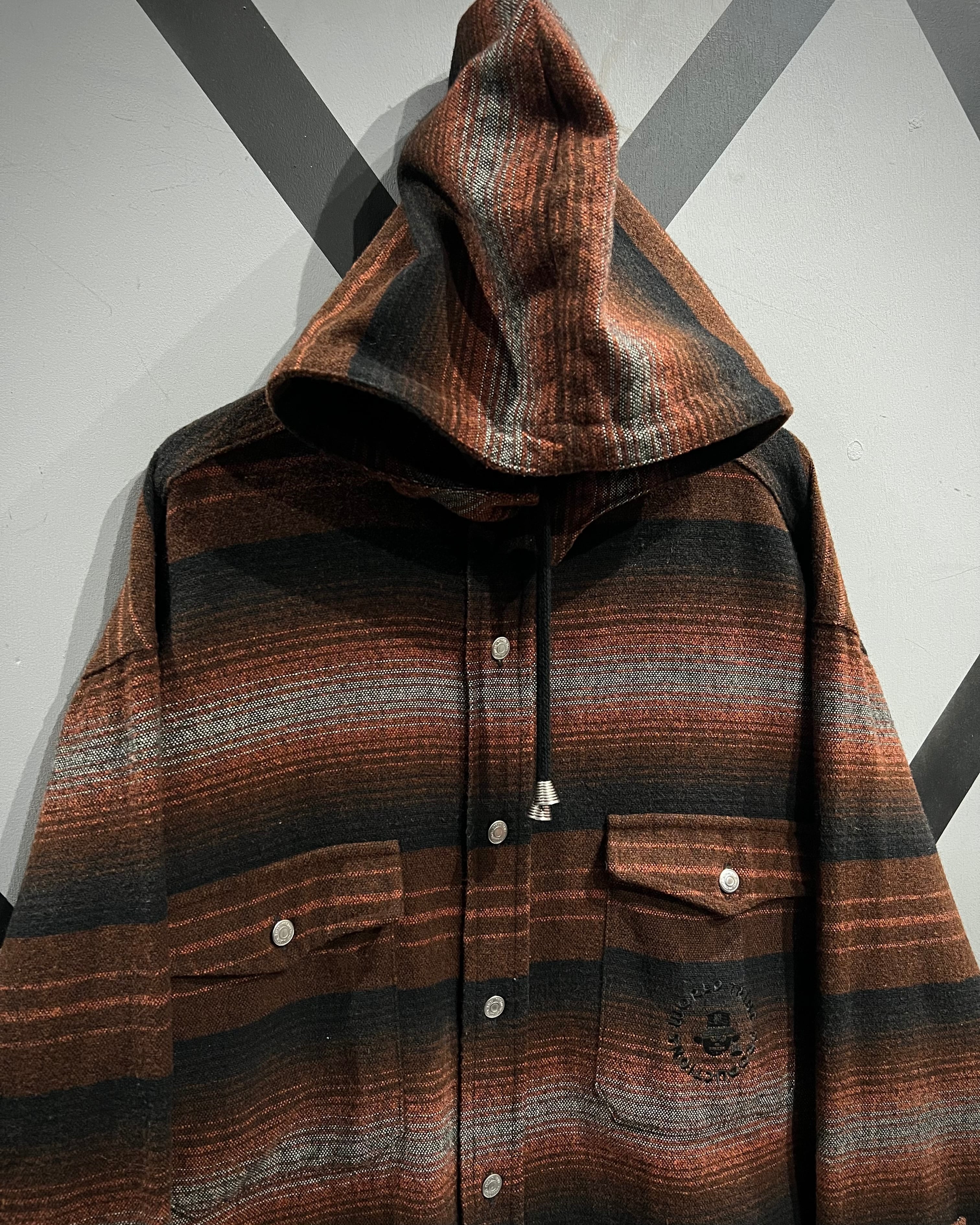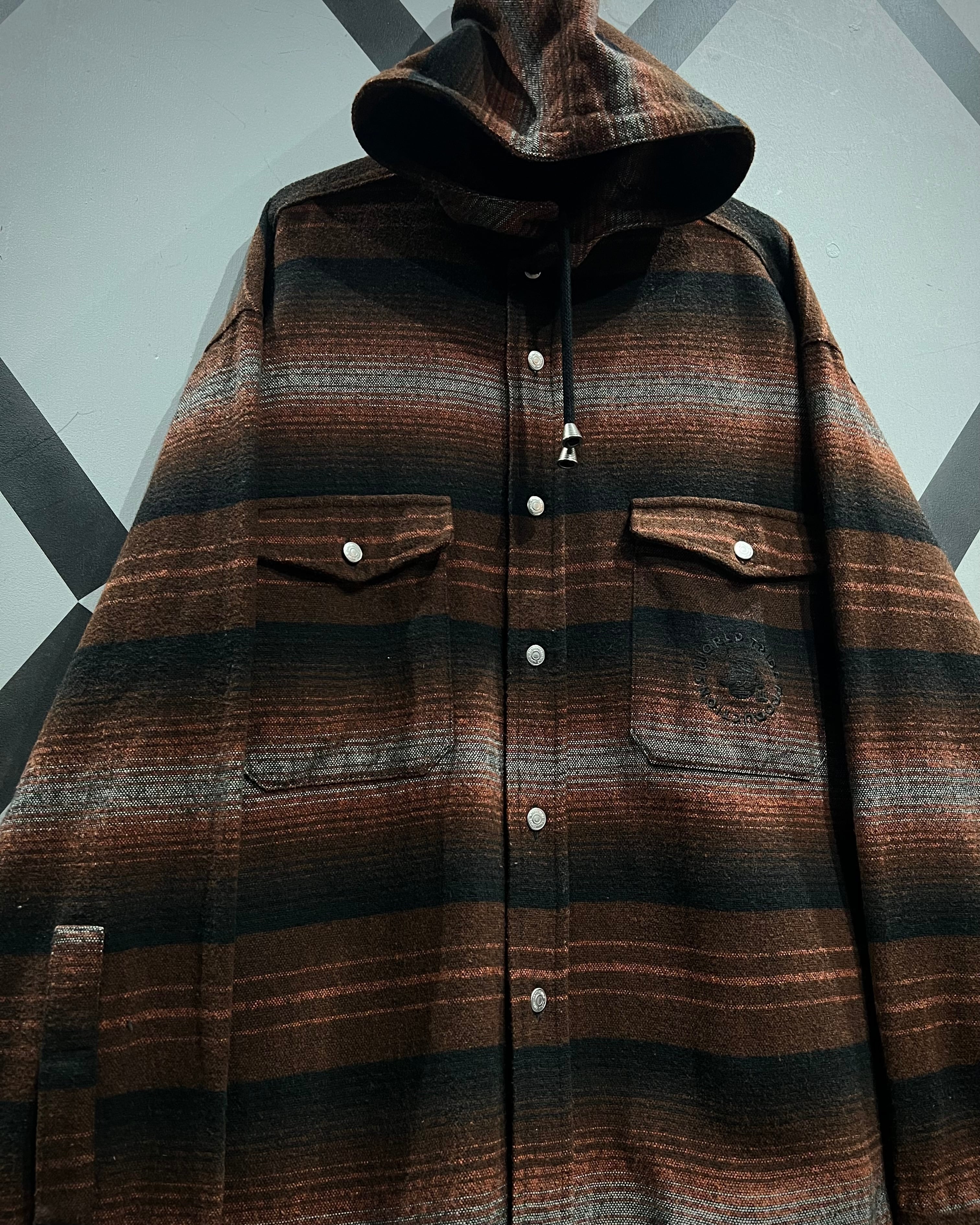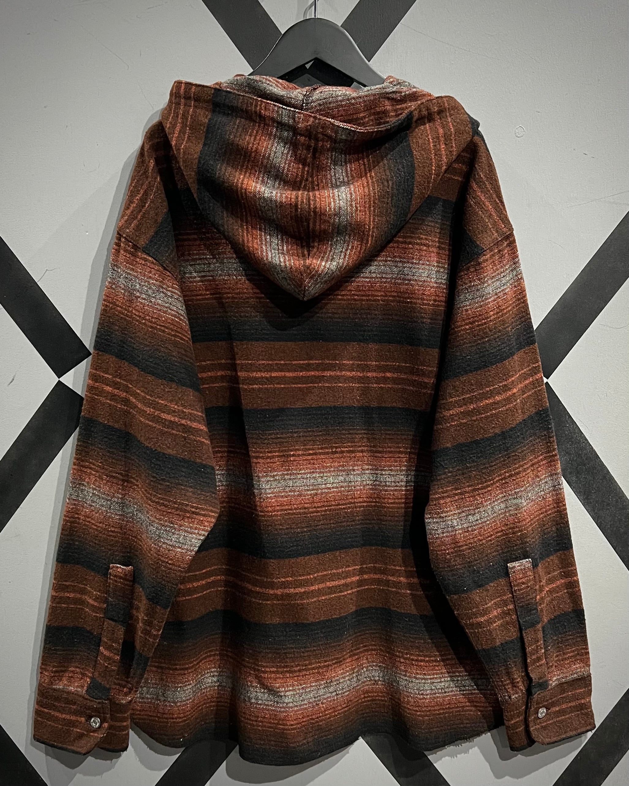 美しいグラデーションのボーダー、汎用性を併せ持った、ありそうで意外と中々出会えない、フーディシャツジャケットの逸品です。