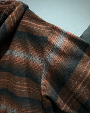 ブラウンを基調に、ブラックとグレーのグラデーションを重ねたボーダーパターンが印象的な1着。