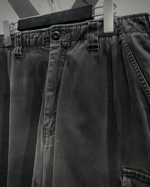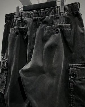 コットン100%のボディは着用を重ねるほどに風合いが増していく質感。両腿には立体感あるカーゴポケットを配置し、実用性とデザイン性を両立、全体にわたるフェード感がこのアイテムの雰囲気をグッと引き立てています。